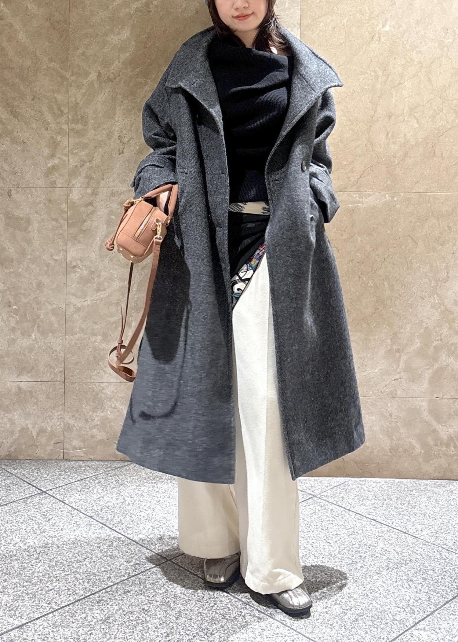 VIS尾州シャギースタンドカラーロングコート/静電気防止・WEB限定PS・TMサイズチャコール / M¥21,890レビューオーバーサイズなのに着膨れして見えないデザイン✨
