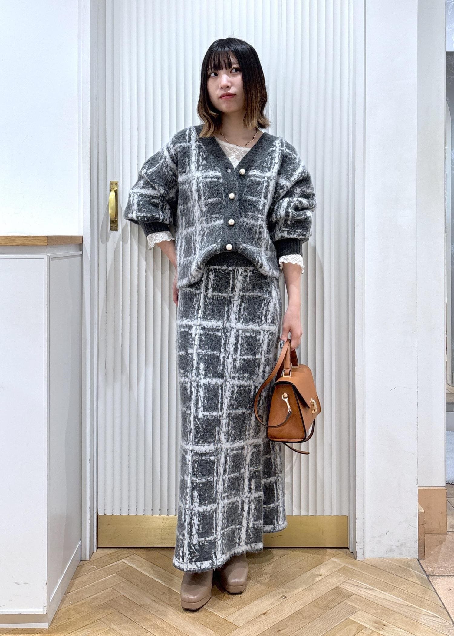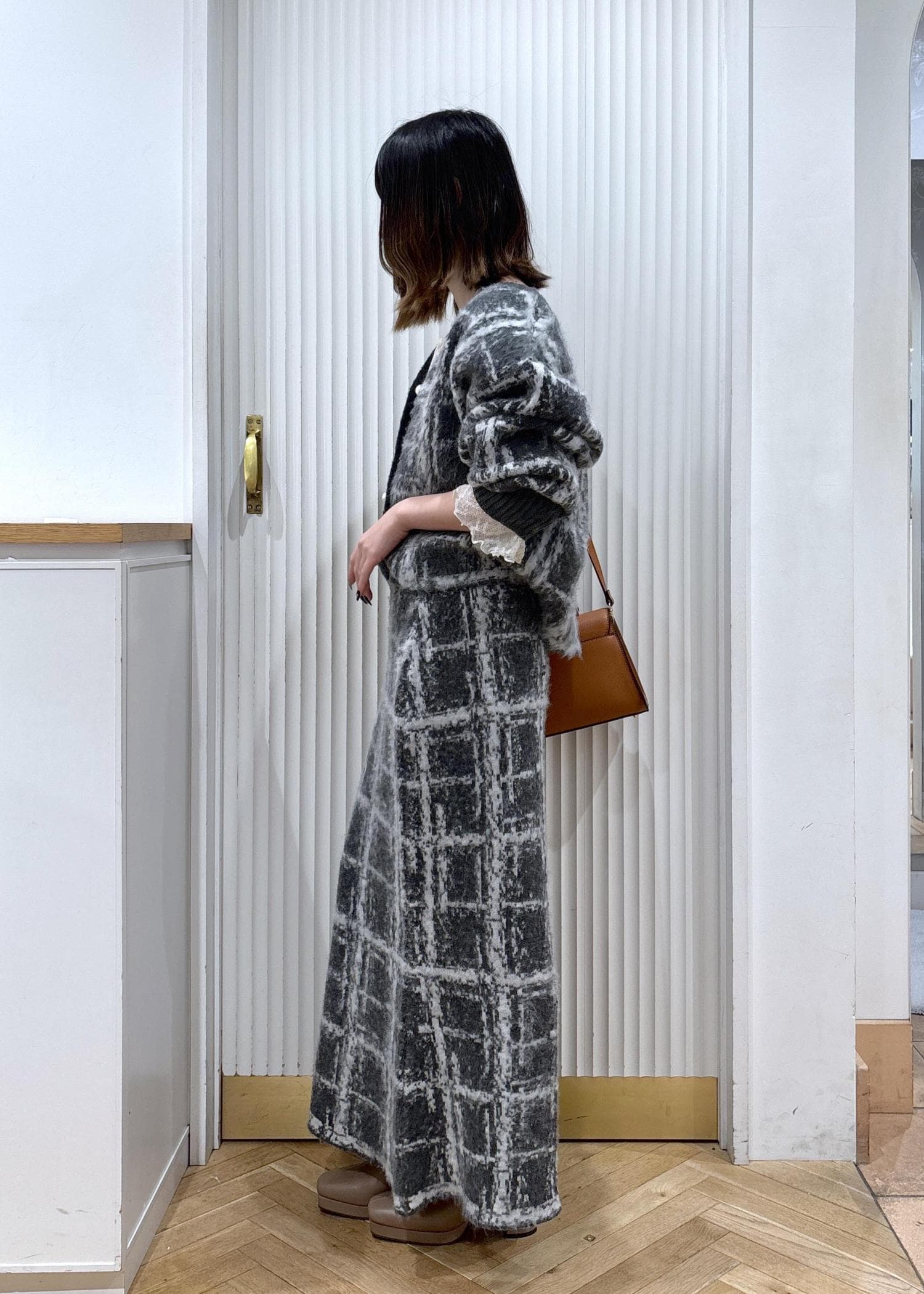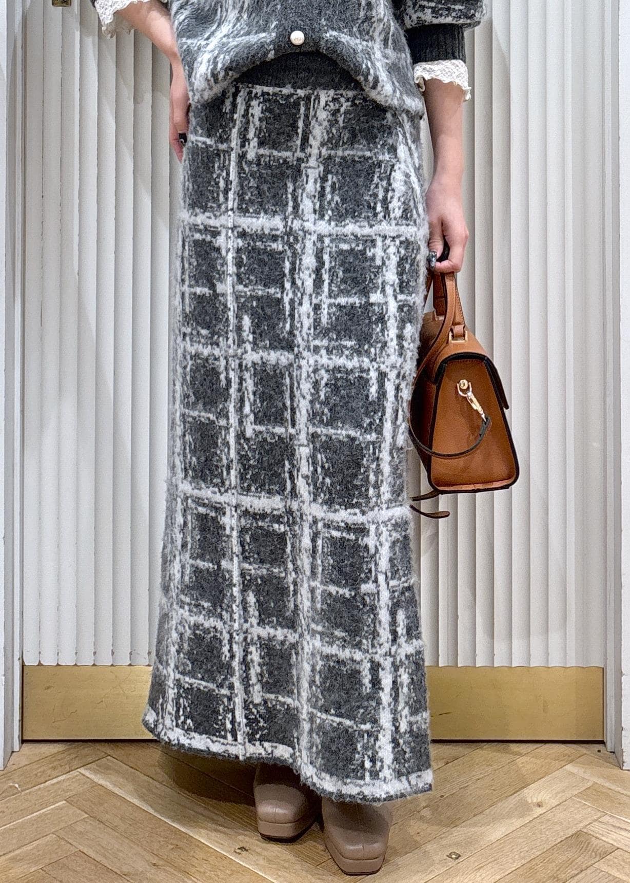 VISチェックアソートシャギーニットスカート/セットアップ対応グレー / F¥6,589レビューカーディガンとセットアップで使えるスカートです!153センチ着用で足首くらいのマキシ丈になります。ウエストが少し緩いので1回折って履いてもシルエットは問題なさそうです!ヒールを履くとより足元がスッキリして見えます!