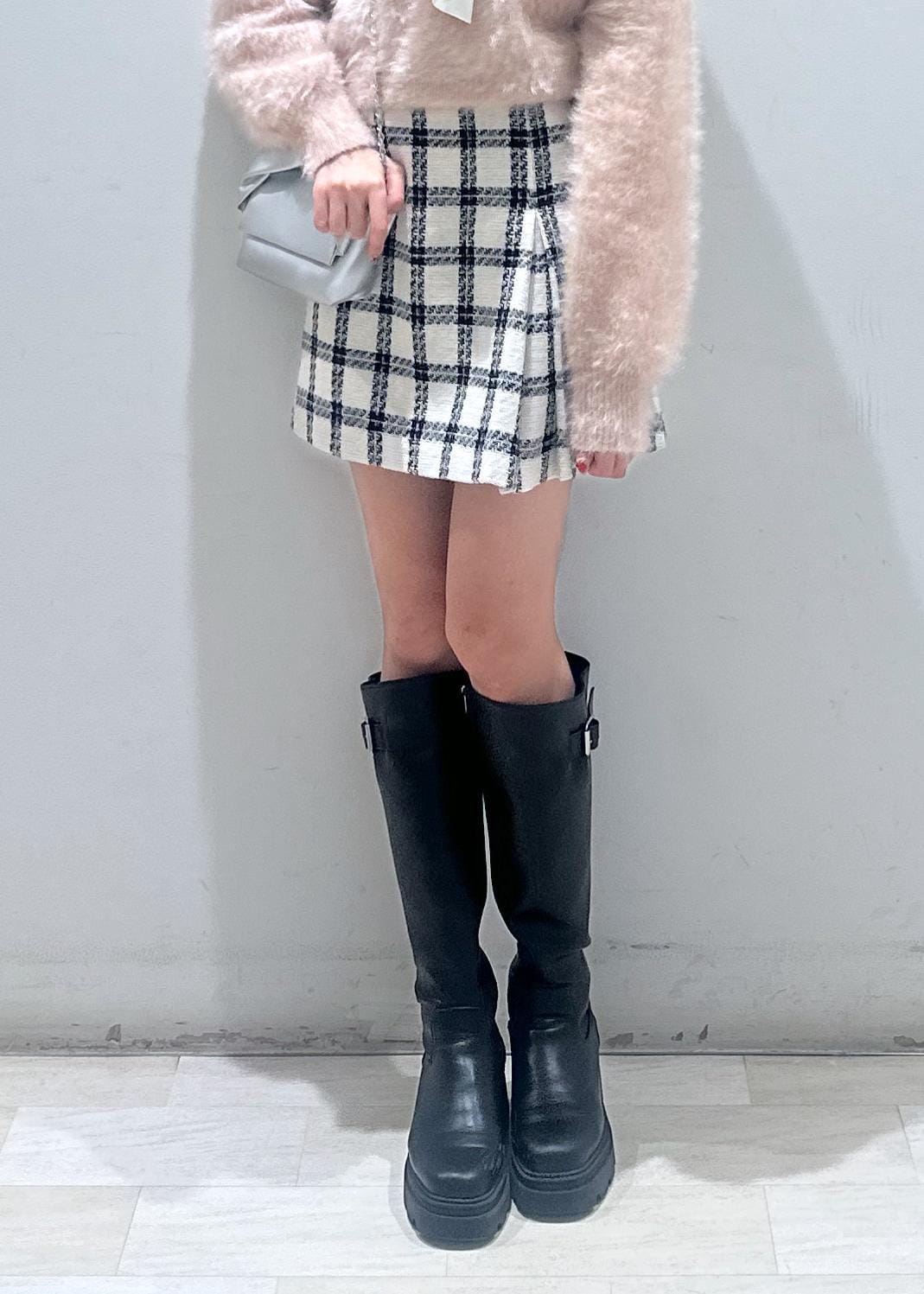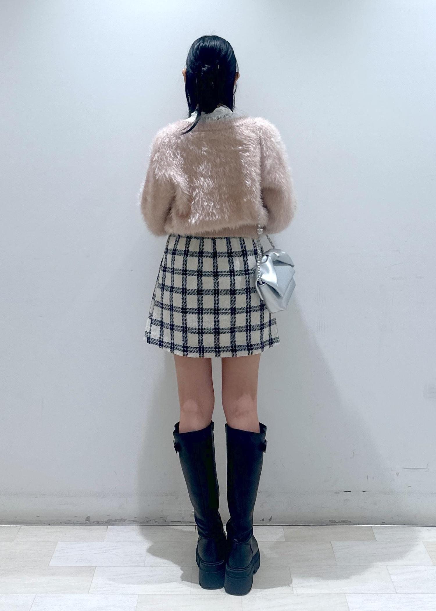VISロービングチェックミニスカートオフホワイト / F¥6,589レビューコーディネートのアクセントになる暖かみのあるロービングヤーンのミニスカート。