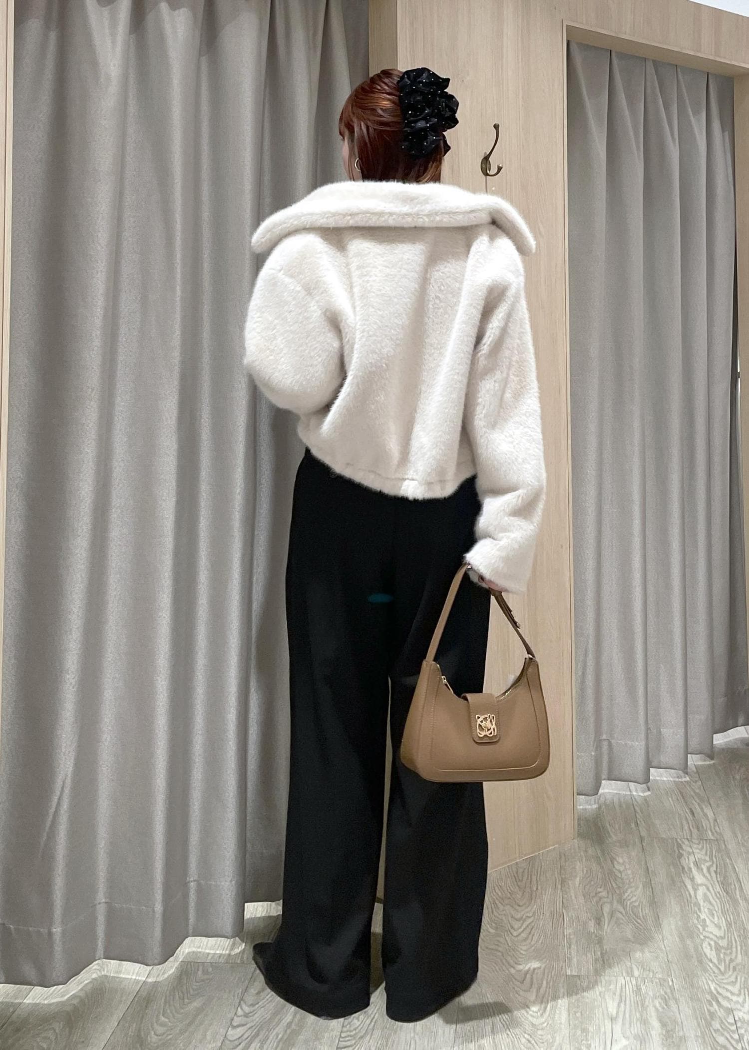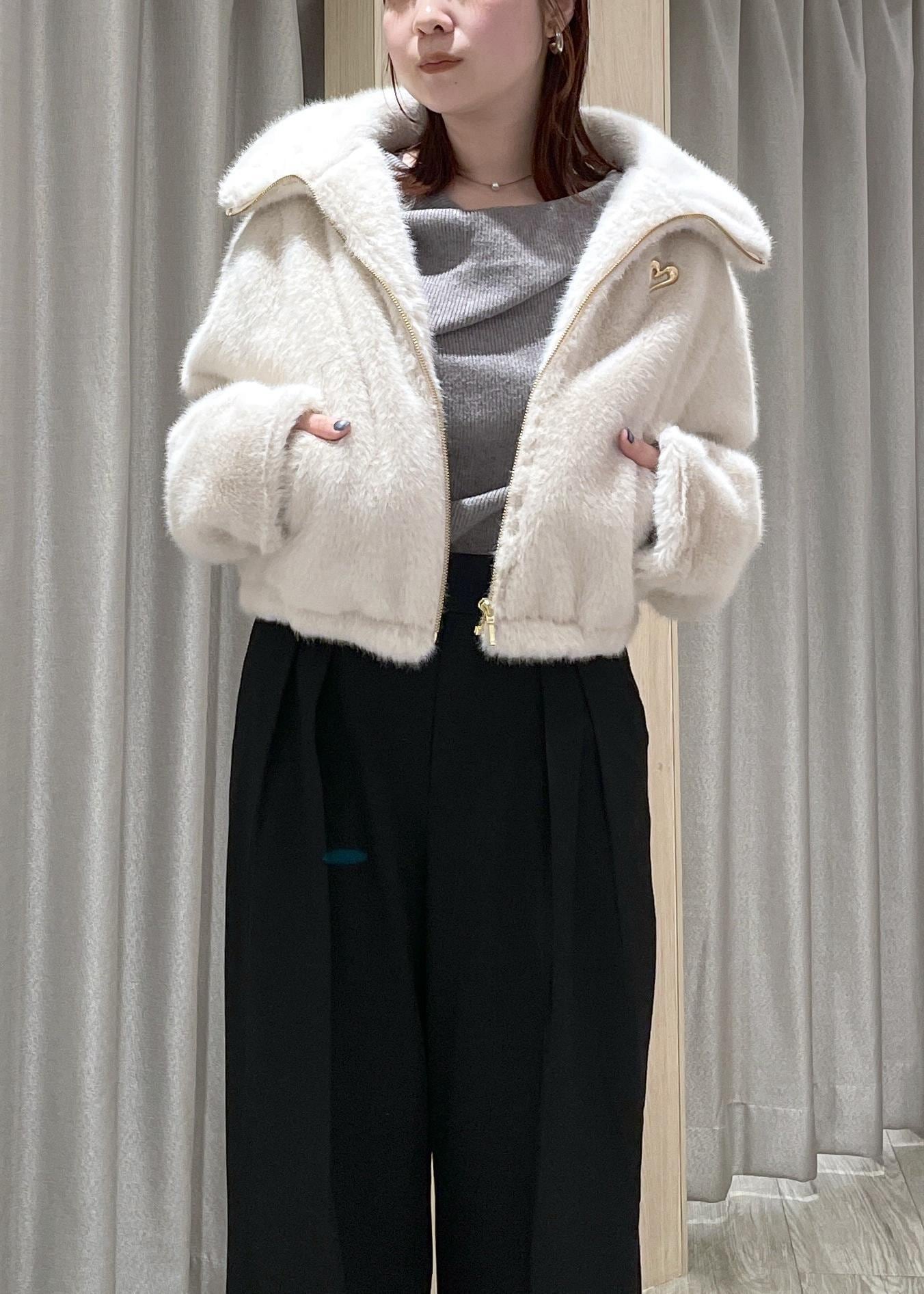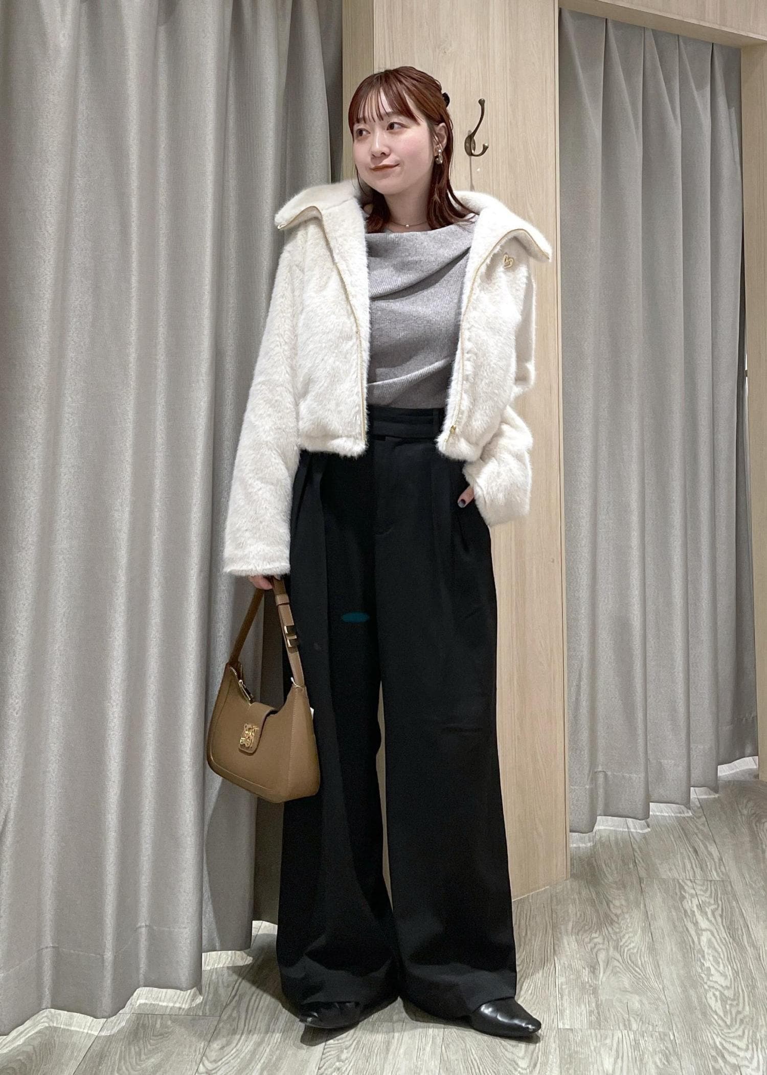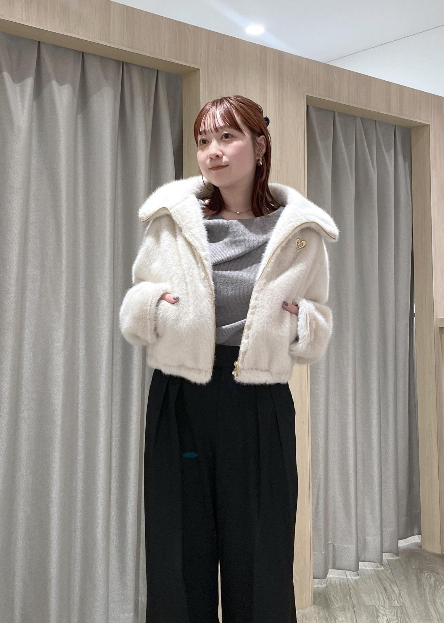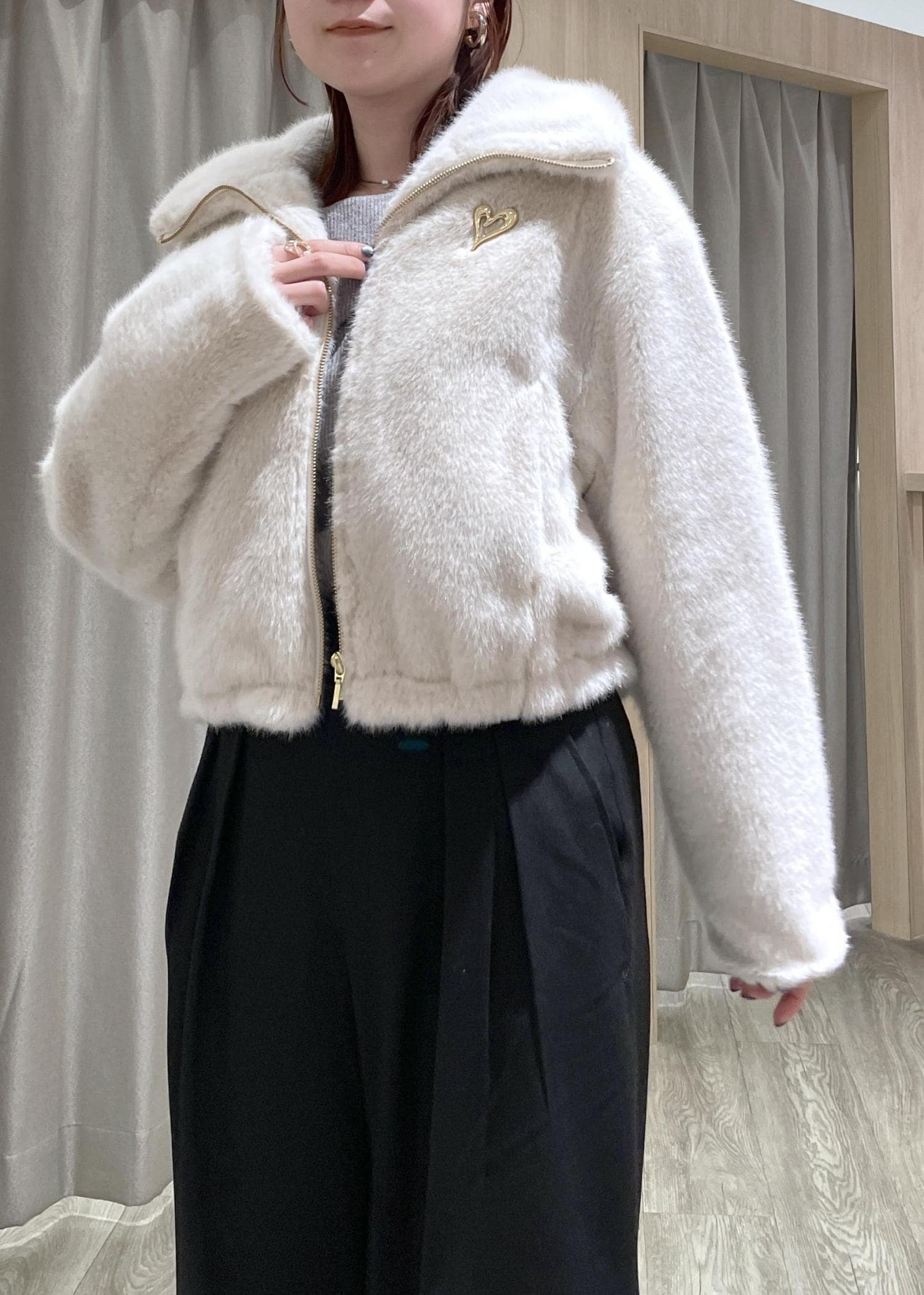 VISブローチ付きアソートファーブルゾンキナリ / F¥14,080レビュー身長159cmで腰丈のコンパクトなサイズ感です!骨ストでアウターは着膨れが気になりますが、、程よいボリューム感で大きく見えたりせず◎