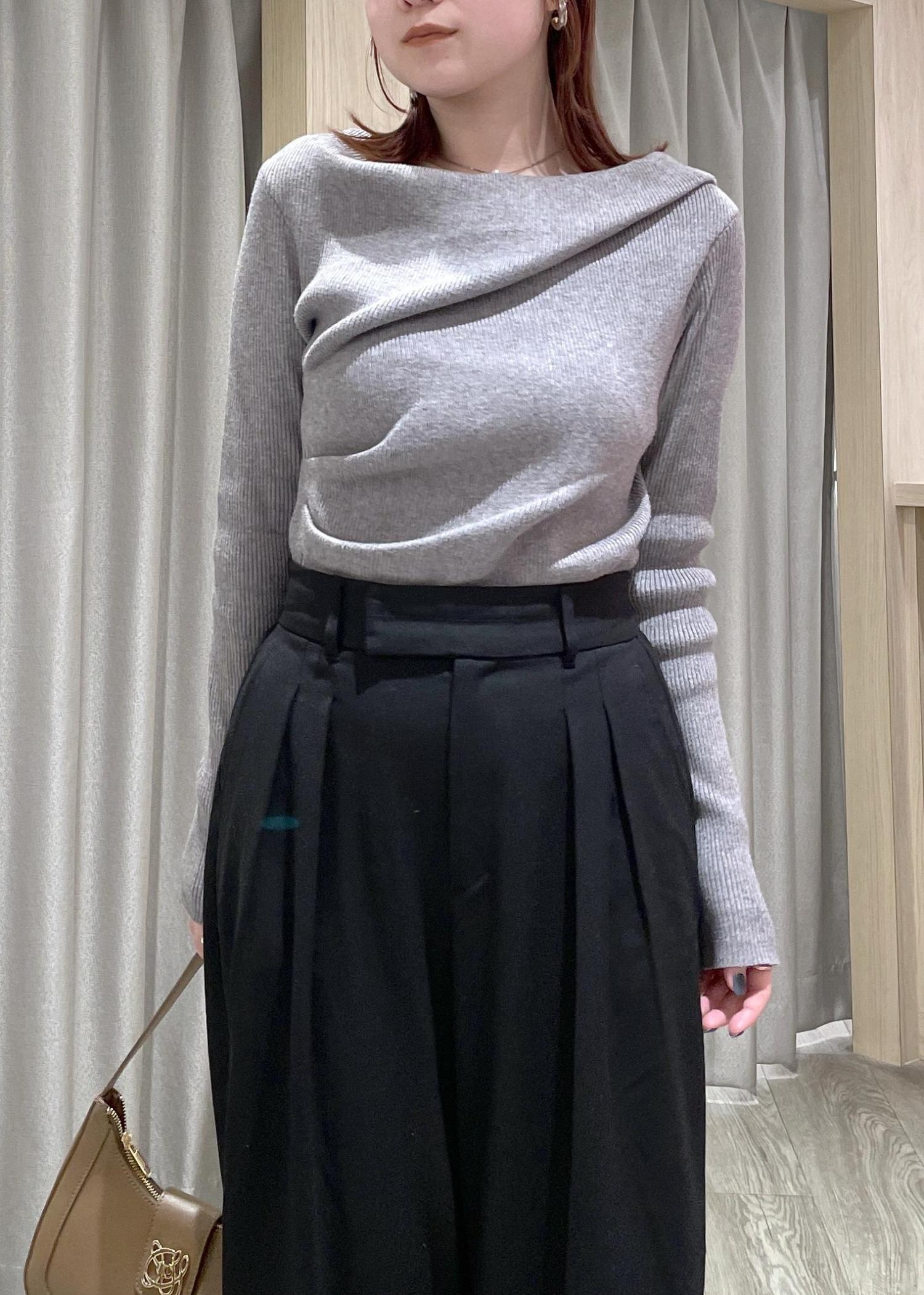 予約VISもちもちドレープリブニットトップス/イージーケアグレー / F¥4,389レビュー着回し力抜群な万能ニット♡シンプルながらドレープデザインでお洒落見え、デコルテが見えるので華奢見えも叶います!程よくフィット感はありますが、ボディラインは拾わないので1枚で着用しやすいです。