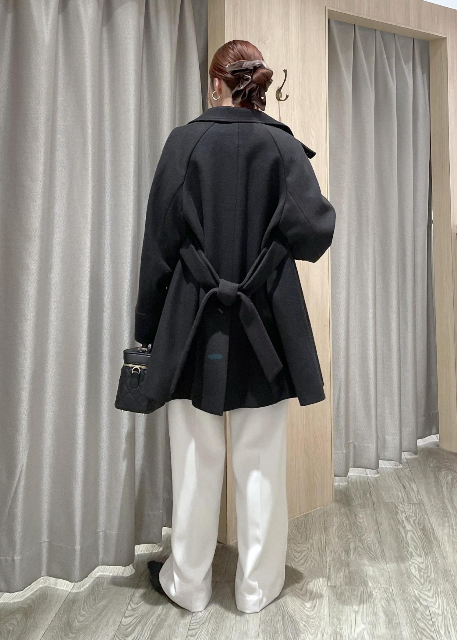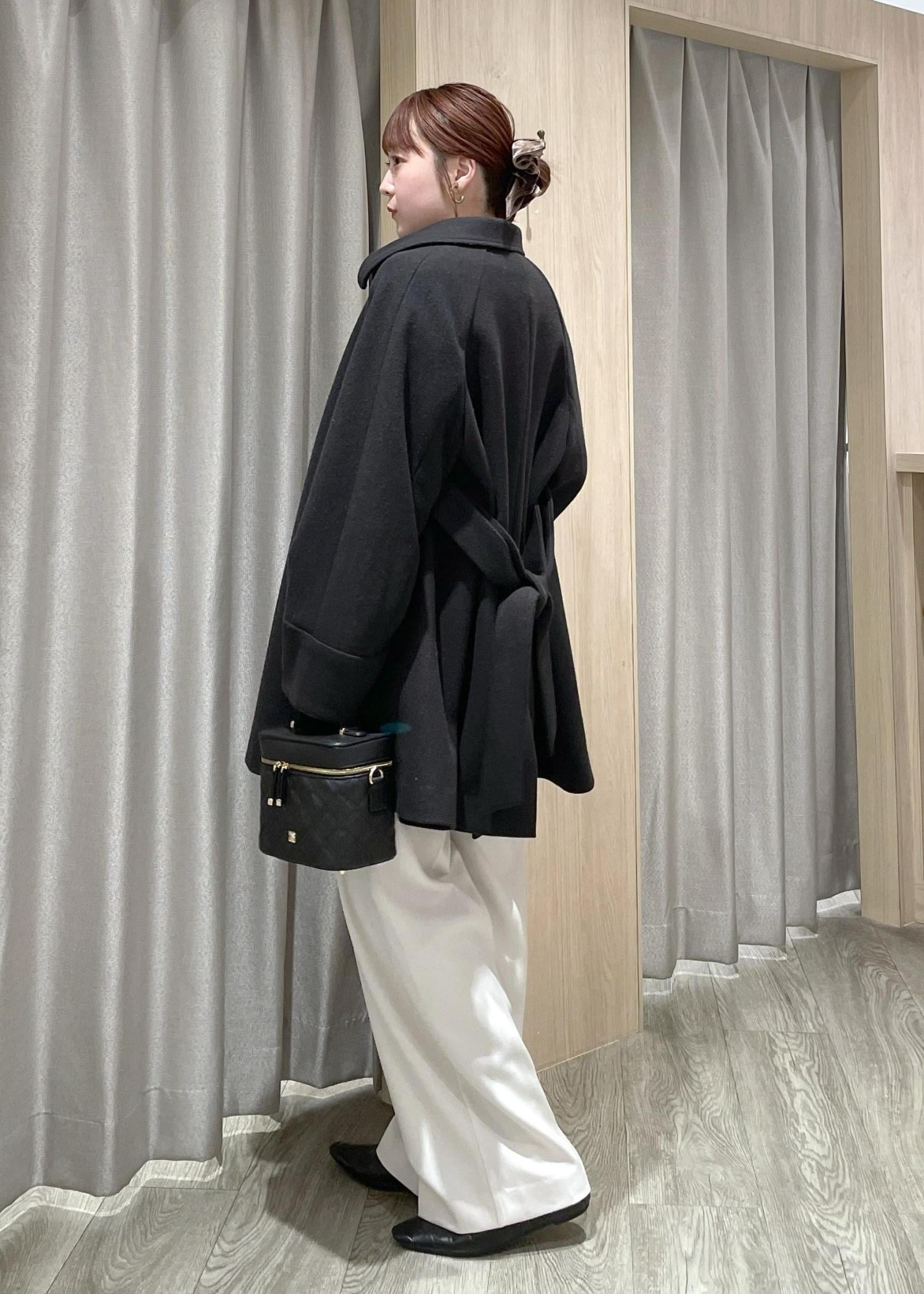 VIS【アウター総選挙2位】フレアーチェスターコートブラック / F¥14,080レビュー綺麗なAラインシルエット、ウエストのリボンで広がりは調節できます◎着てみるとゆとりのあるサイズ感でごわつかない着やすさもあります!