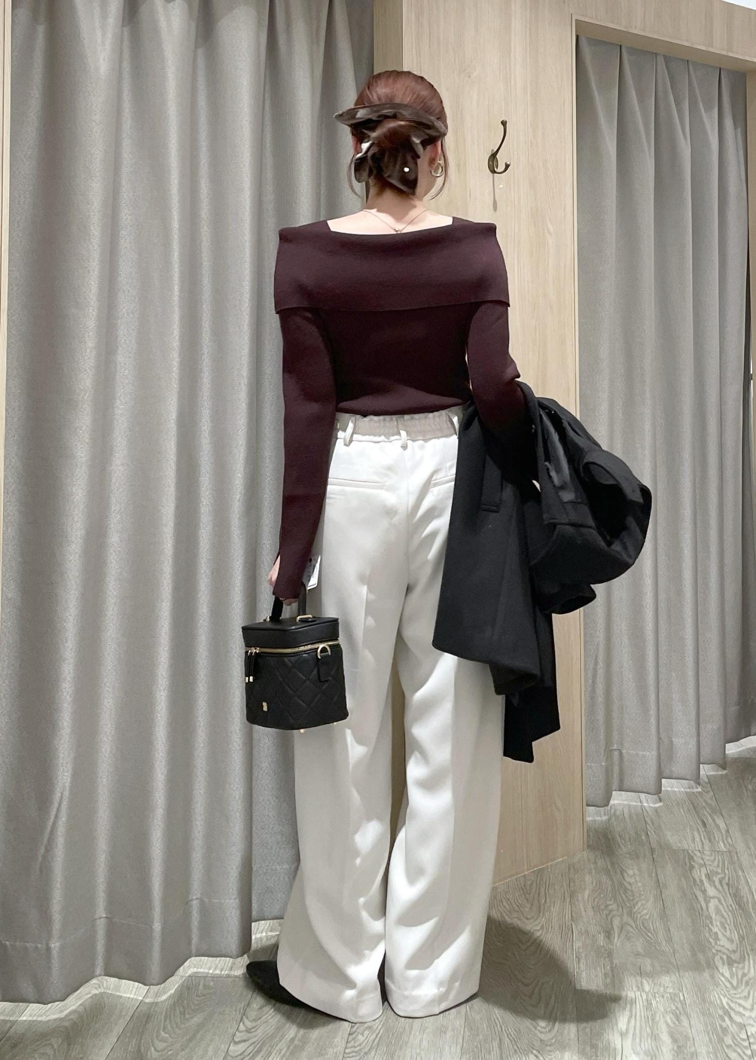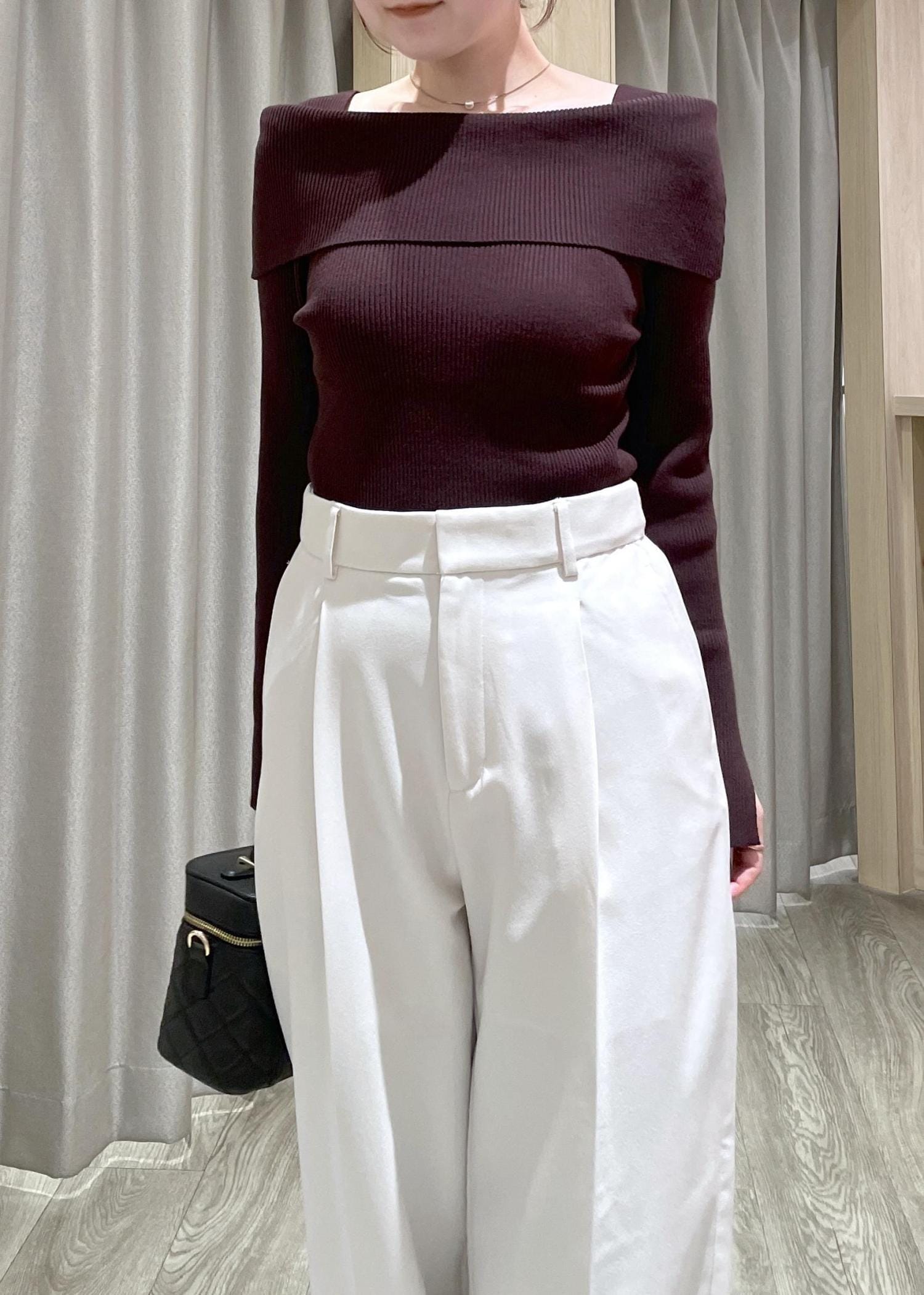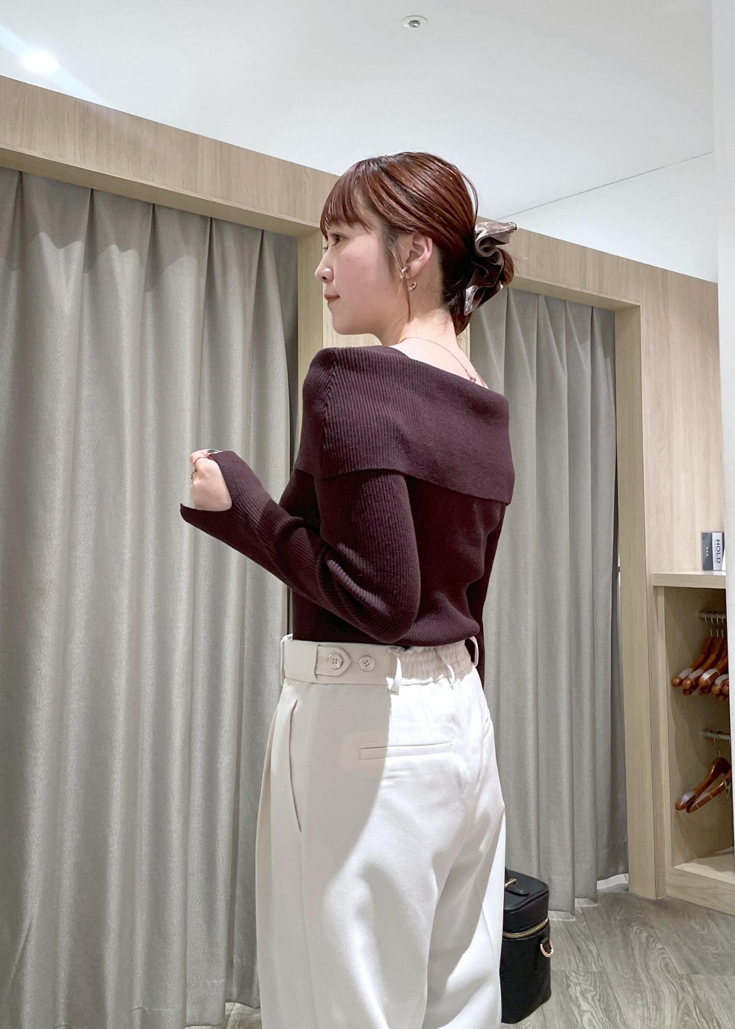 VISオフショルダーモチモチリブニット/好評につき再入荷ダークブラウン / F¥5,489レビュー人気の"オフショル風"ニット❤︎マチのおかげで肩紐が見えない、ずり落ちないとオフショルの不安を解消してくれます。デコルテが綺麗に見えるので骨ストさんは特に華奢見えします◎敏感肌ですがチクチク感無く、むしろもちもちとした肌当たりで着心地も良かったです!