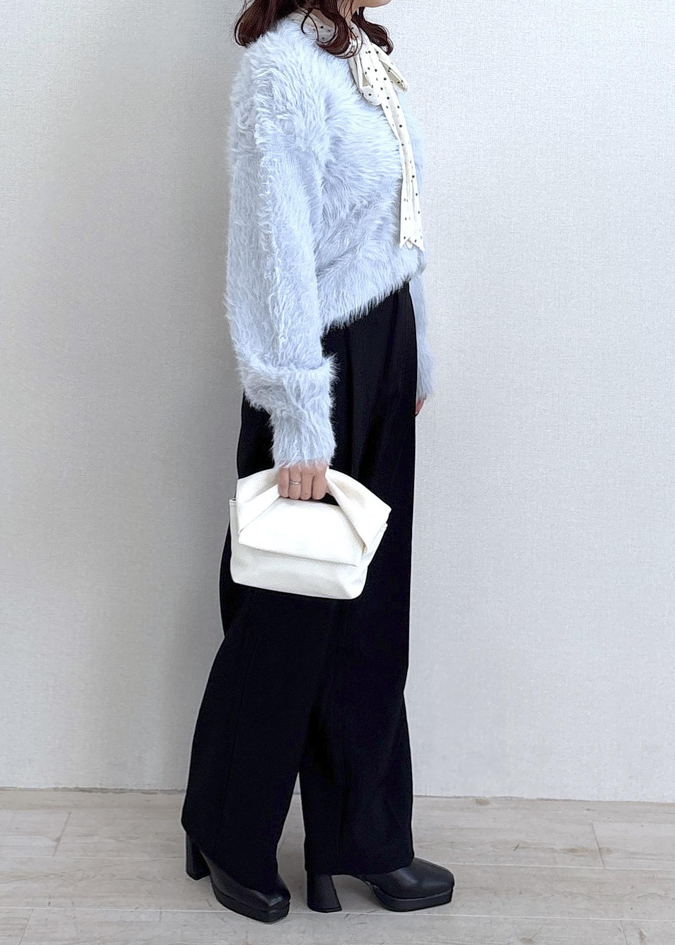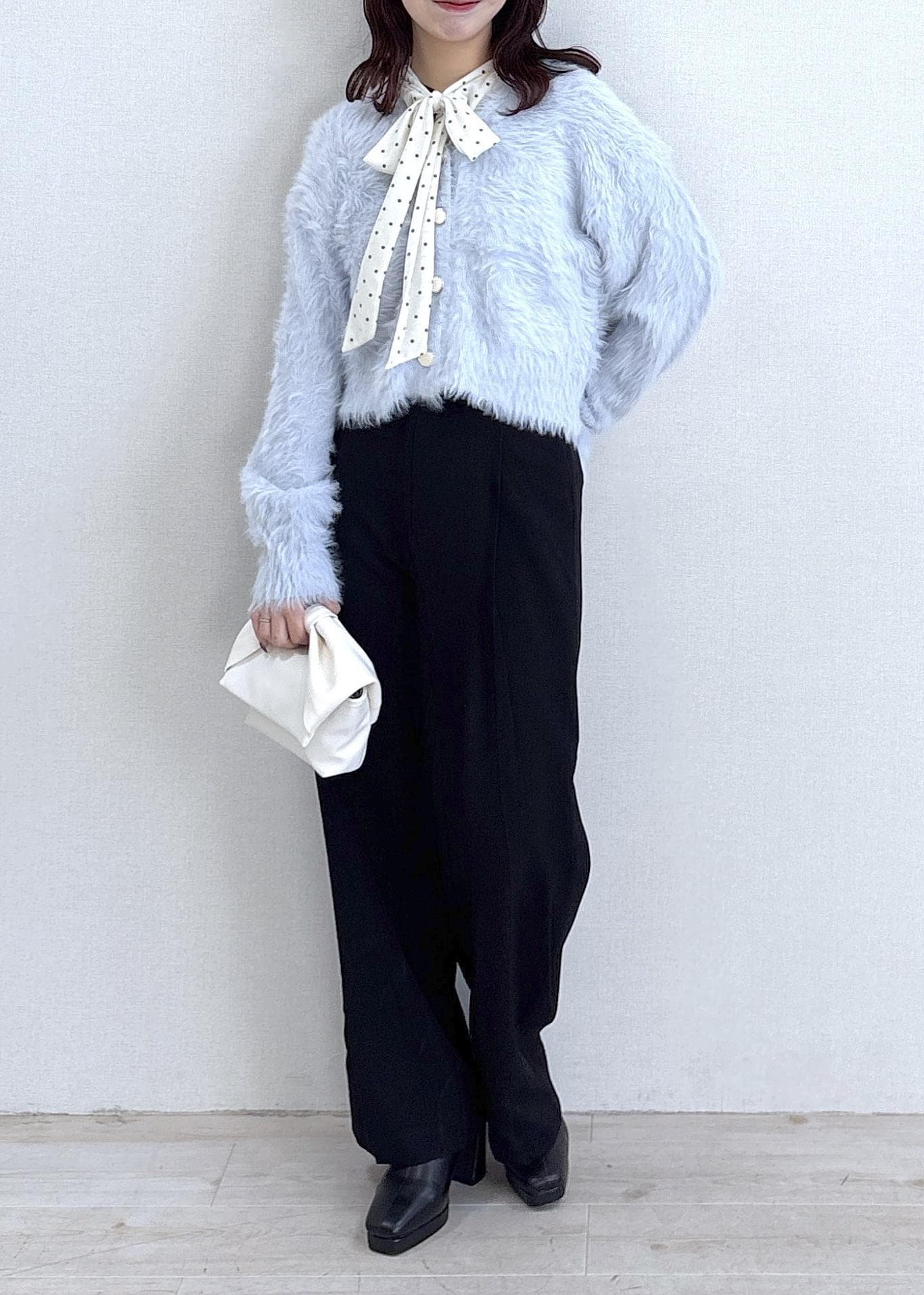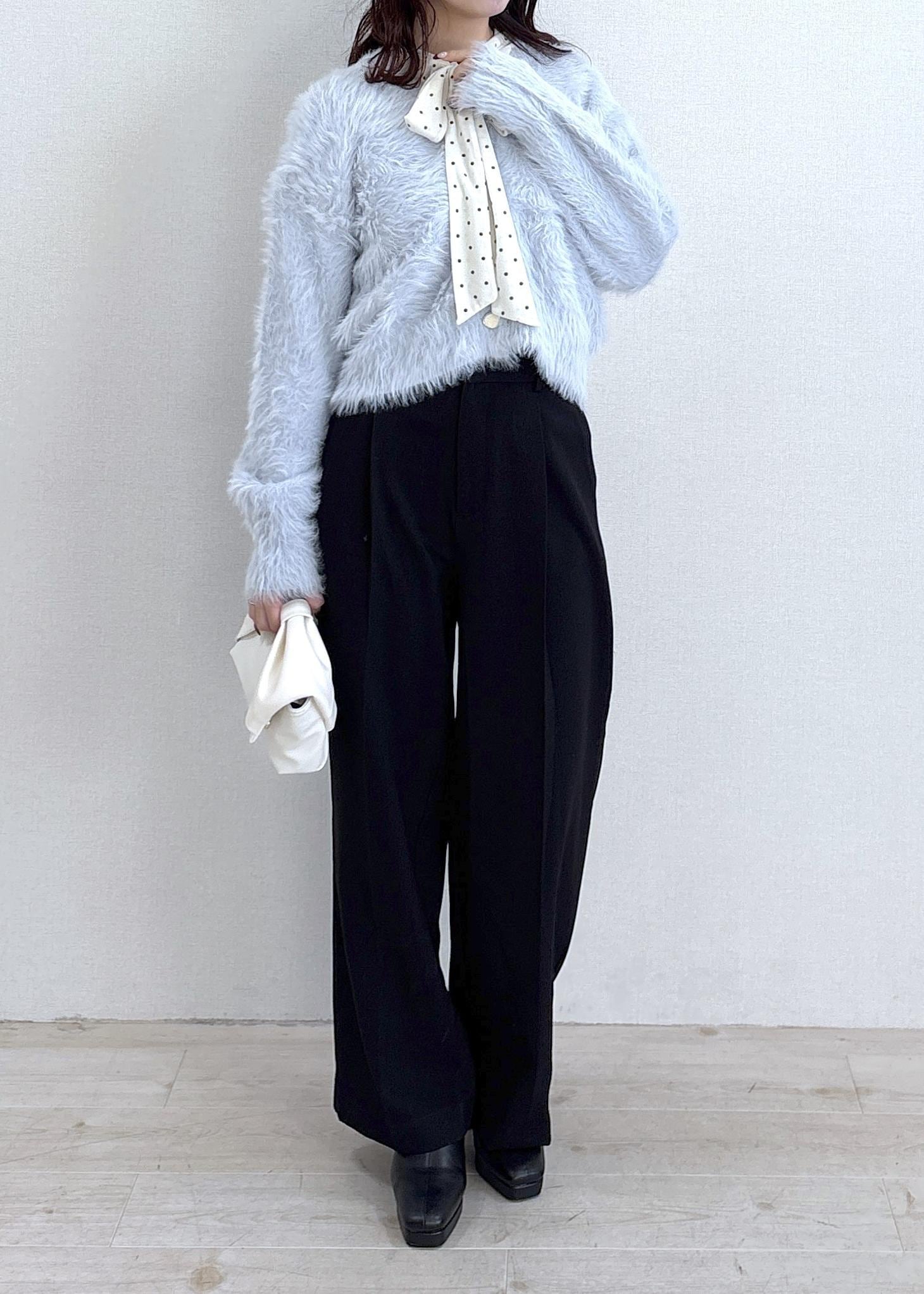 短すぎない丈感なので、ワイドパンツとも好相性◎ -