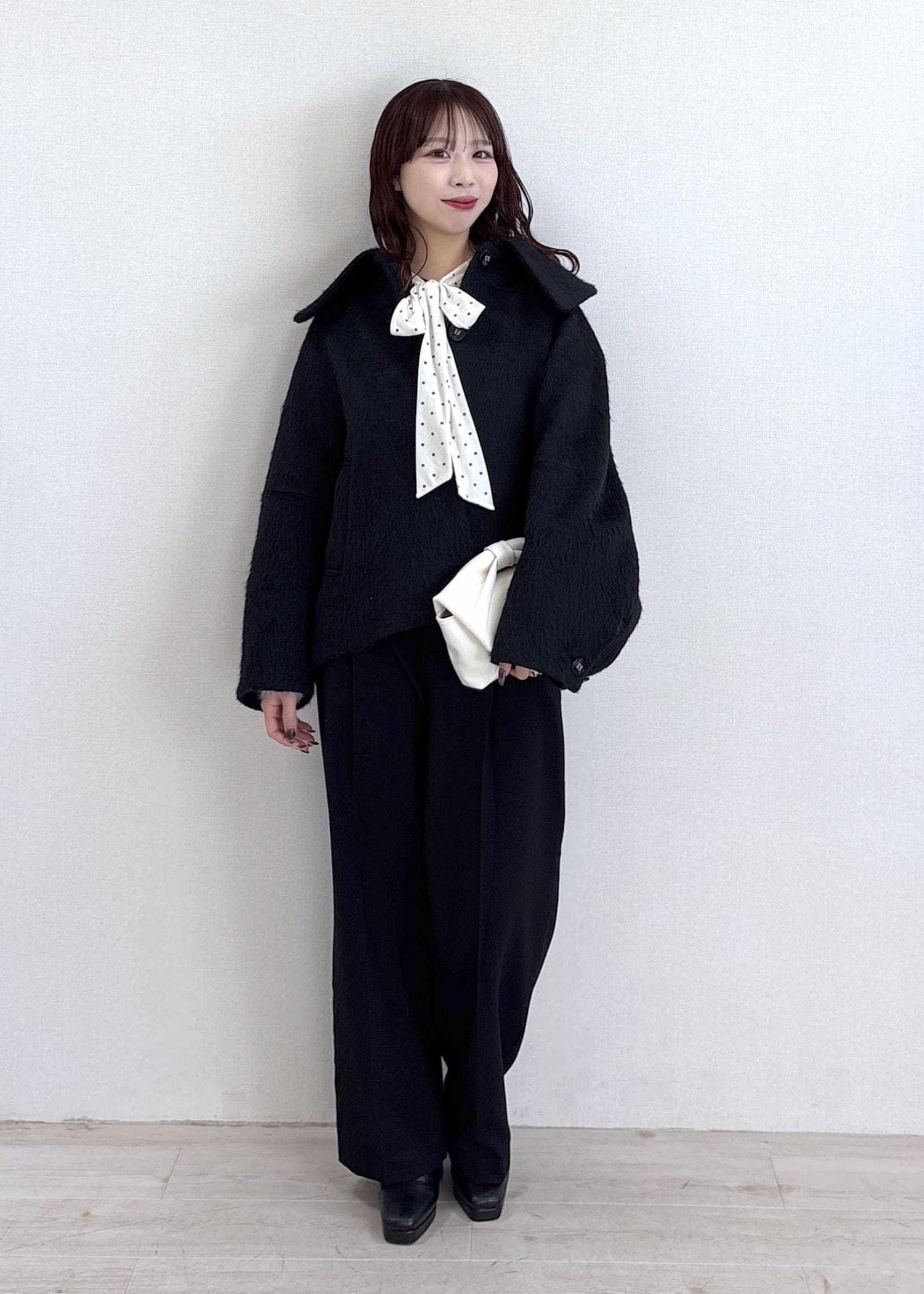 VIS【アウター総選挙1位】ビッグカラーモモンガシャギーショートコートブラック / S¥10,989レビューボリューミーな見た目に反して重たさがなく身軽な着心地で、風も通しにくいので防寒面も安心です!