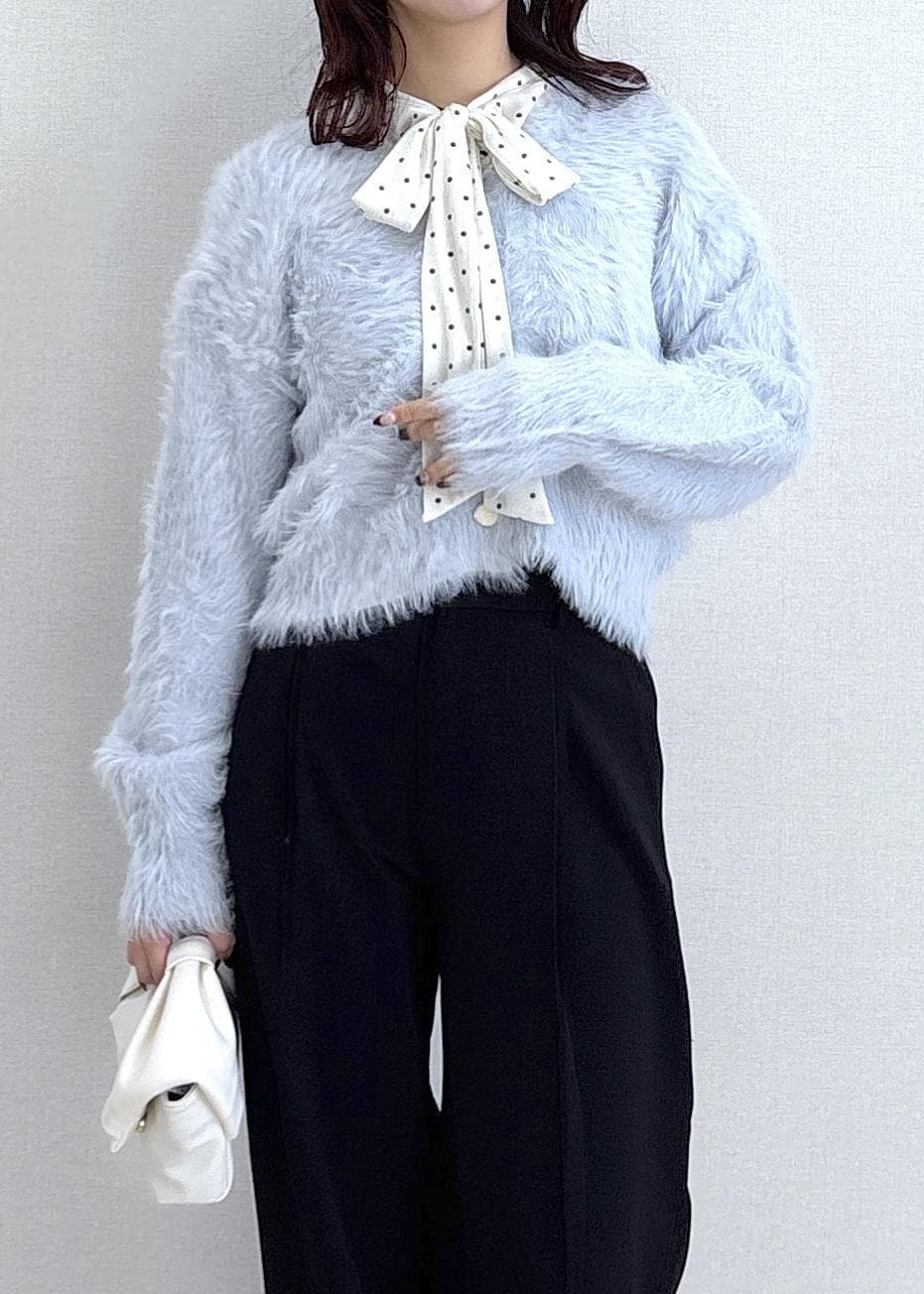 VISラビットファーVネックカーディガン/イージーケア・WEB限定カラーサックス / F¥5,336レビューふわっと軽い着心地のフェザーカーデ。