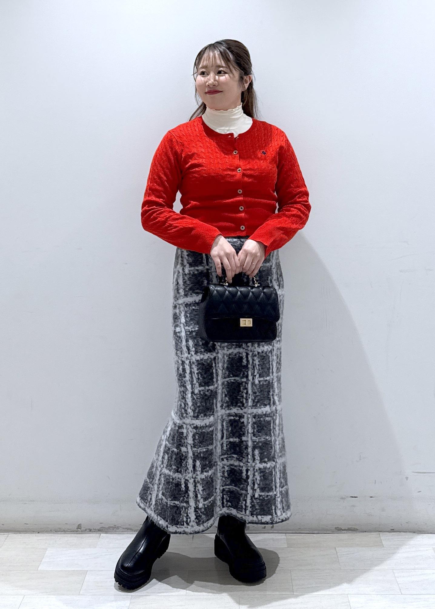 VISチェックアソートシャギーニットスカート/セットアップ対応グレー / F¥6,589レビュー起毛がかかった暖かいIラインニットスカート♪身長157cm/Fサイズ着用でくるぶしぐらいの着丈。ウエストがゴムで作られているので、何より楽で履きやすい!写真よりも割と肉厚の生地感になっており、起毛がかかっているので、内側もふわふわしてて暖かいです。冷え症な私でも室内で履くと寧ろ暑いなと感じるぐらいです。カーディガンとセットアップでも着れるのでお洒落度が高まるのでオススメ!