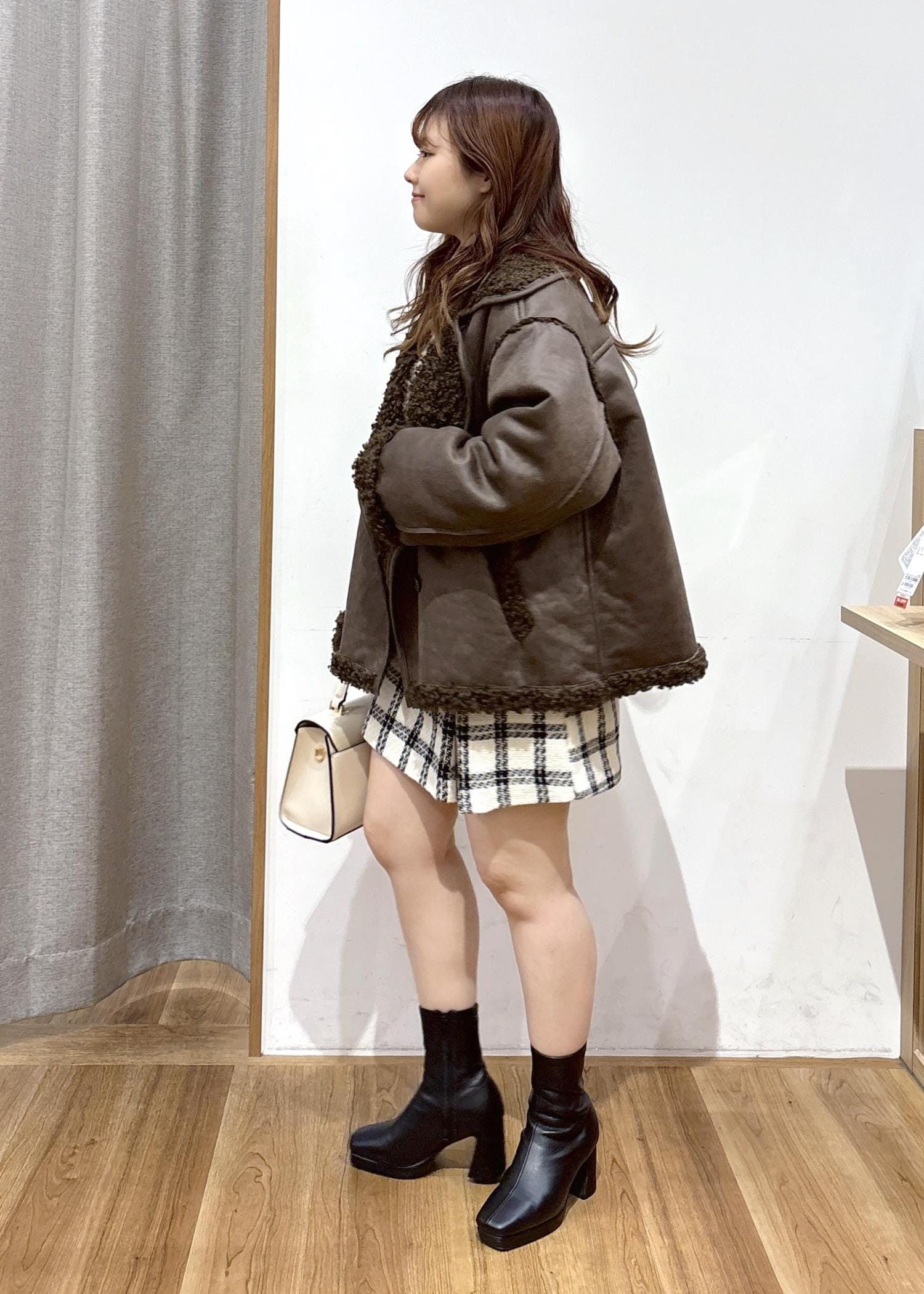 どんなトレンドの中でもかわいい『ピンク×ダークブラウン』をメインに、ふわふわとしたニットやムートンを組み合わせてコーディネートしてみました。