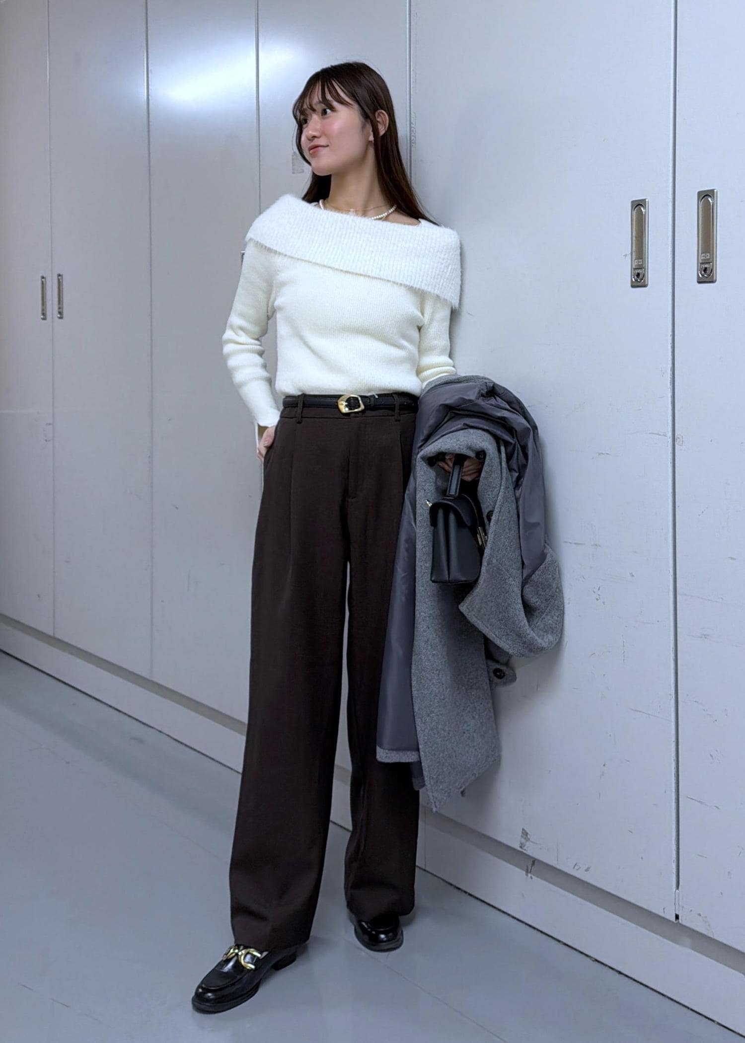 NEW!VISフェザーヤーンオフショルもちもちリブニット/イージーケアオフホワイト / F¥5,929レビュー167cmの身長で袖の長さがしっかりあったので安心して着ることができました。