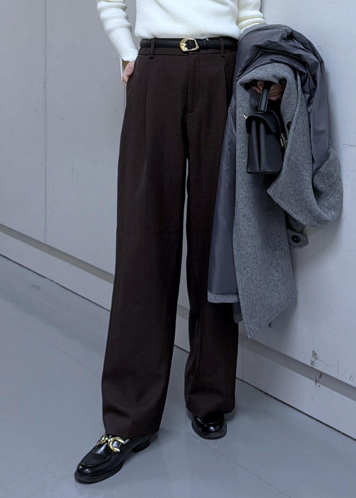 VIS【美easy】ウーリッシュワンタックワイドパンツ【セットアップ対応/洗える】ダークブラウン / M¥6,589レビュー167cm、骨格ウェーブの私でMサイズがちょうどよく踵が隠れるぐらいの長さでした。サイドにボタンがあるのでウエスト調節ができるのがよかったです◎