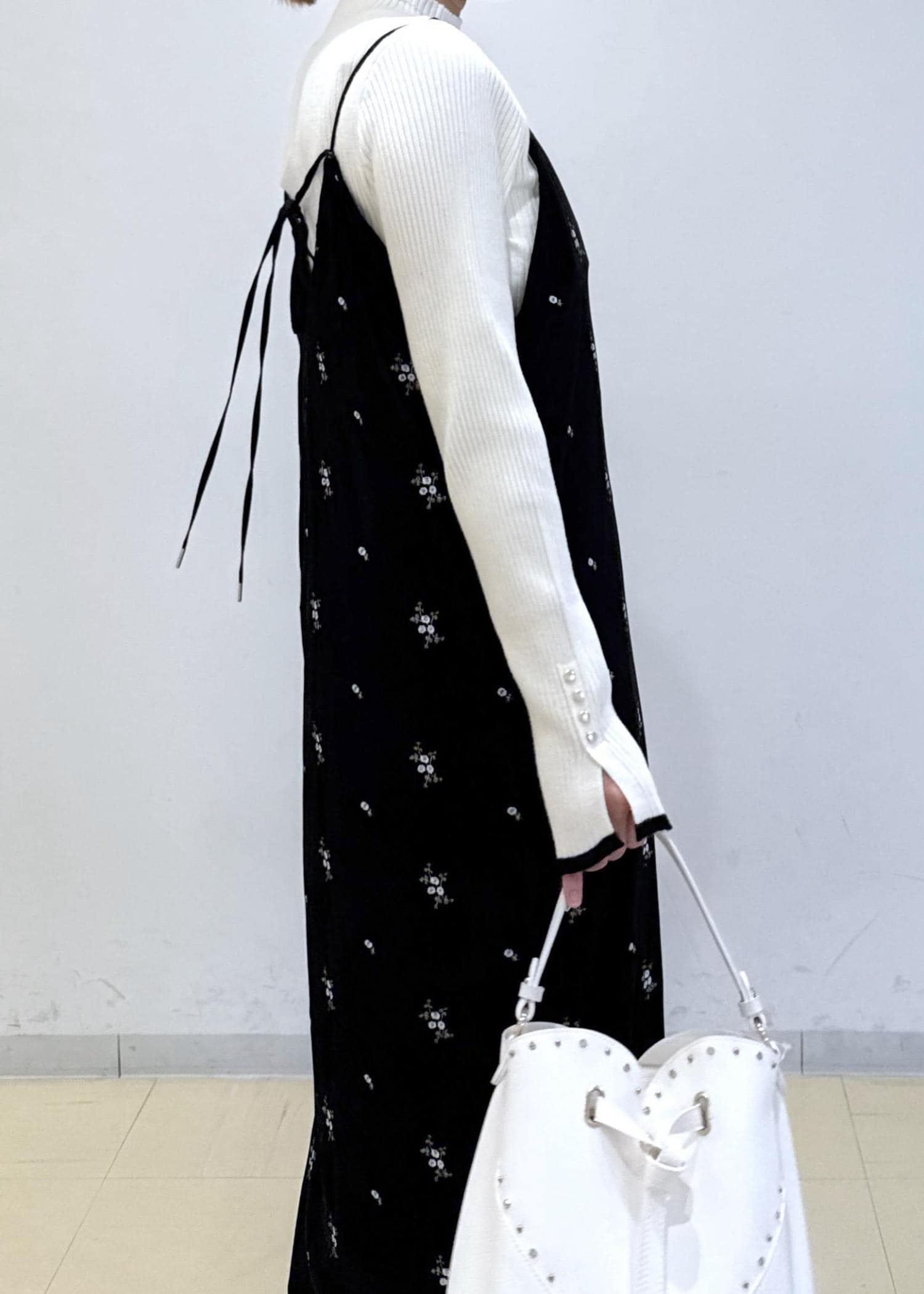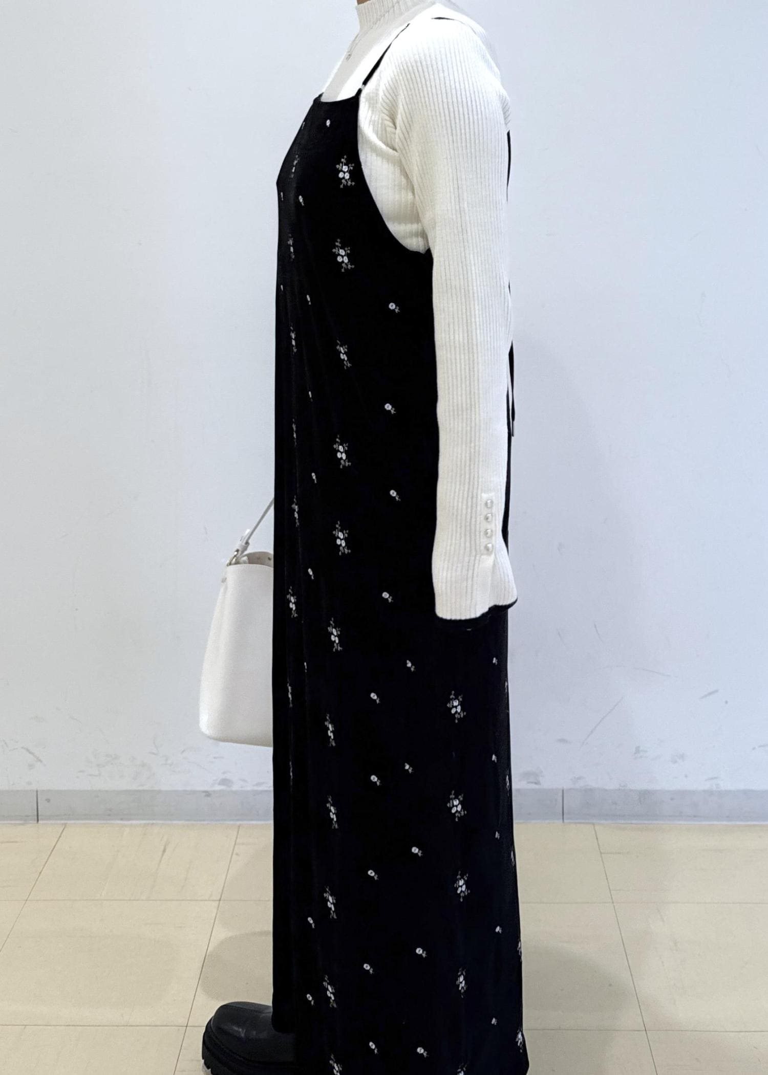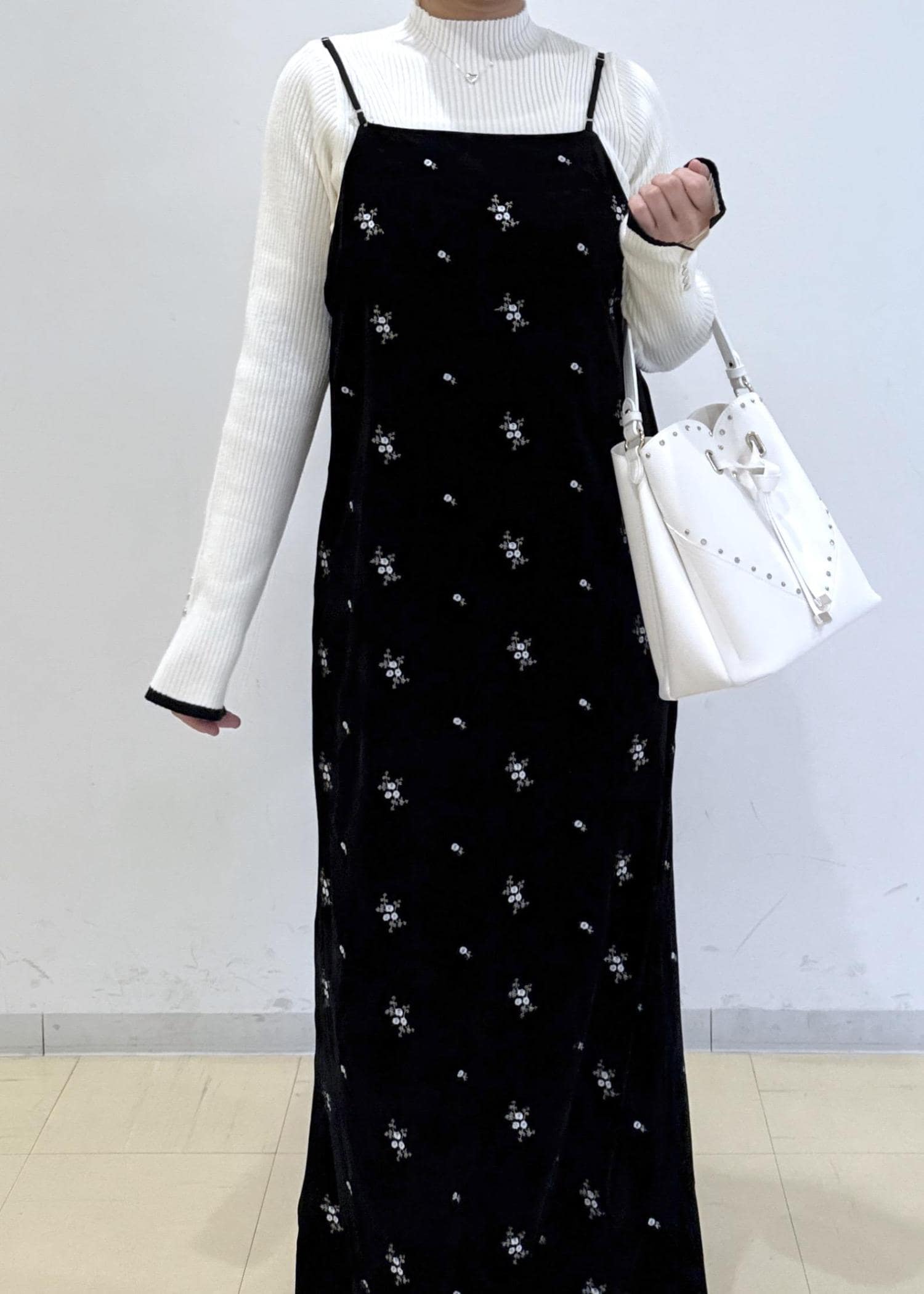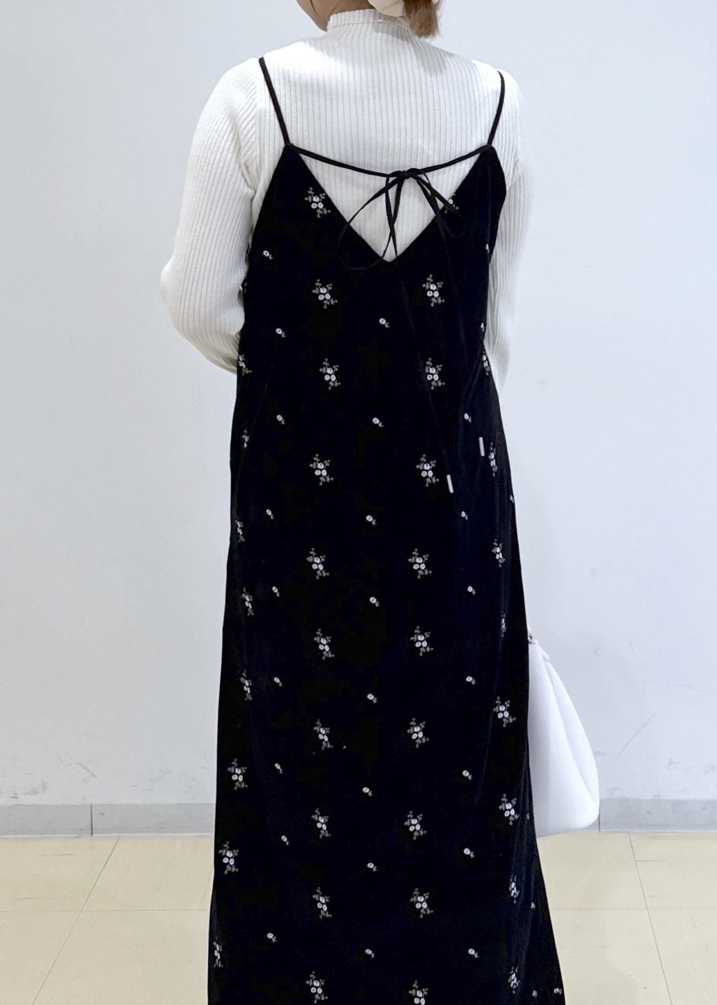 VIS刺繍アソートベロアキャミワンピース/2WAYブラック系 / F¥8,899レビューワンピースは丈が長くて断念することが多いですが、このワンピースは肩紐で長さ調節が可能なため、低身長の私でも着れました◎