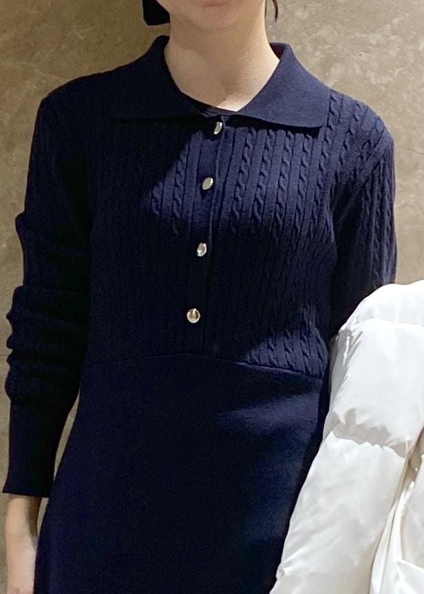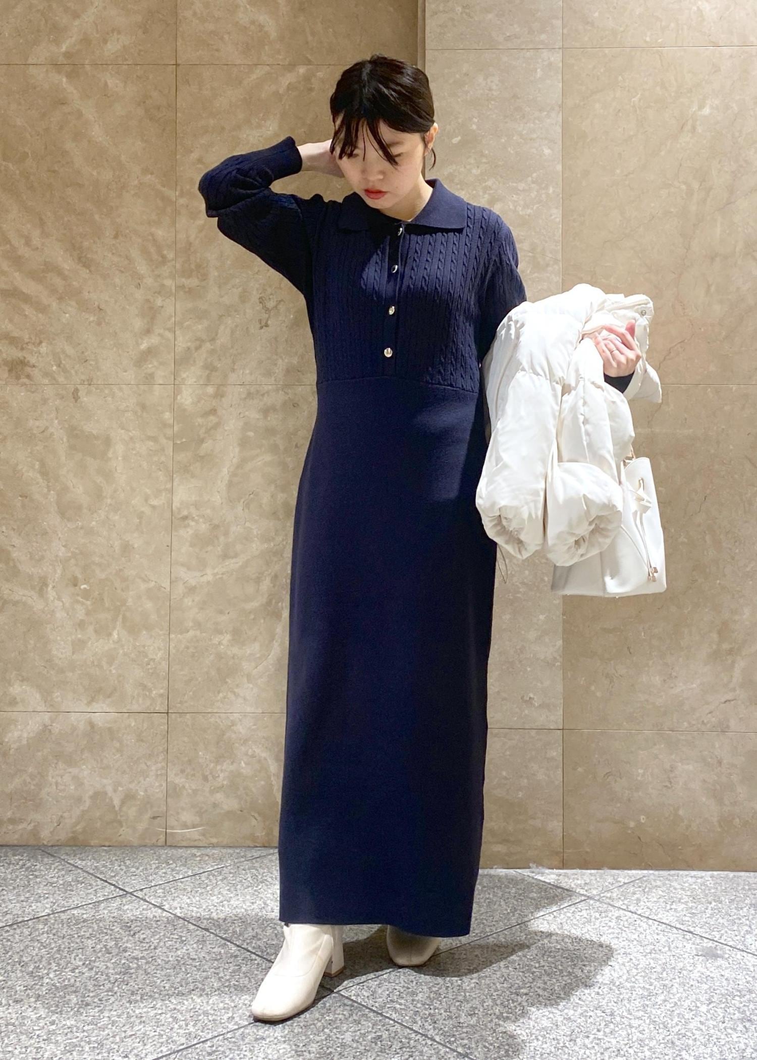 VISポロケーブルモチモチニットワンピースネイビー / F¥8,899レビュー150cmでFサイズ着用し、かかとが隠れるぐらいの丈感でした!