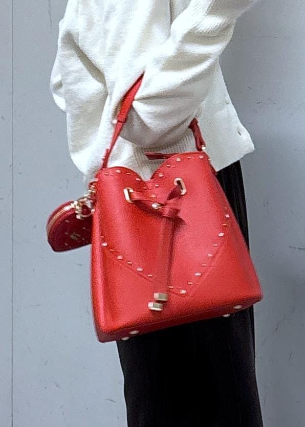 NEW!VISラインストーン&スタッズハートカットバッグレッド / F¥7,909レビュー大人気!ハートバッグにスタッズが着いたクリスマス仕様✨