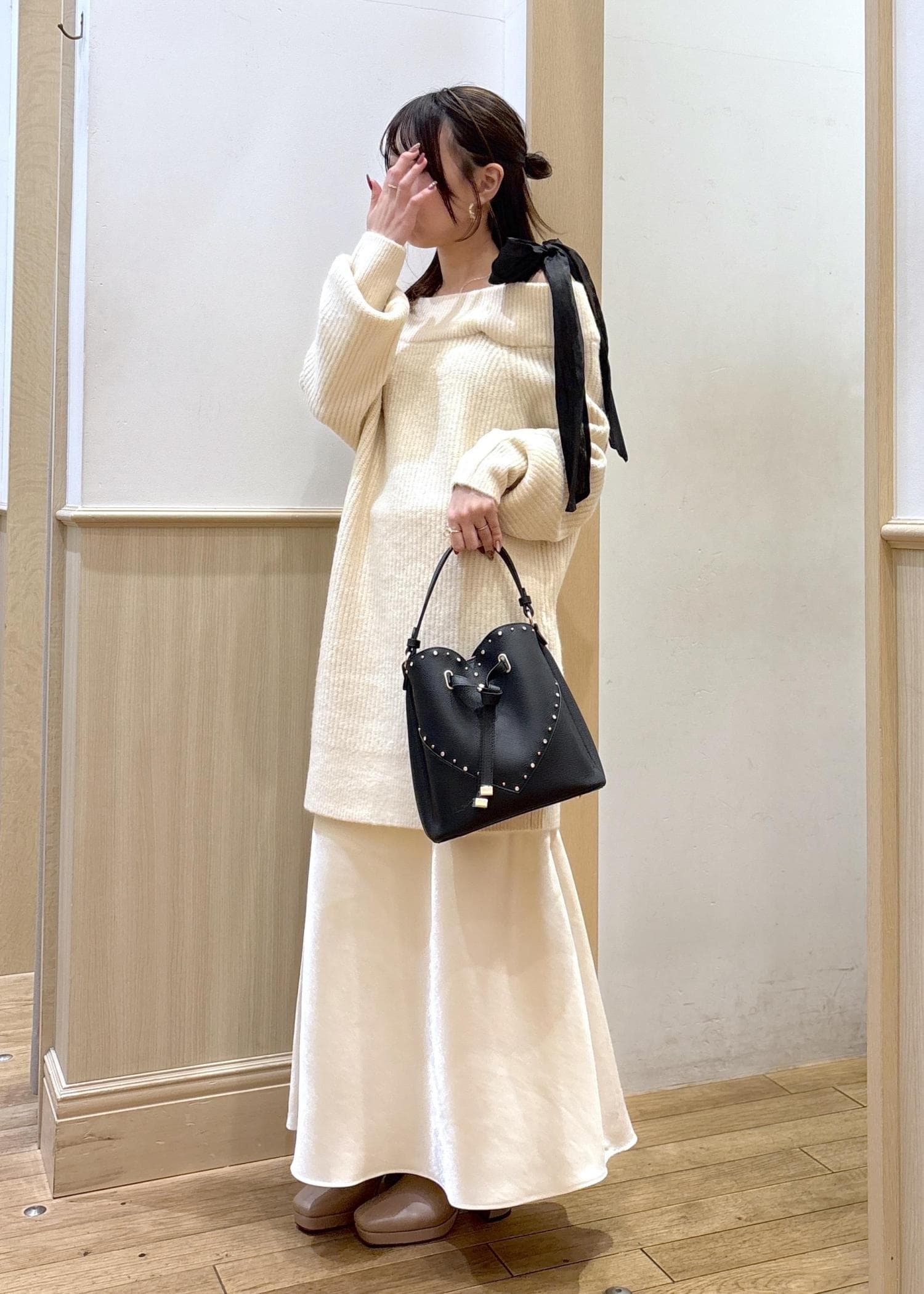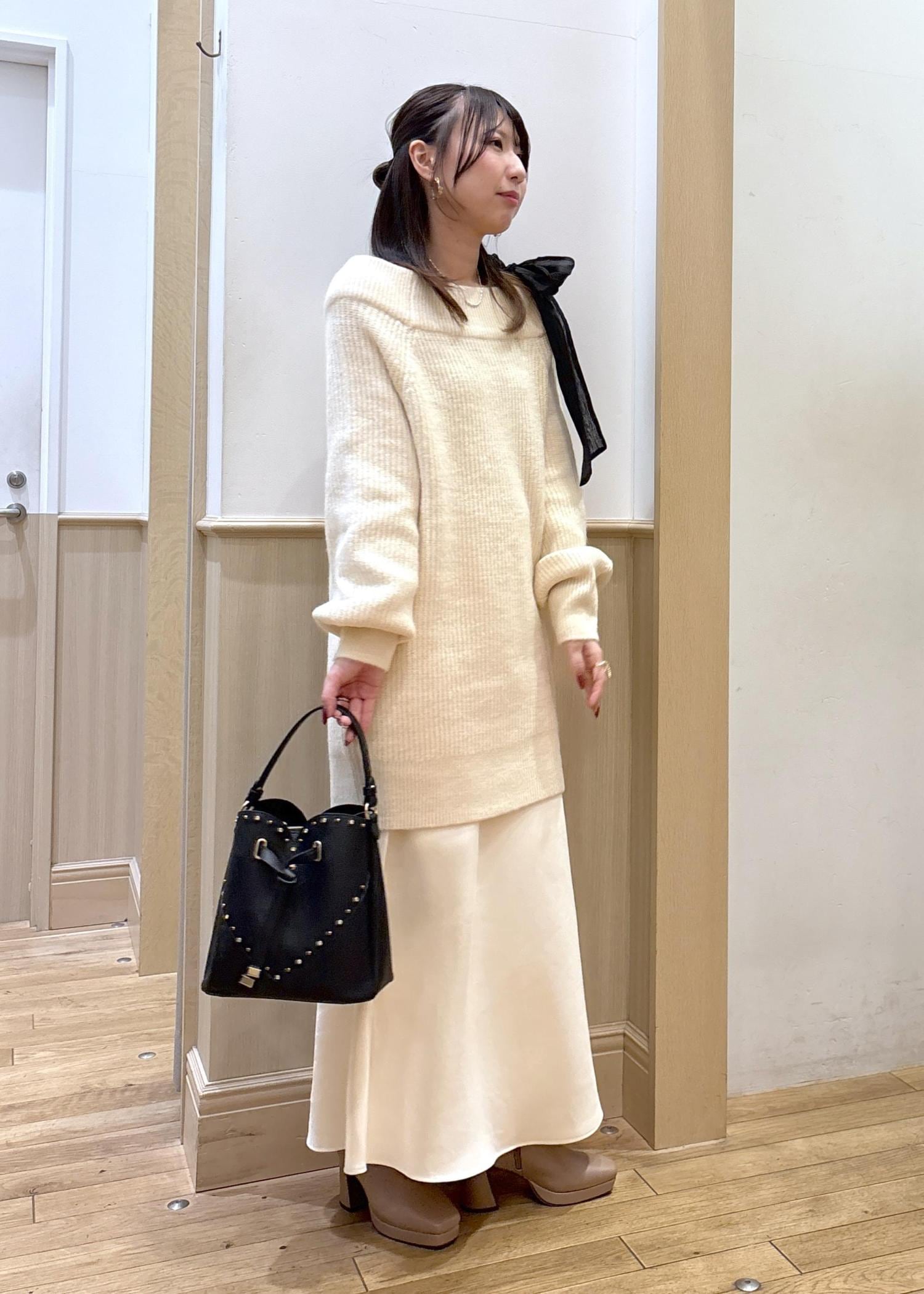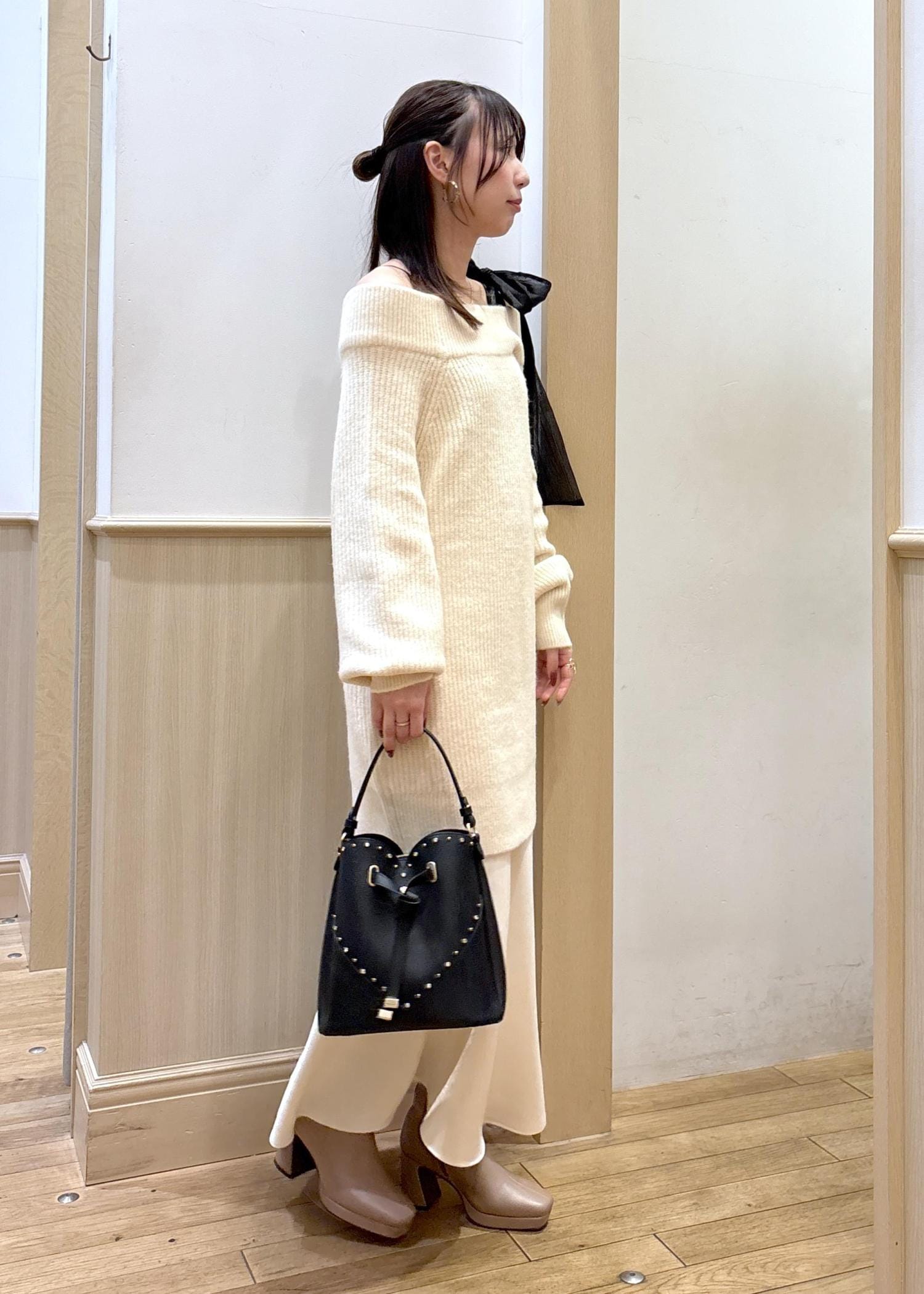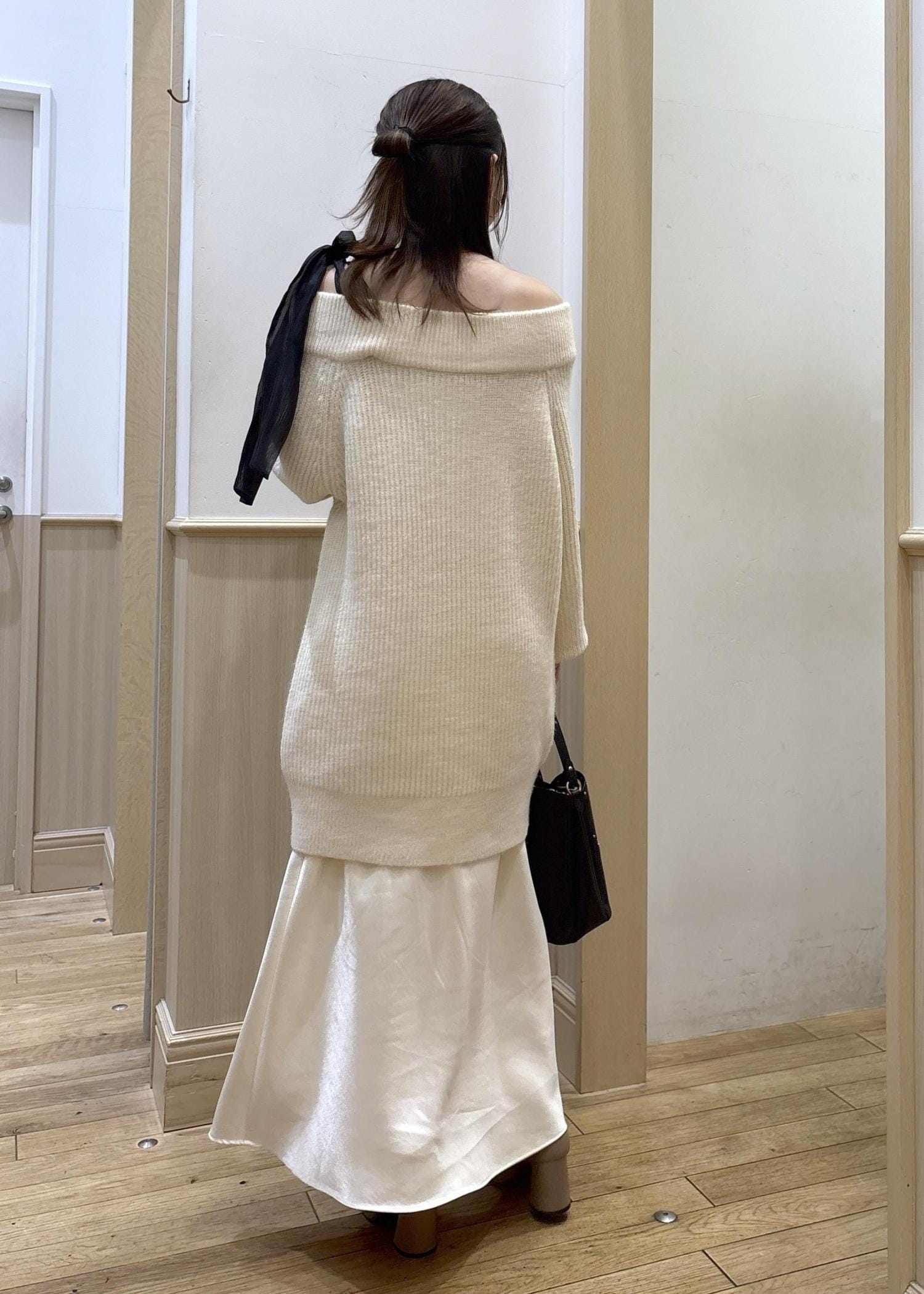 オフショルでも、肩を見せなくても使えるような便利なサイズ感です。
