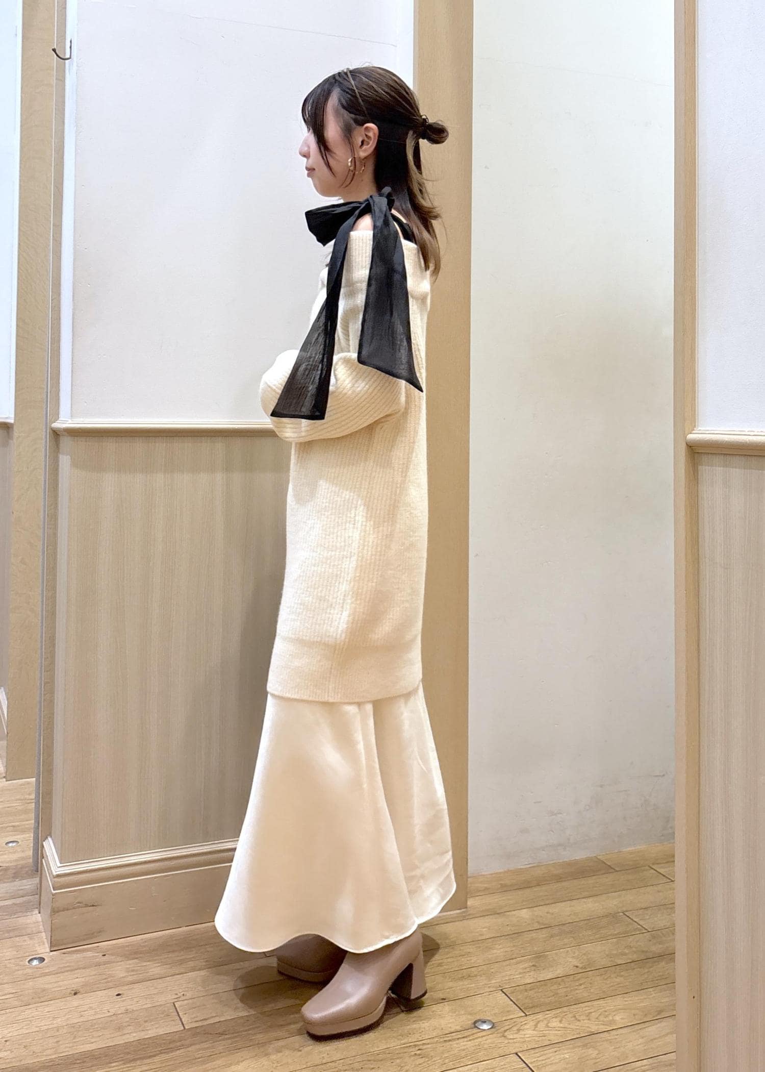 VIS肩リボンミニ丈ニットワンピース/2WAYキナリ / F¥7,909レビュー156センチで膝上くらいの長さです。