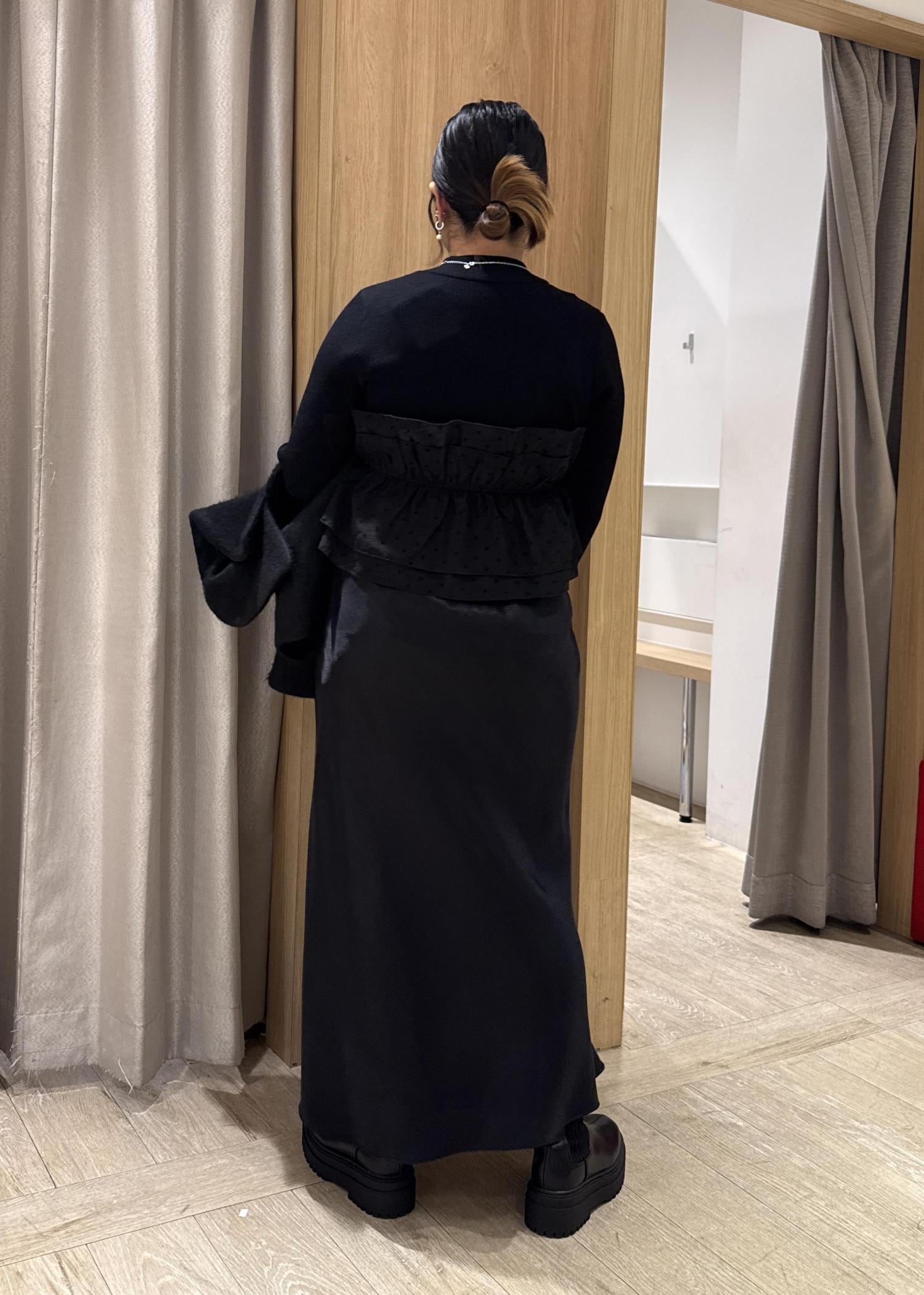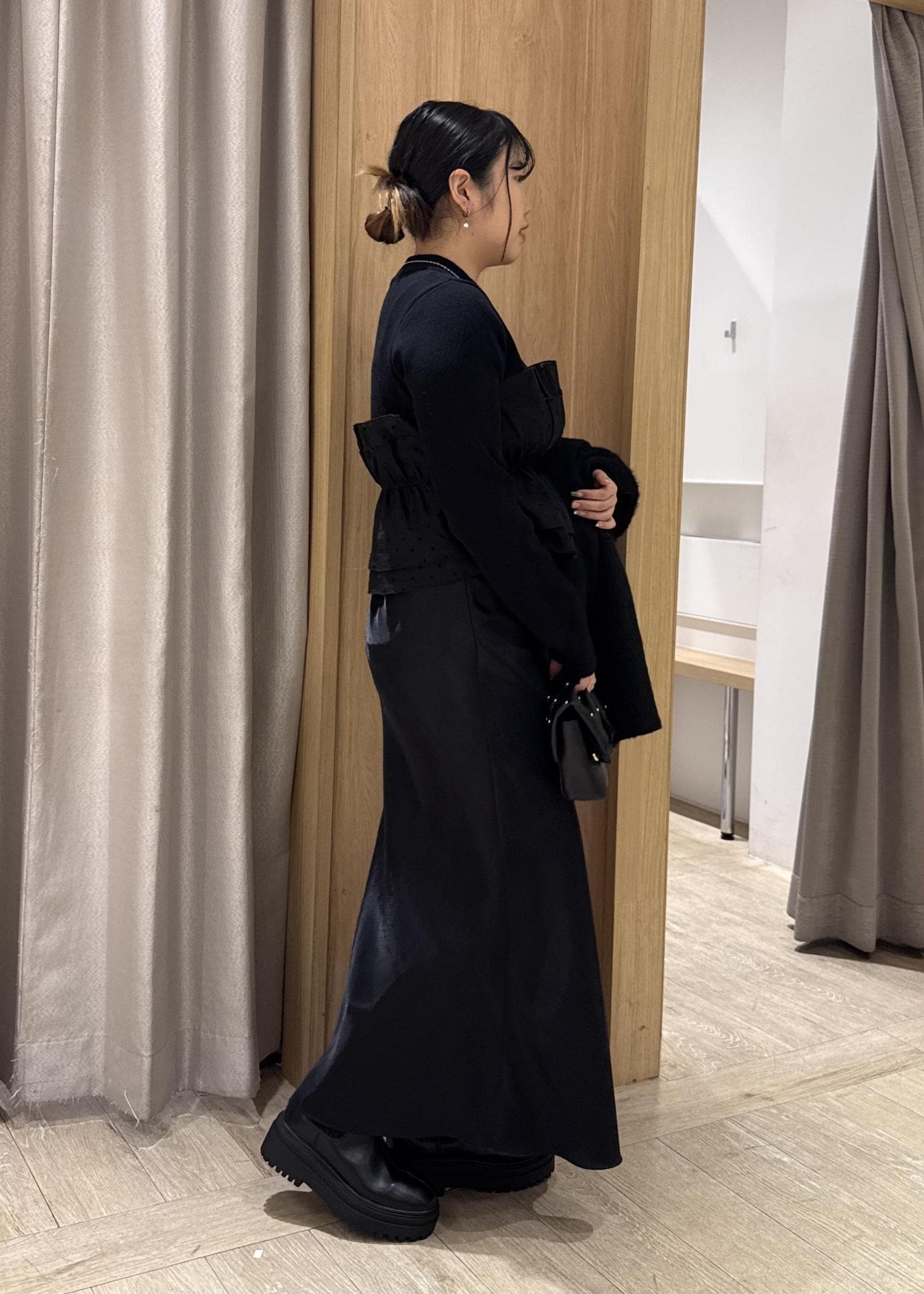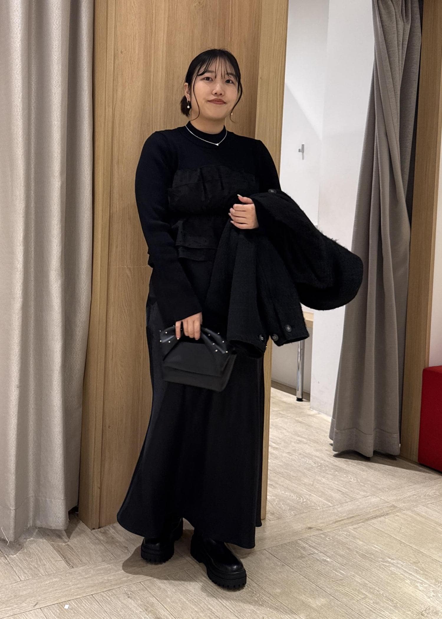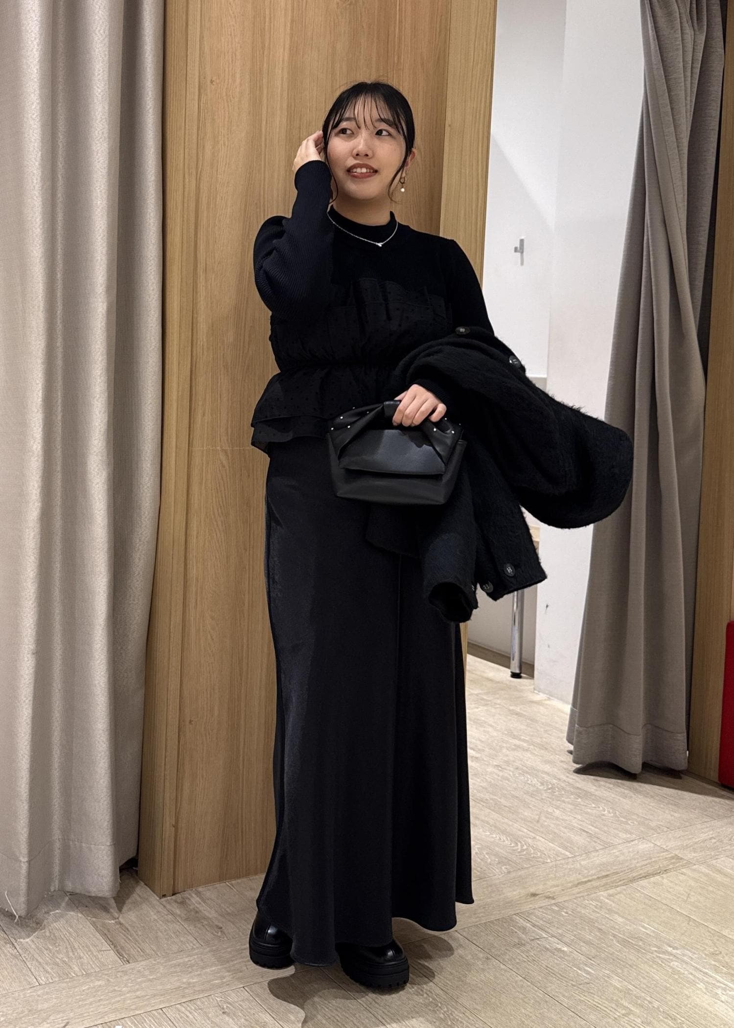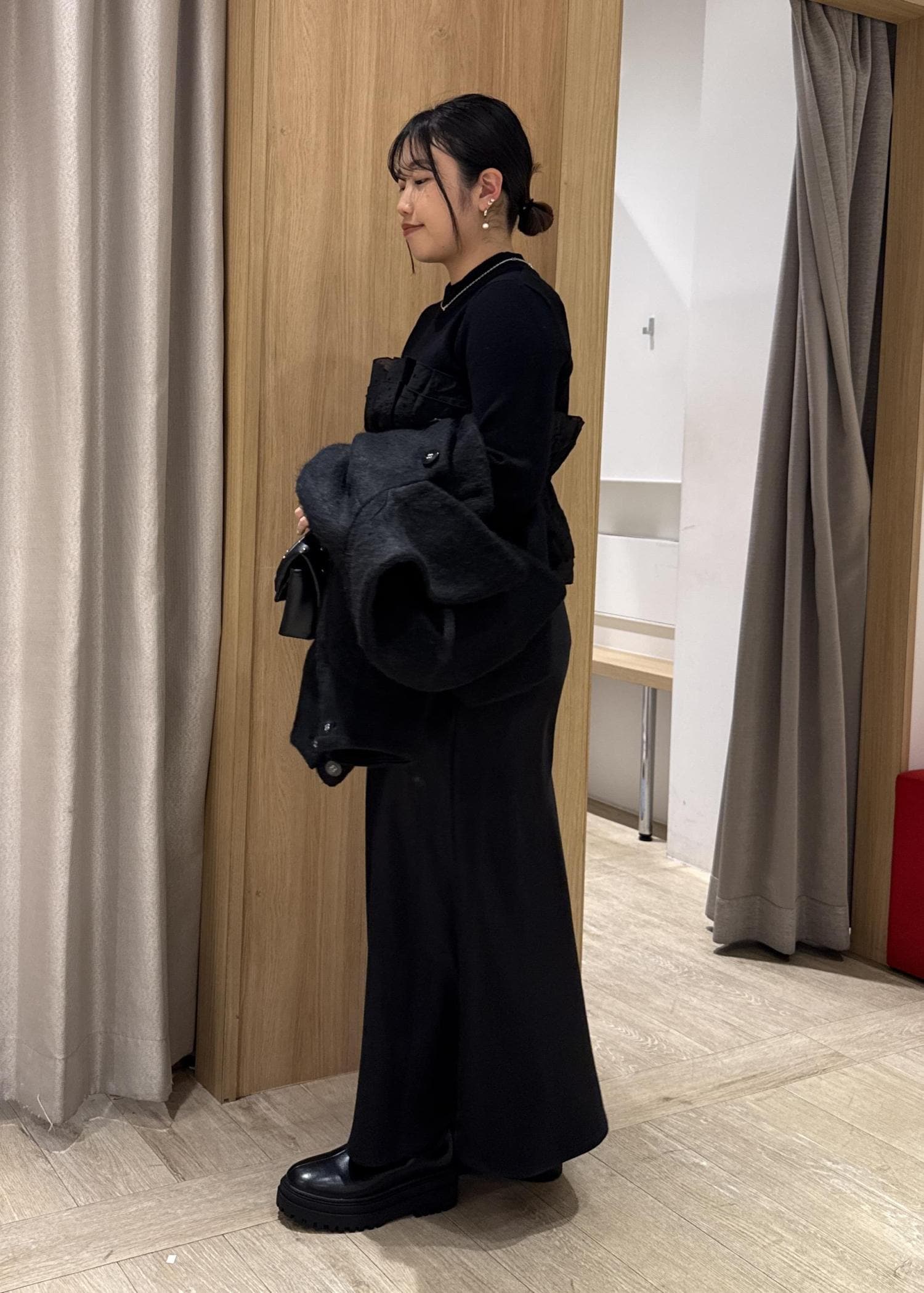 VISシャイニーナローフレアスカートブラック / F¥6,589レビュー153cmの私ですが、足首がちょうど隠れるくらいの丈感でした。