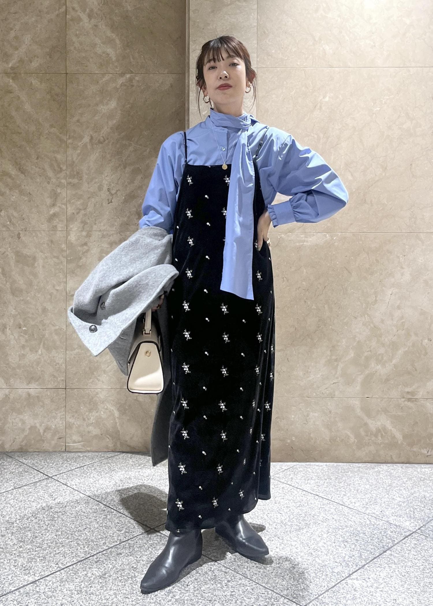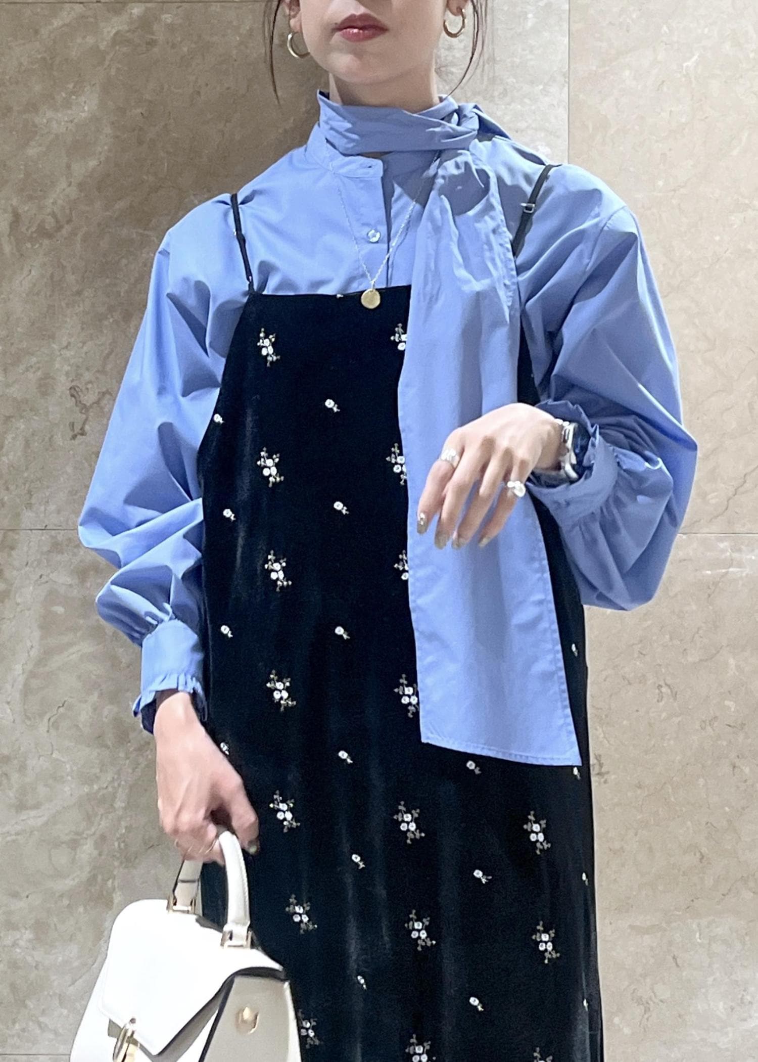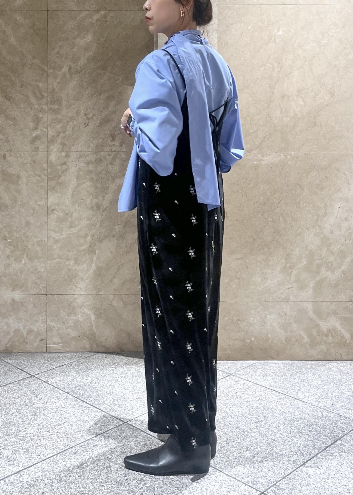 着心地とベロア×花柄刺繍の他にない掛け合わせがお気に入りで、リアルバイのアイテムです。 -