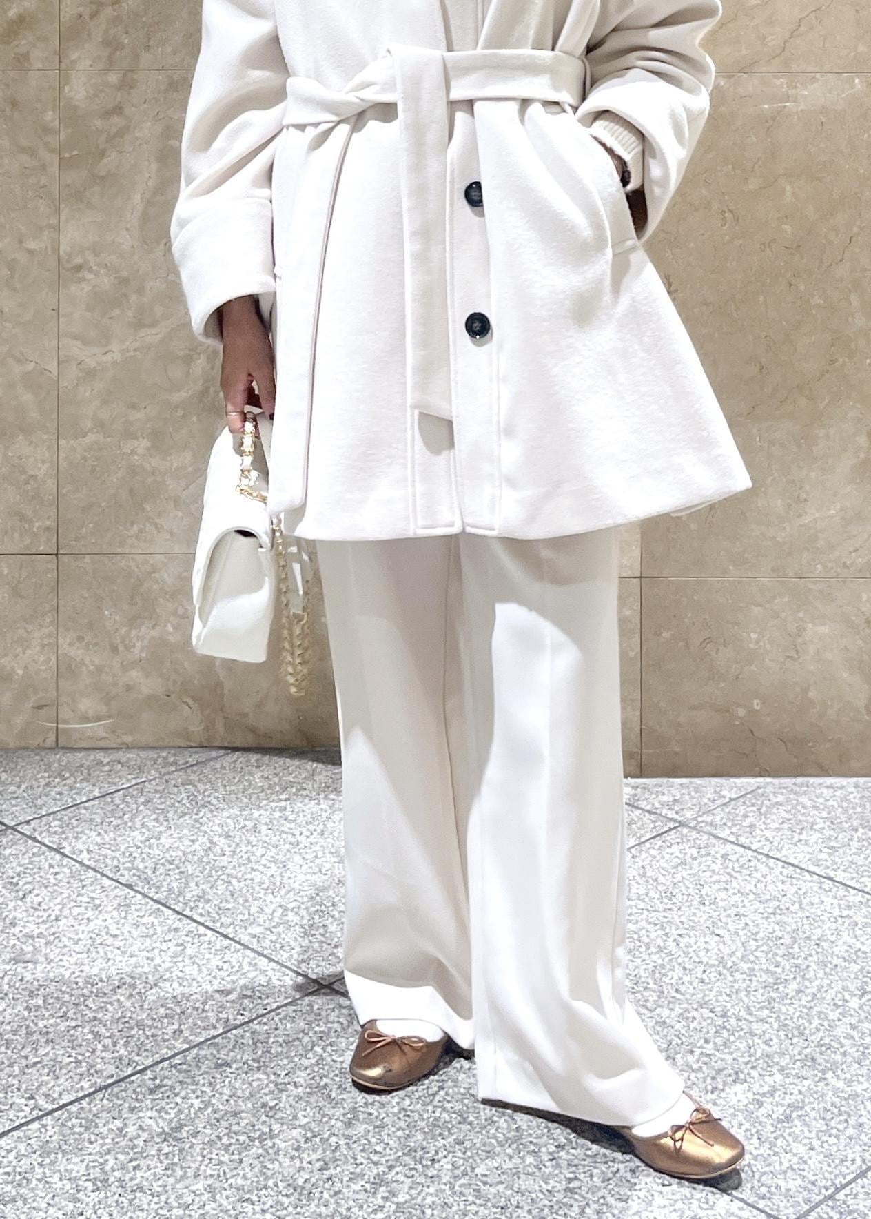 襟を立てたり、ウエストをキュッとベルトで締めたりなど一枚で着こなしのバリエーションも広く、ロングコートと違ってボトムスのシルエットが綺麗に見せられるのも嬉しいポイント、、!