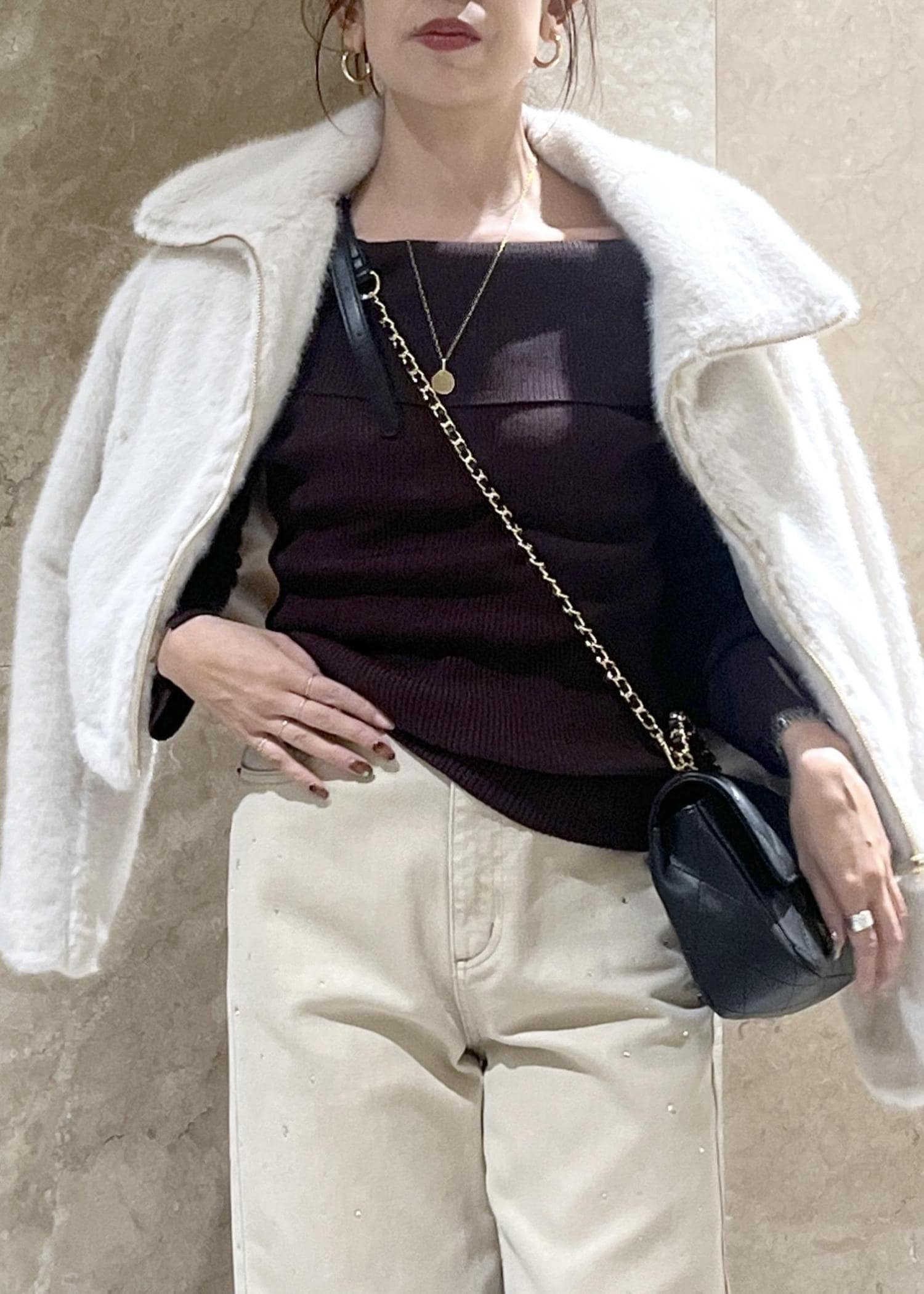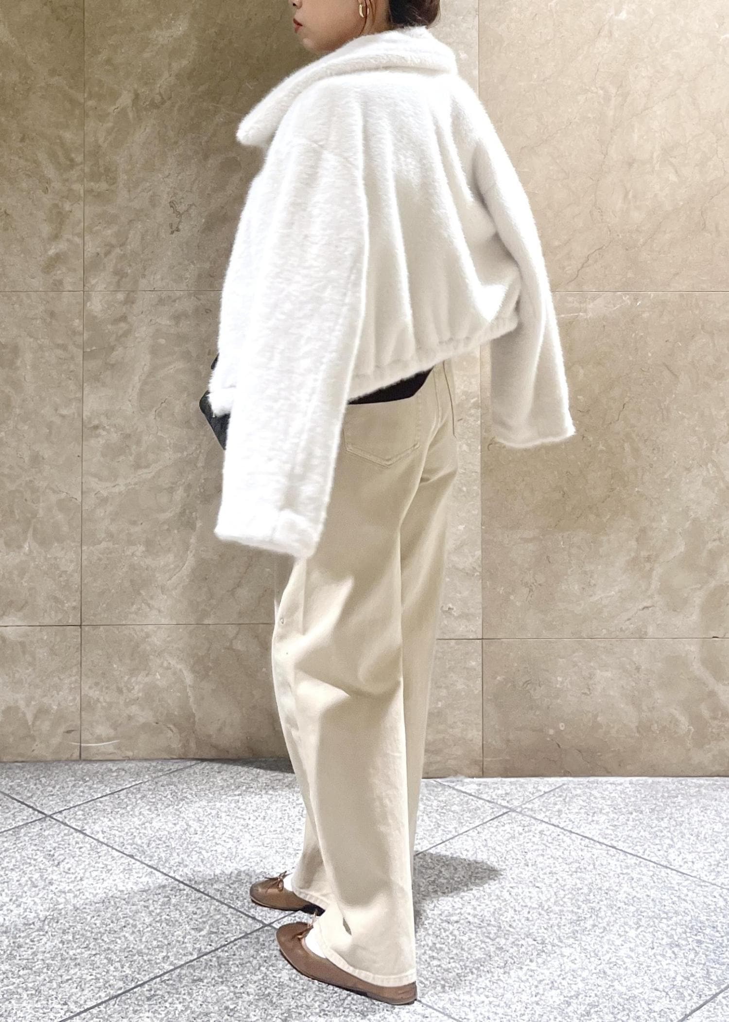 着丈は腰あたりまでのコンパクトな丈感で、ファーのボリュームもすっきりと着用できました◎