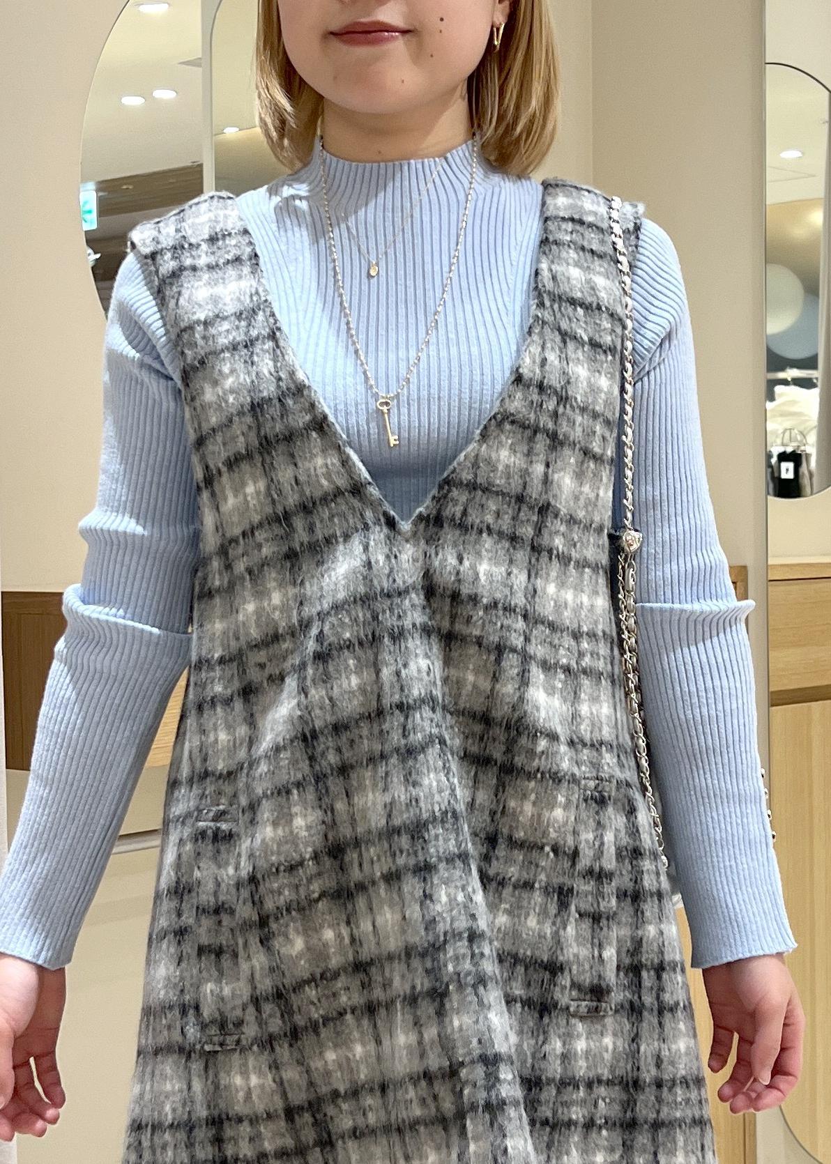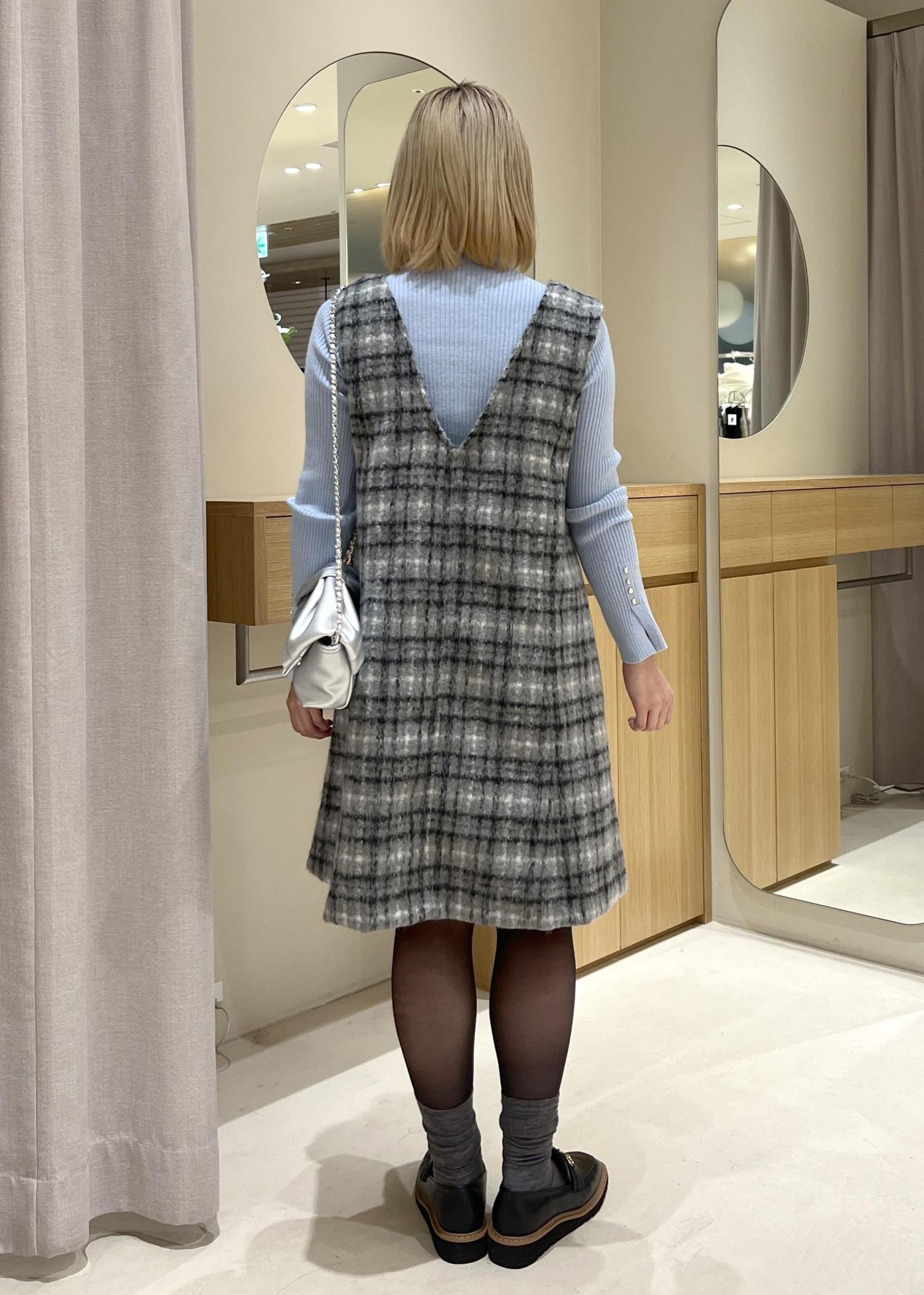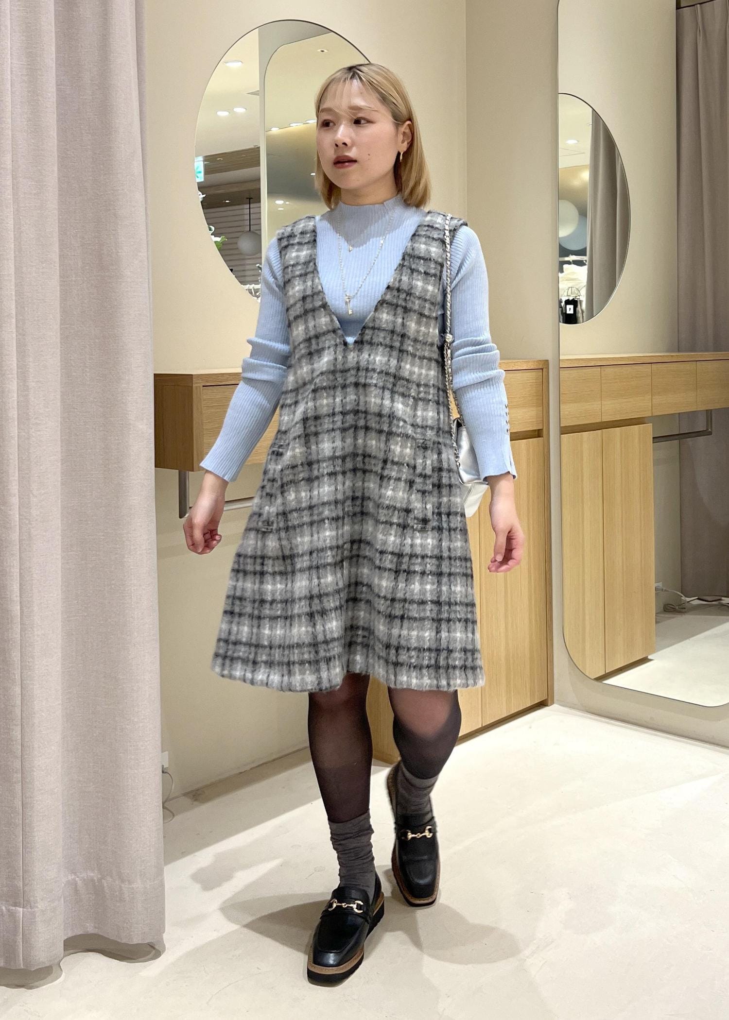 VISシャギーVネックミニ丈ジャンパースカートグレー系 / F¥7,909レビュー深めのVネックが特徴のミニ丈ワンピースです!