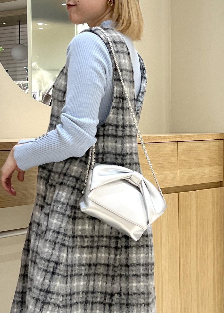 VISリボンハンドルチェーンショルダーバッグ/2WAYシルバー / F¥5,929