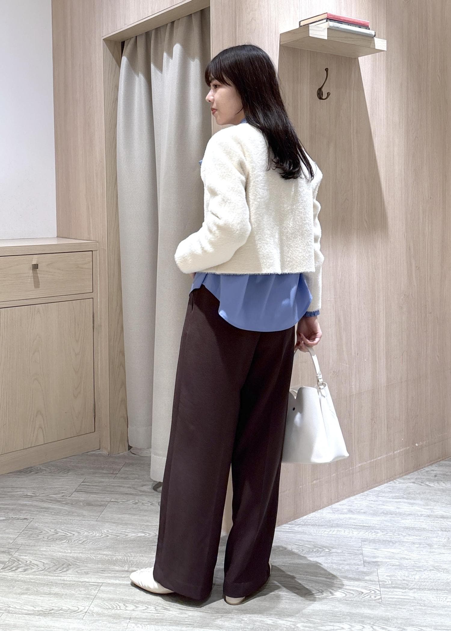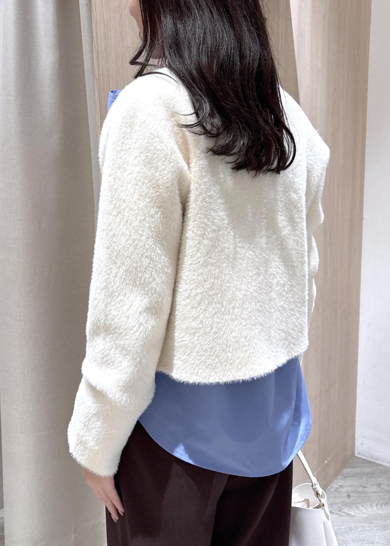 NEW!VIS接結ミニフェザーニットジャケットカーディガン/一部WEB限定カラーオフホワイト / F¥6,919レビュー身長168センチだとおへそあたりの丈感です。