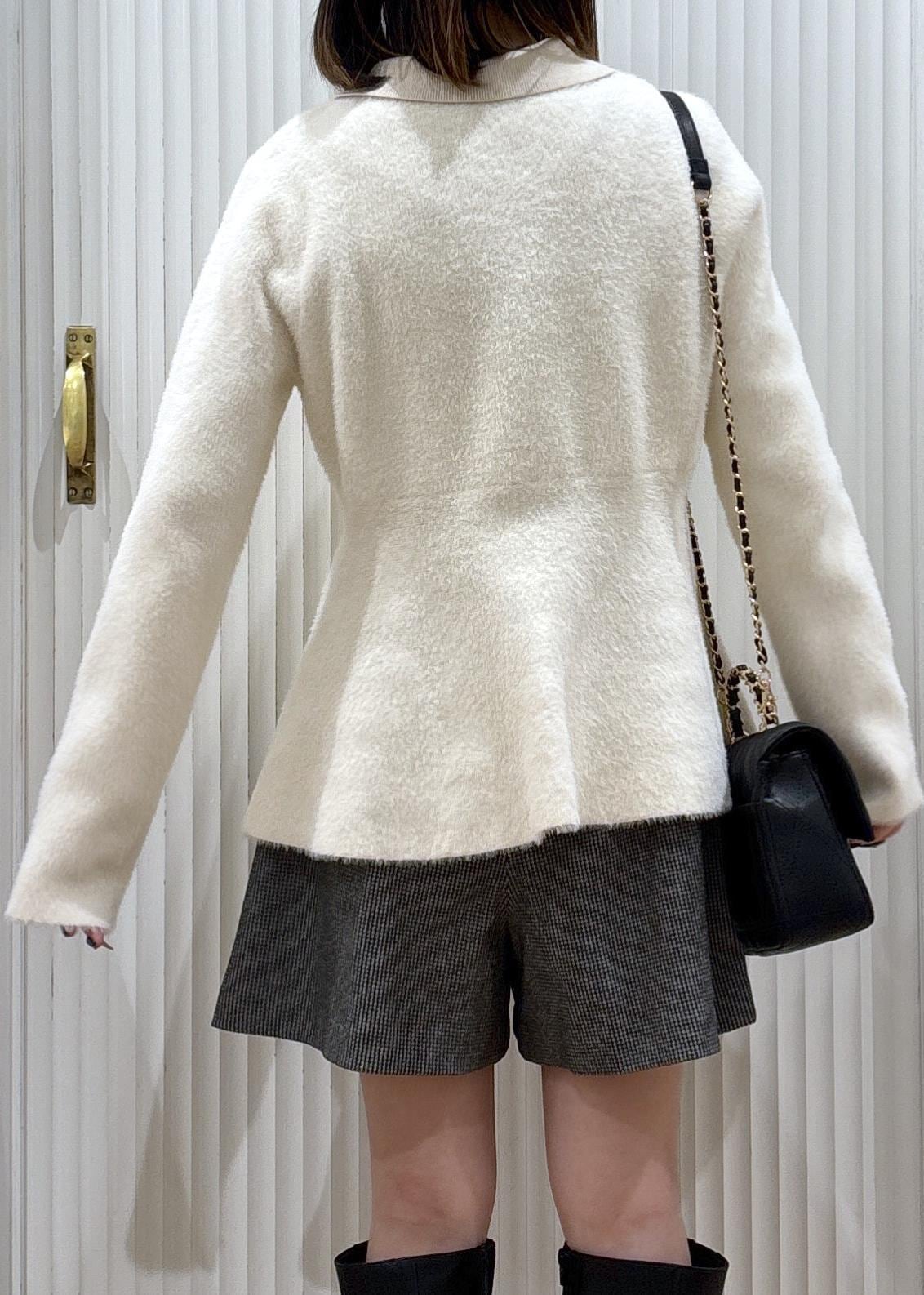 VISペプラムデザインシャギーニットオフホワイト / F¥5,929レビューゆったりした身幅ですが切り替え位置が高く着膨れして見えにくいです!着丈はヒップにかかるくらいで袖丈は手が隠れるくらいで長めでした。襟がついているので一枚できても着映えします!ペプラムでお腹周りがカバーされるのにスッキリして見えるのが◎