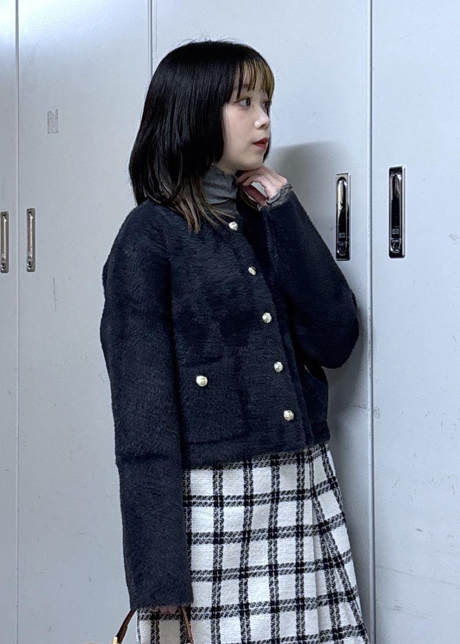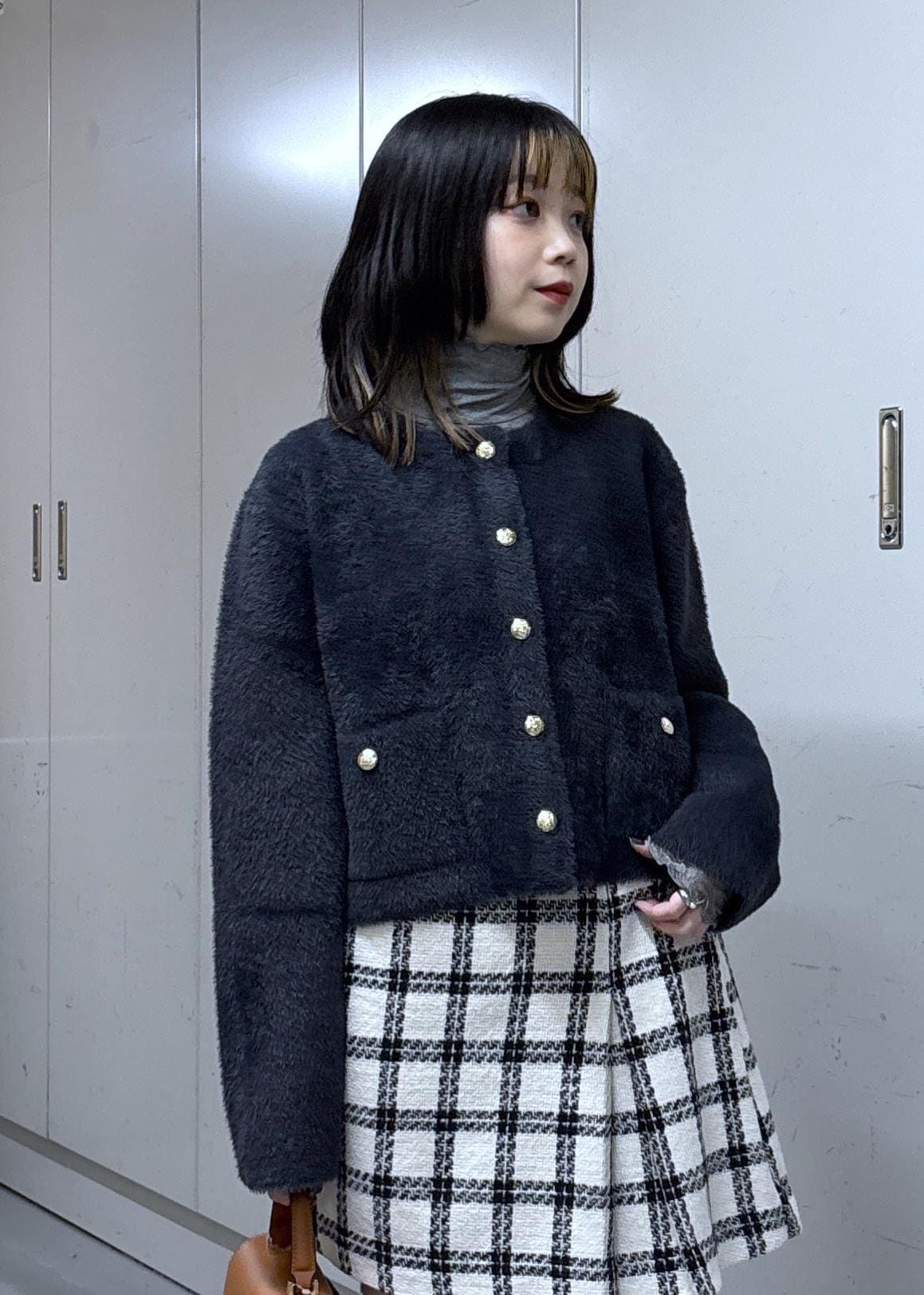 裏がツルツルなのでニット系にも羽織りやすく、コンパクトで柔らかい素材感なので上にアウターも羽織りやすいです◎