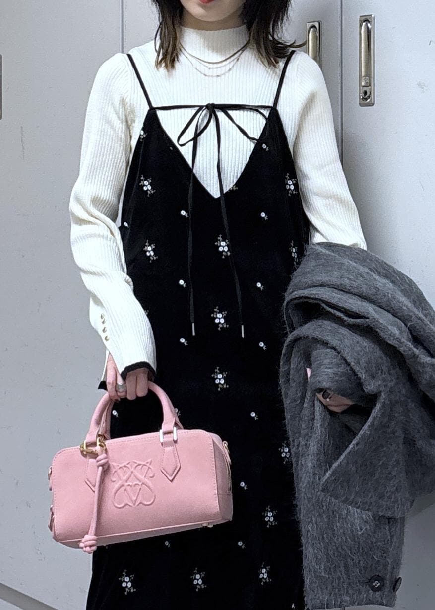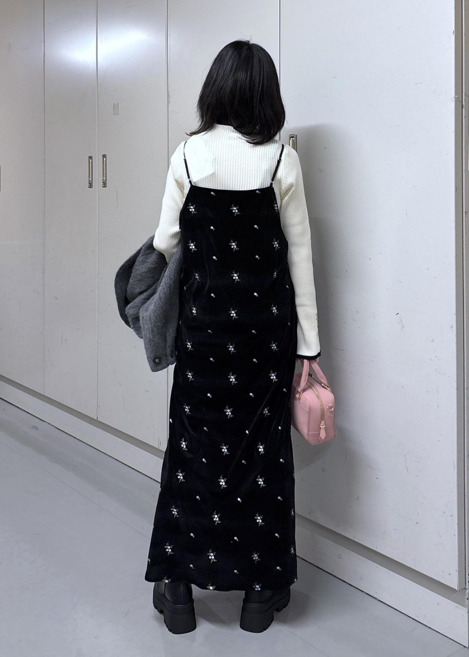 VIS刺繍アソートベロアキャミワンピース/2WAYブラック系 / F¥8,899レビュー肩紐の使い方で表情が変えられます♩