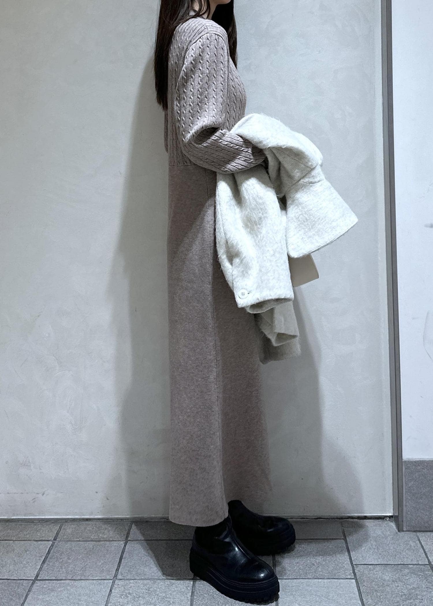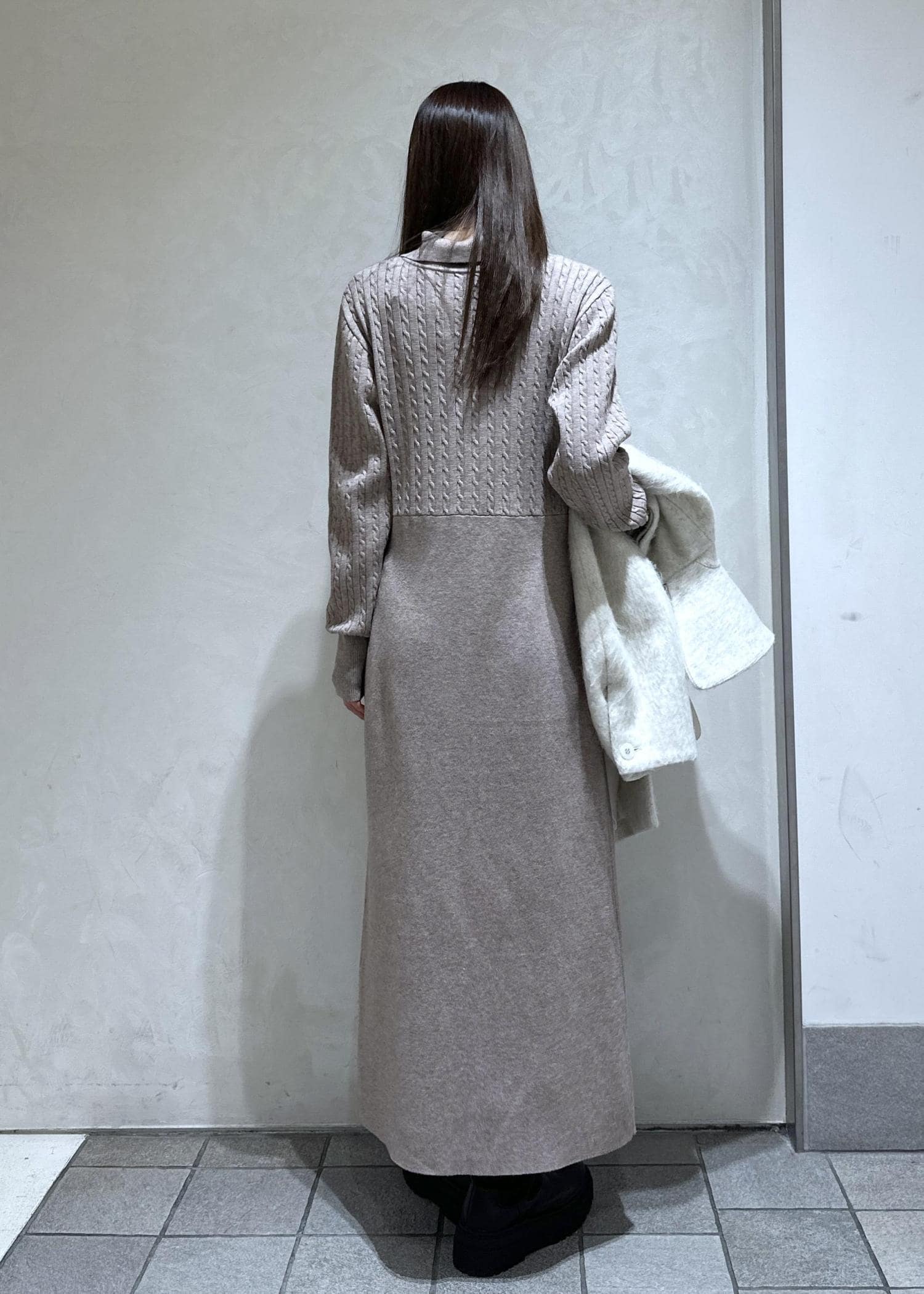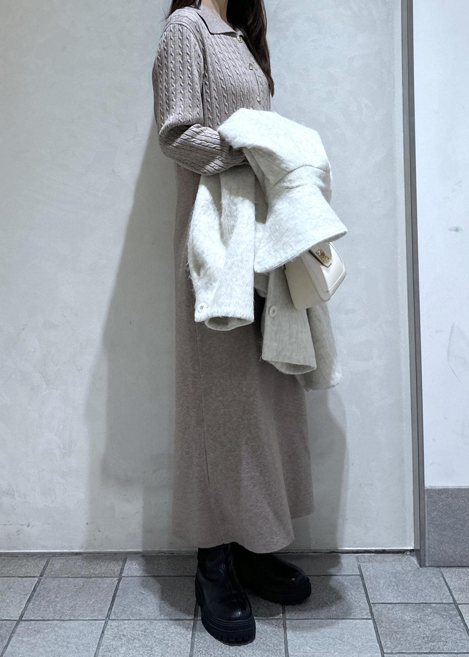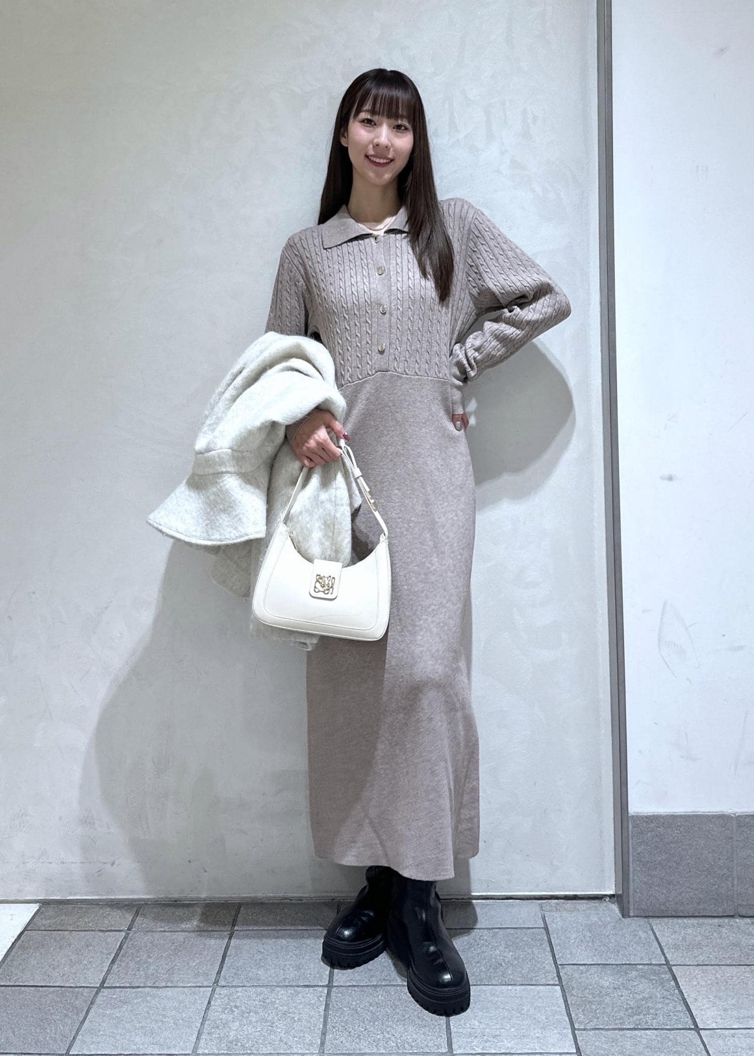 VISポロケーブルモチモチニットワンピースベージュ系 / F¥8,899レビュー165cmで丈間は足首くらいまであり長めに着用できました!ニット素材なので伸びも良く着心地抜群です◎