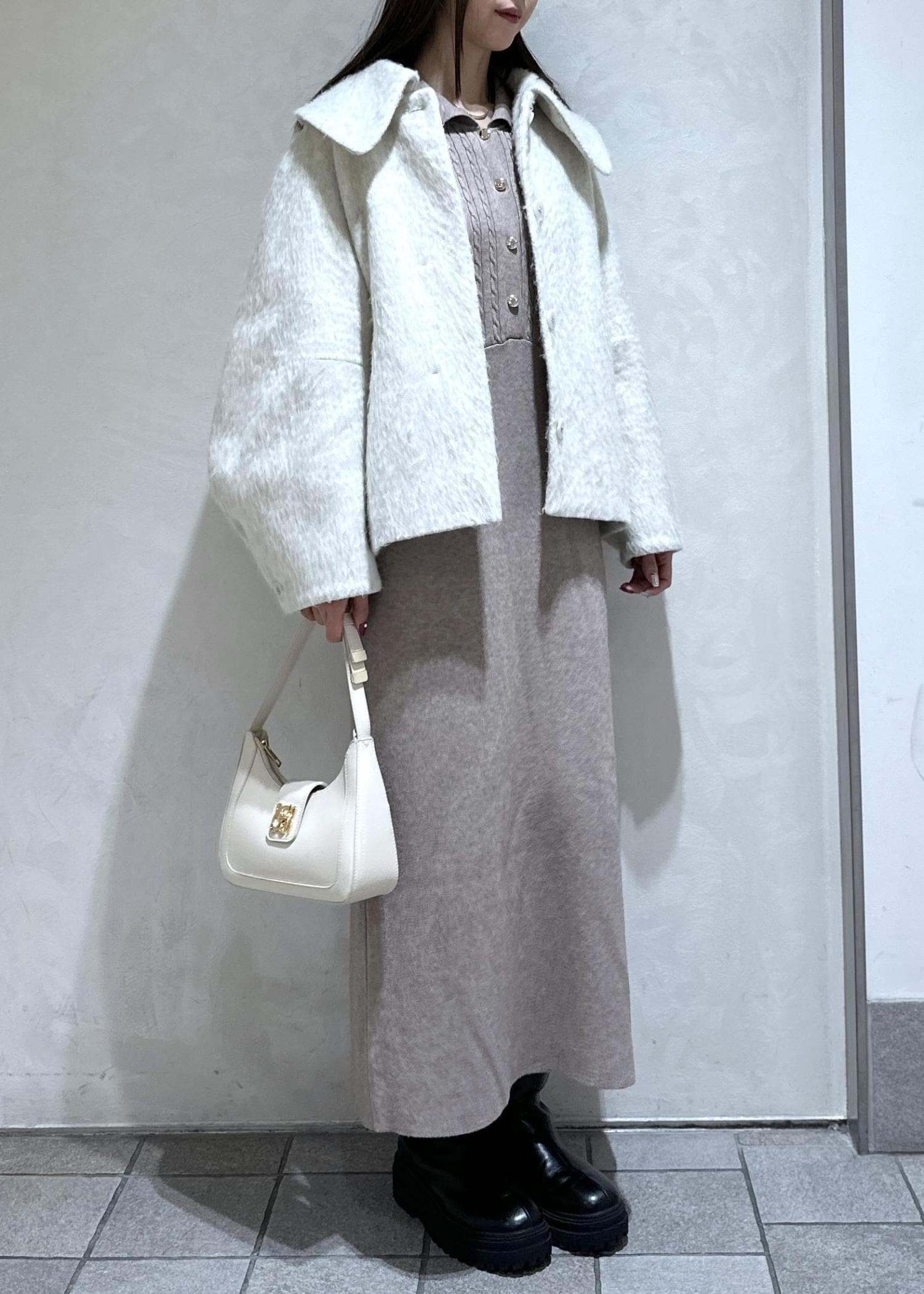 NEW!VIS【アウター総選挙1位】ビッグカラーモモンガシャギーショートコートオフホワイト / M¥10,989レビューゆとりのあるアウターですが着膨れもせず着ていただけます。中にもたくさん着込めます◎大きな襟が今っぽくて可愛いです♡