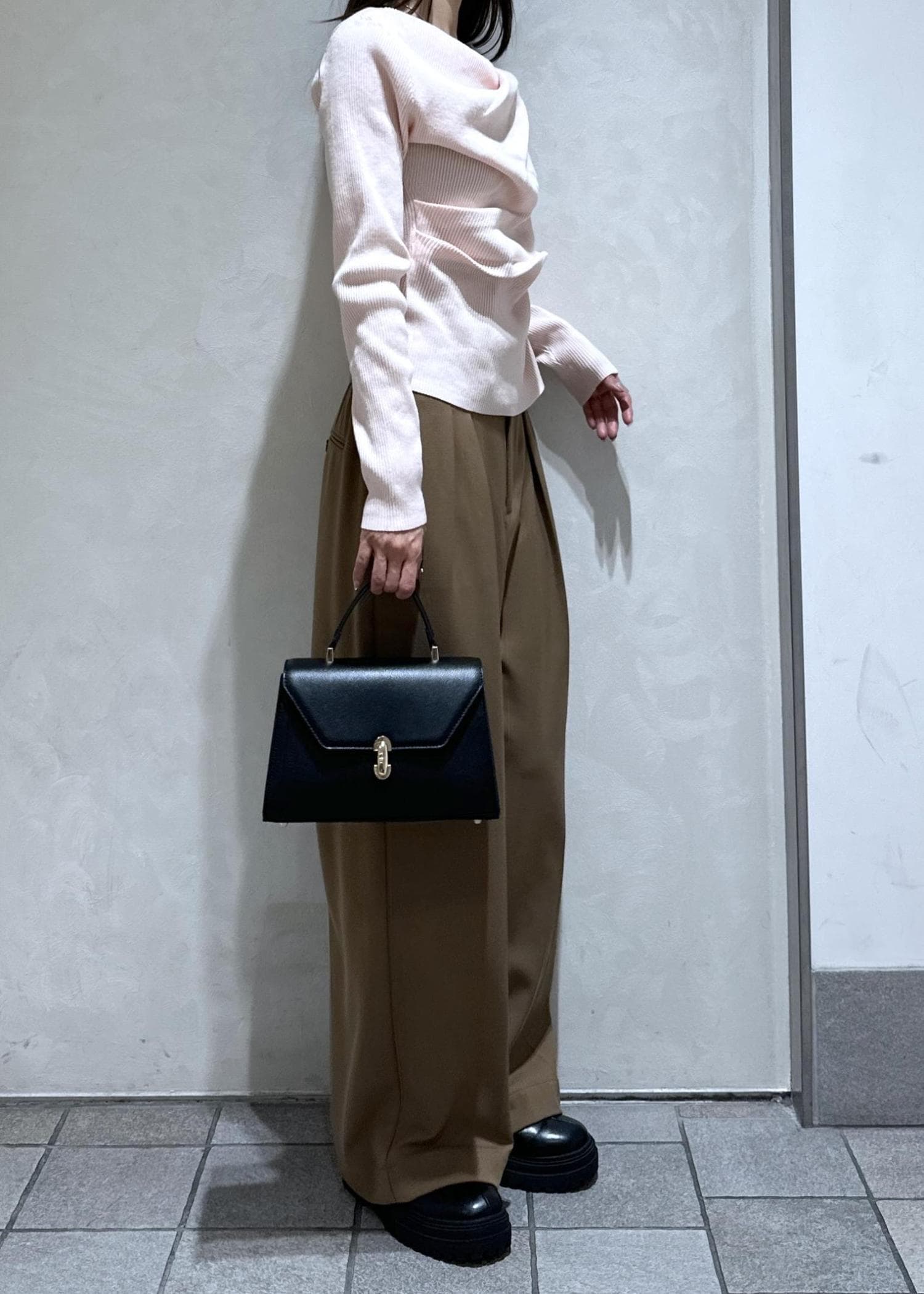 黒の小物で引き締めた、甘さ控えめの大人スタイルです♪