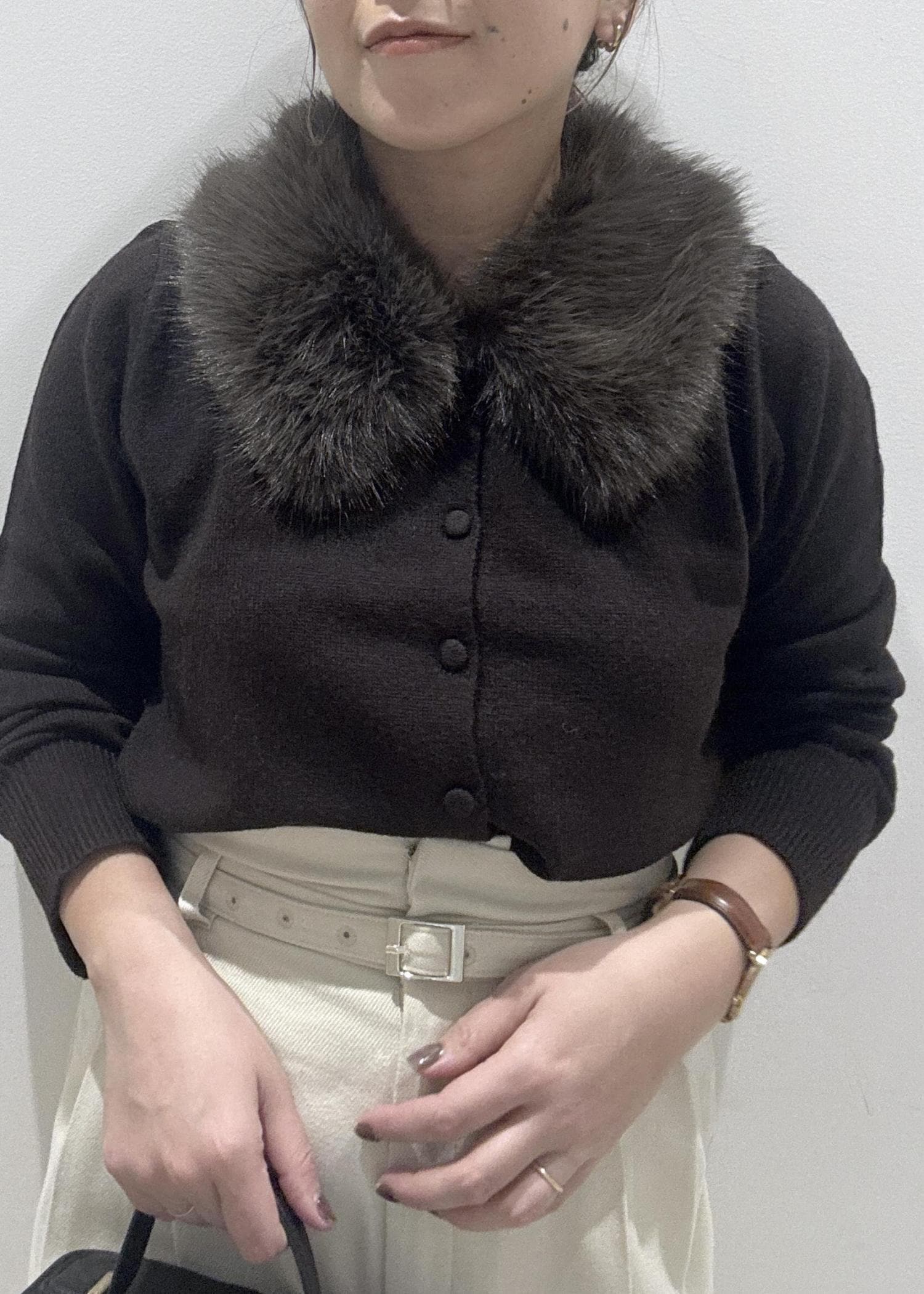VIS衿ファー取り外しカーディガンダークブラウン / F¥6,589レビュー華やかさを出してくれるファー付きのカーディガンは一枚で着映えします◎