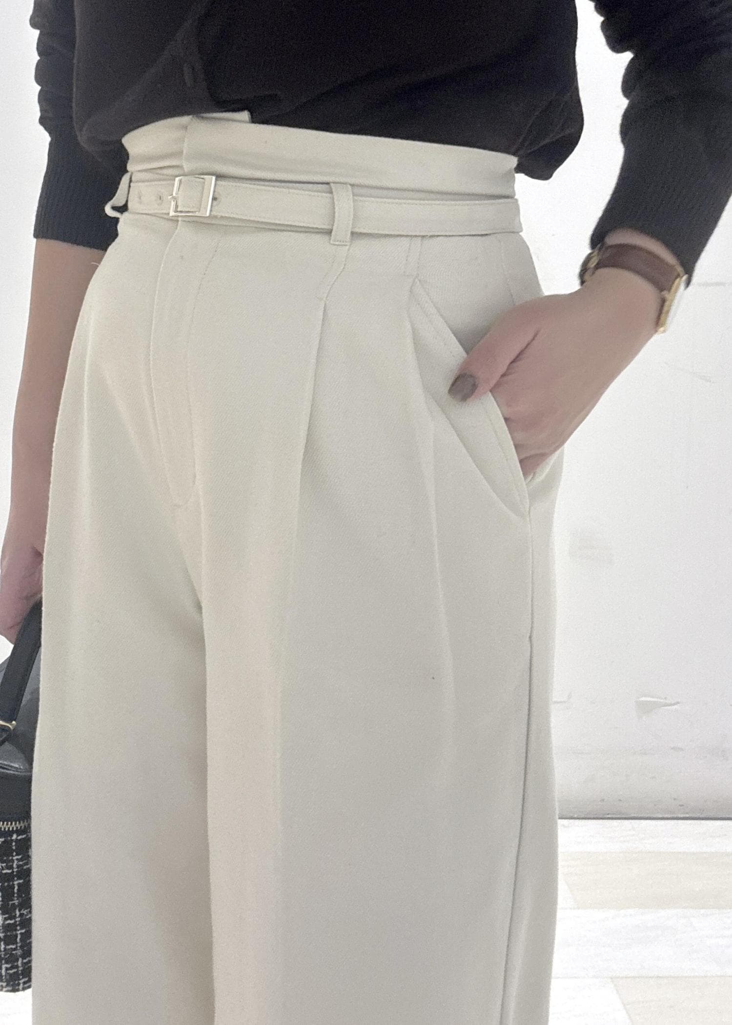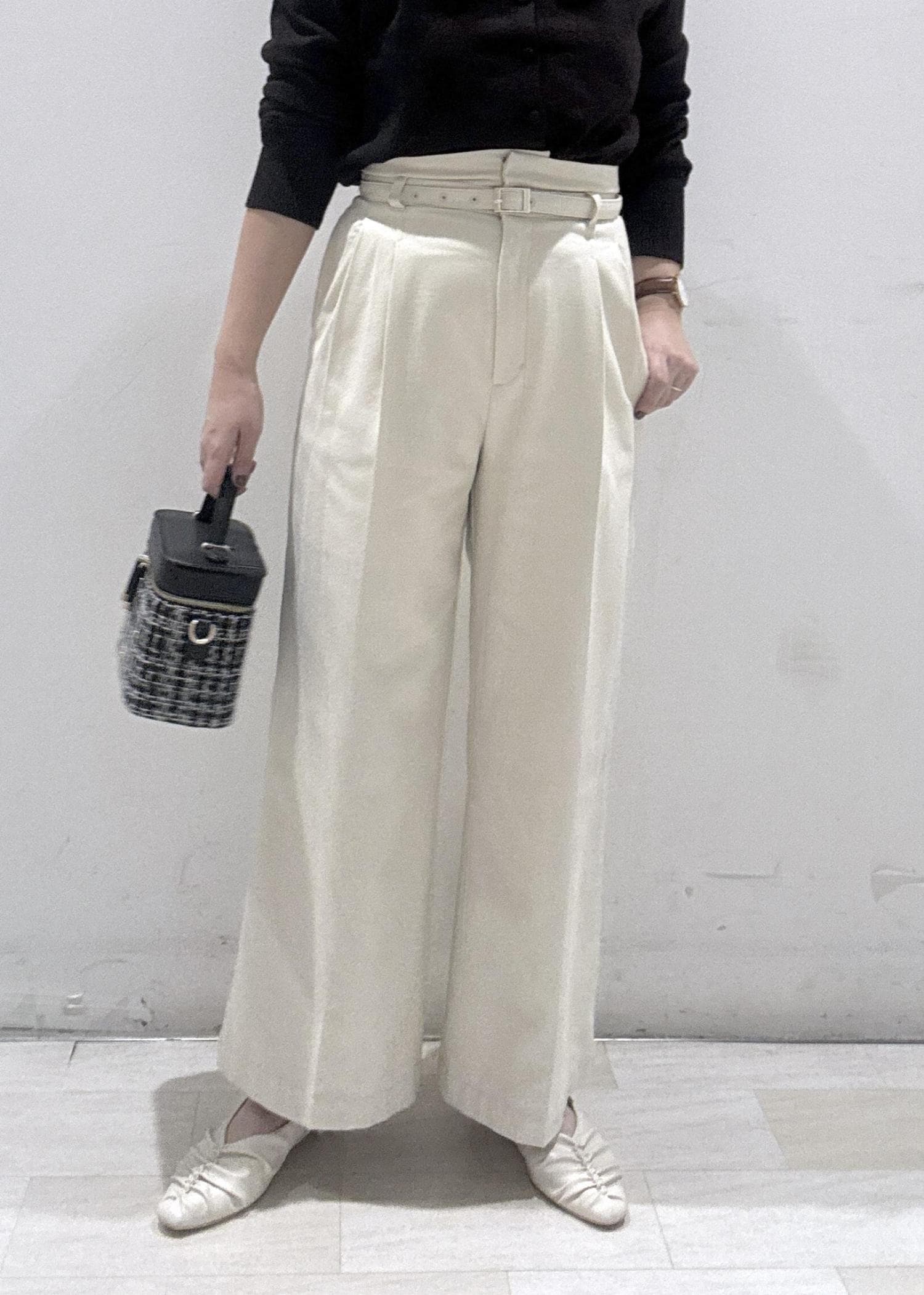VIS起毛ウールライク版ベルトディテールタックワイドパンツキナリ / S¥6,589レビュー2タック入りですがイハイウエストでベルト付きなので、ダボっとする感じはないワイドパンツです。