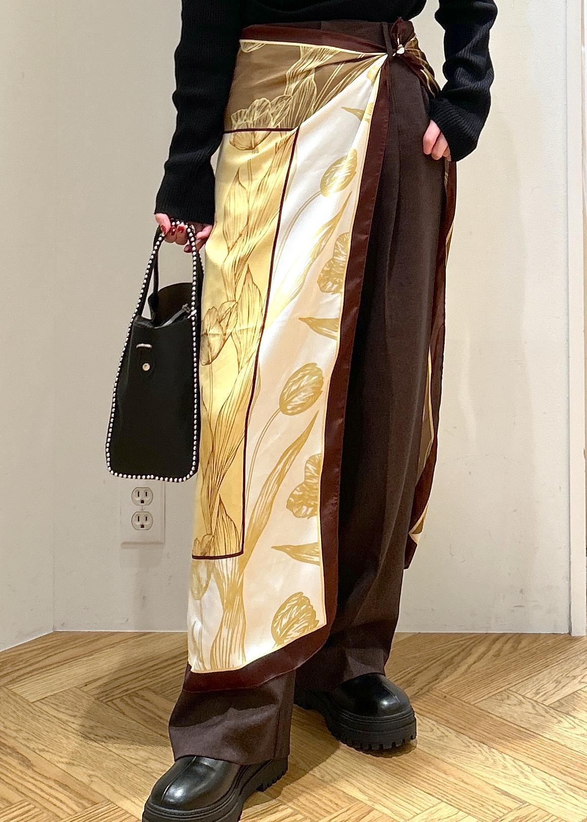 VISチューリップ柄スカーフ90×90cmブラウン系 / F¥1,751レビュー90×90の大判スカーフなので、腰に巻けちゃいます!