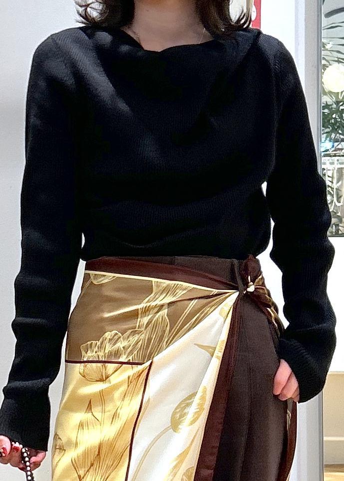 NEW! 予約VIS【美得】もちもちドレープリブニットトップス/イージーケアブラック / F¥4,389レビュー着るだけで自然とドレープが出てくれておしゃれ見え!