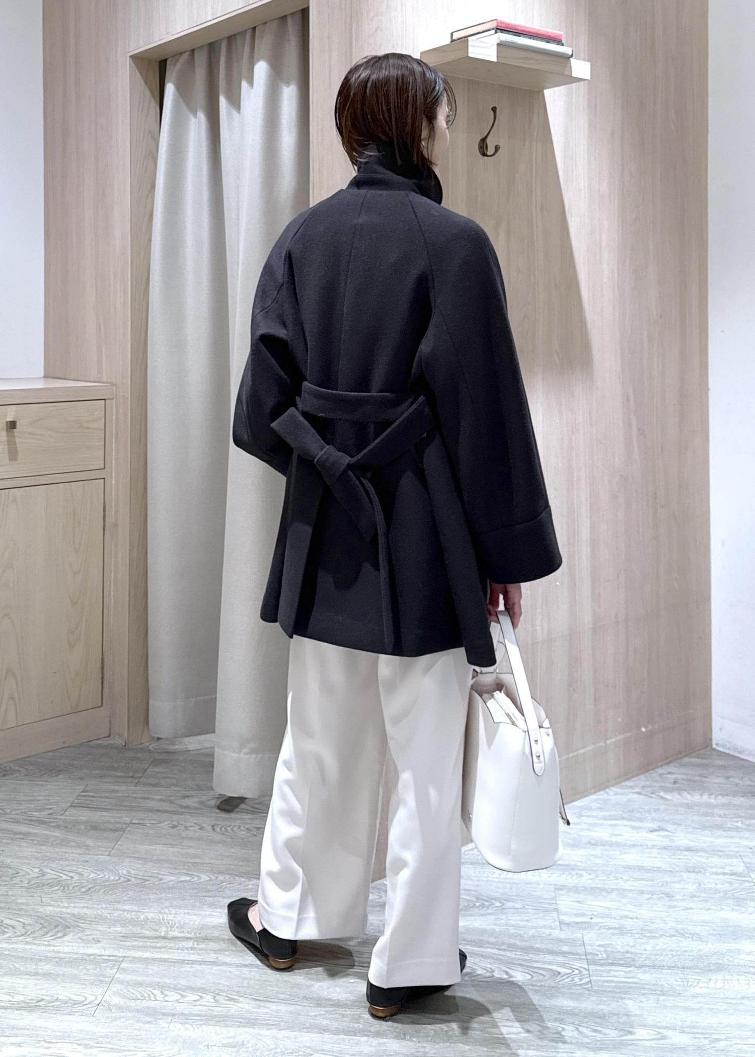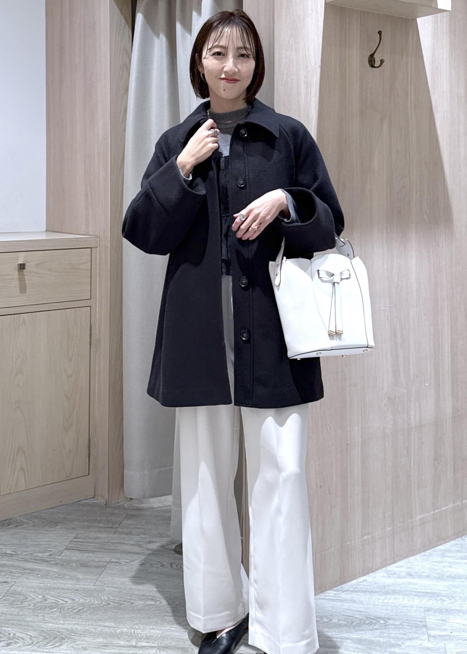 シックに大人っぽくスタイリングしたかったので、敢えてミドルコートの襟元を立てて着てみました♪