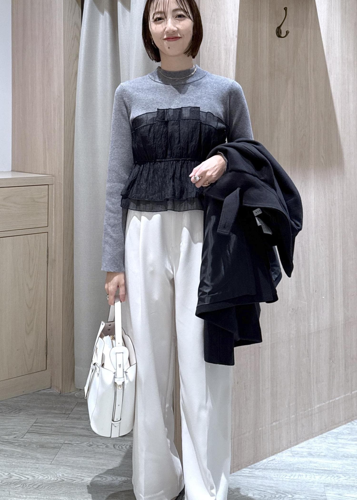 お仕事にもピッタリなビスチェドッキングニットスタイルです!