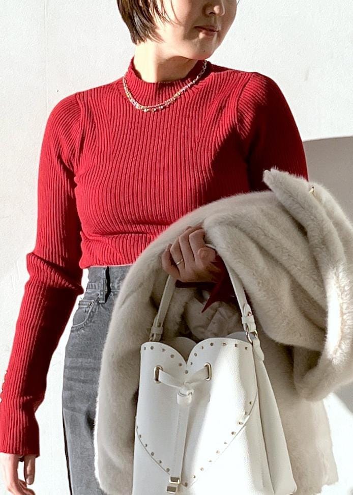 NEW!VIS【美得】スリーブ釦アクセントリブニット/WEB限定FSサイズ・静電気防止レッド / F¥4,389レビューウールが入っておらずチクチクしません!滑らかな肌触りでアウターのインナーとして、またゆとりのあるトレーナー、スウェット、ニットとさかねて着用もおすすめです!