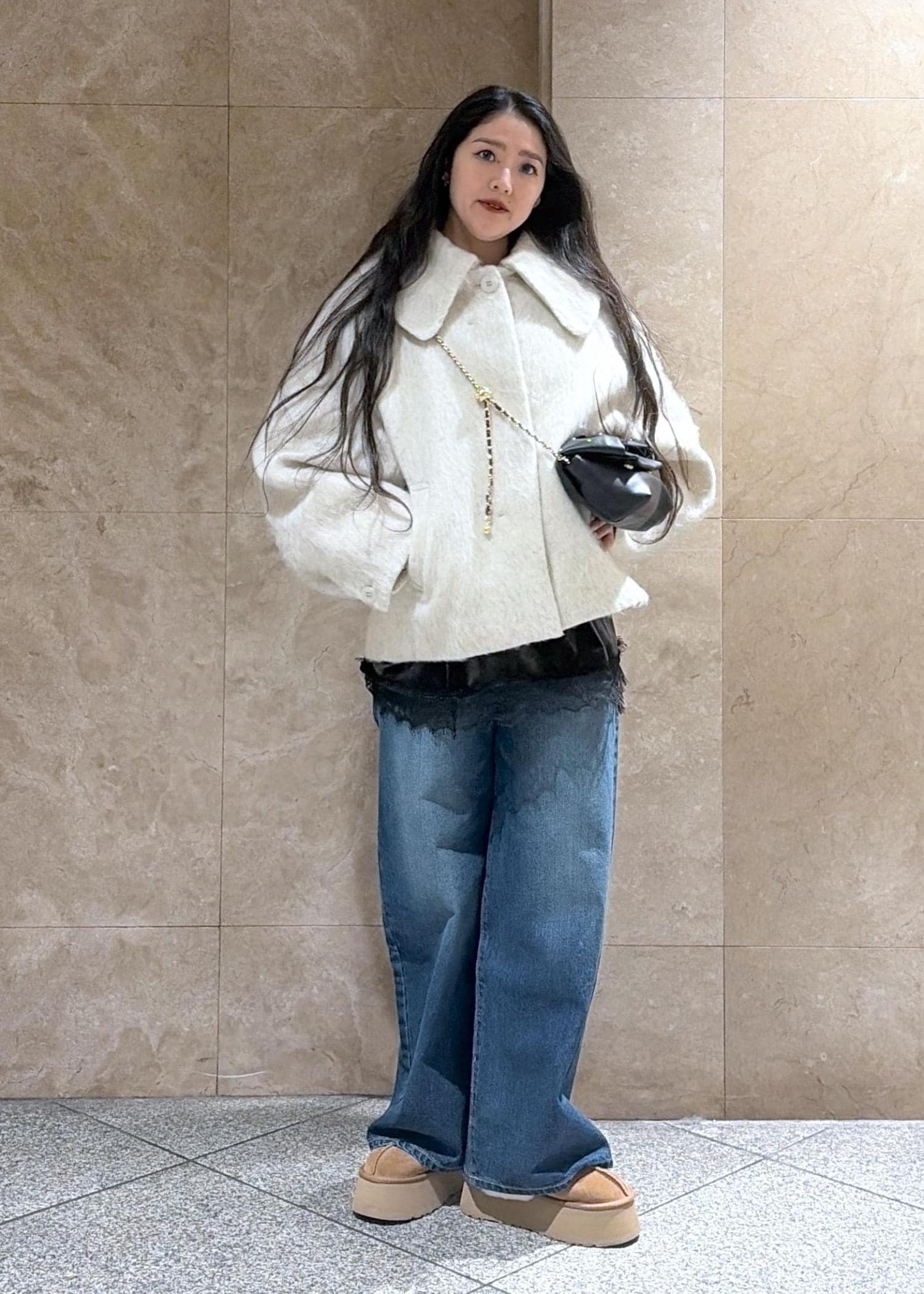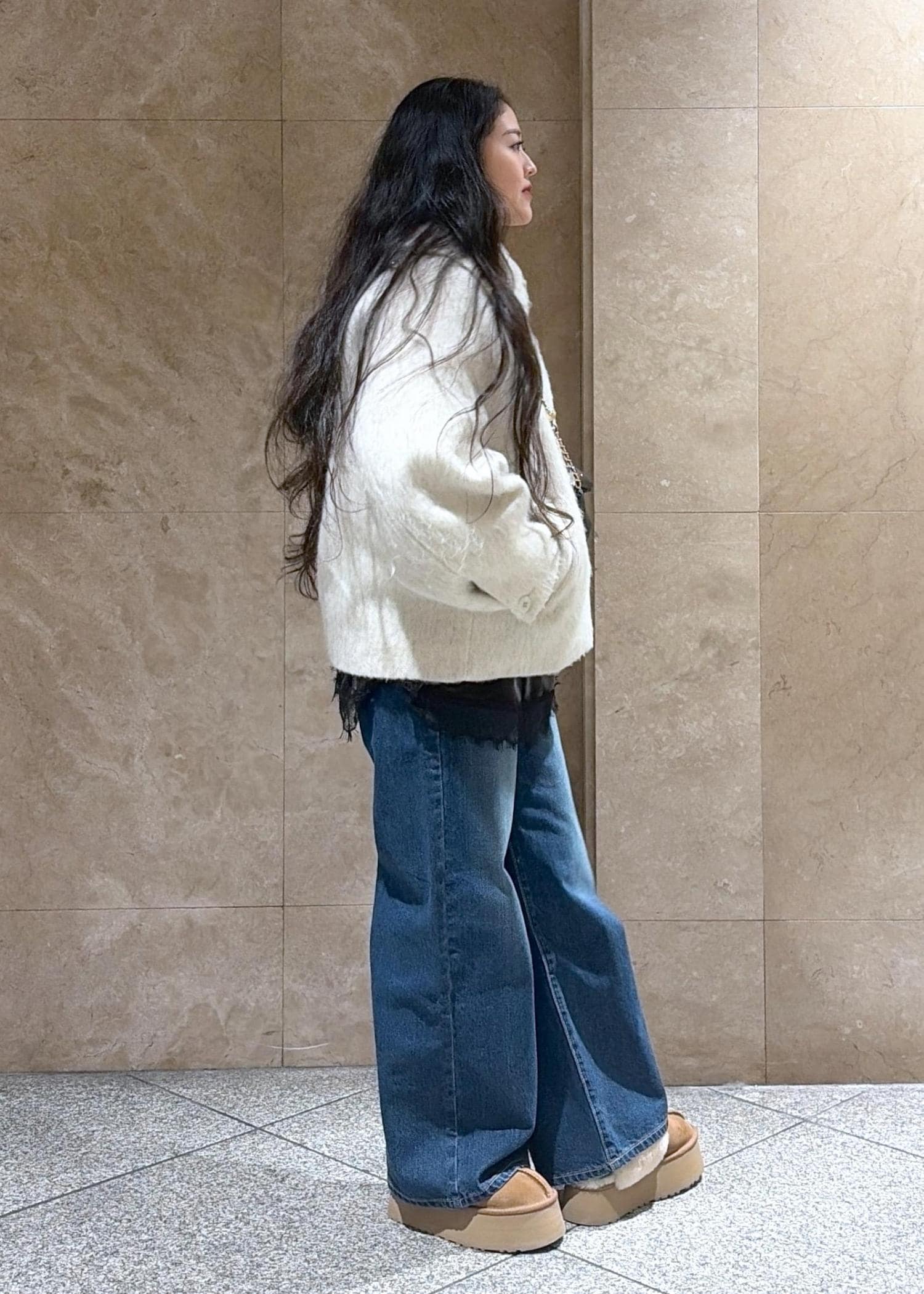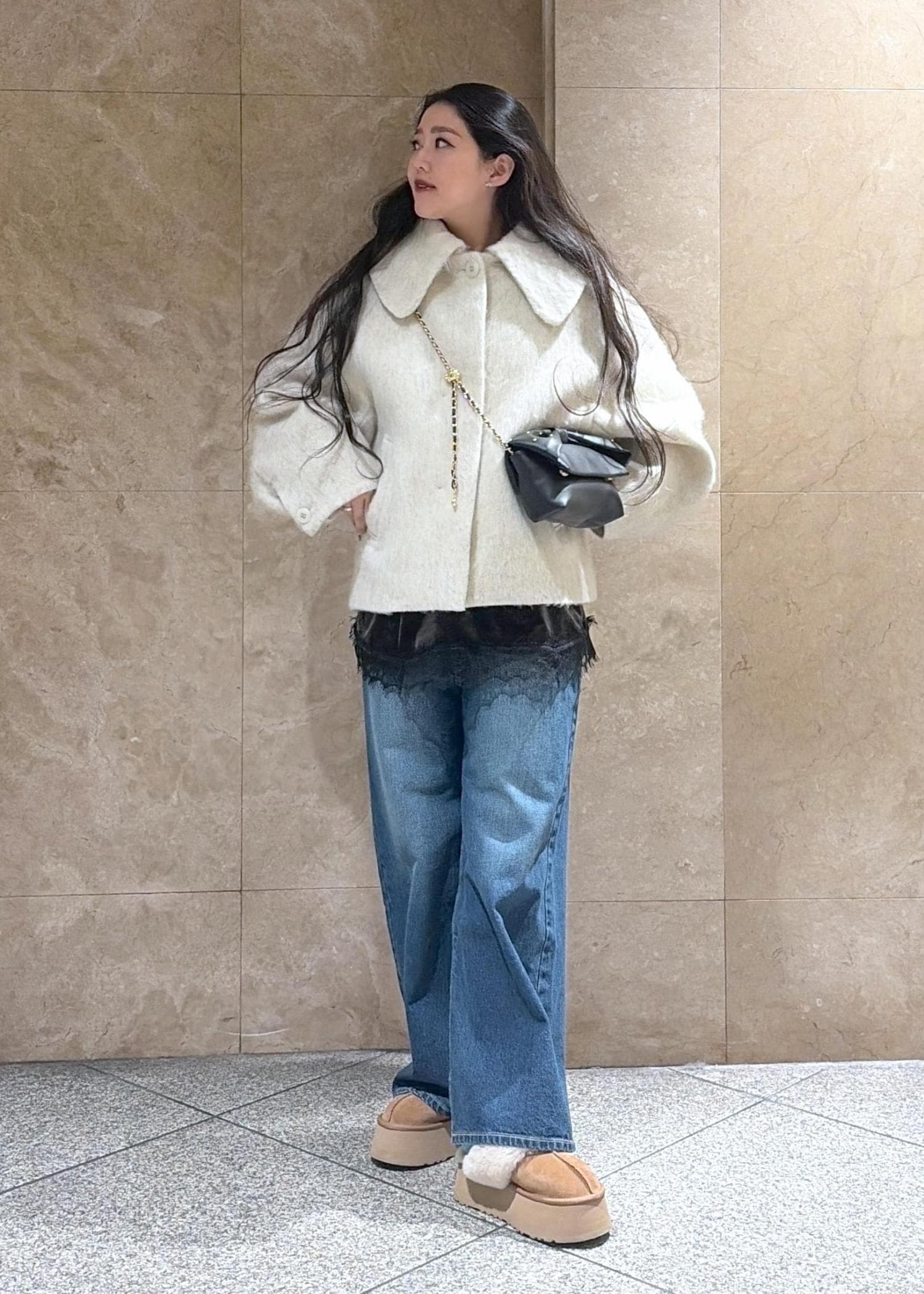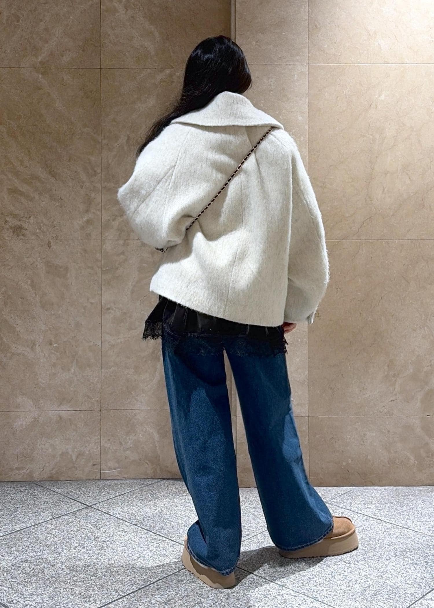 VIS【アウター総選挙1位】ビッグカラーモモンガシャギーショートコートオフホワイト / S¥10,989レビュー後ろから見た時のほわんとしたスタイルが可愛すぎて、体型カバーもバッチリ◎
