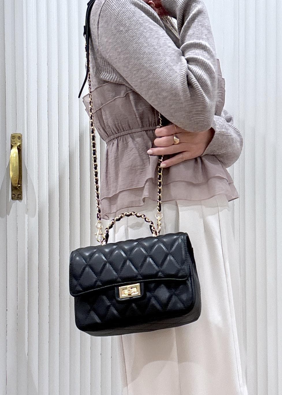 VISチェーンハンドルキルティングショルダーバッグ/2WAY・一部WEB限定カラーブラック / F¥6,919レビュー小ぶりですが、長財布も収納可能◎