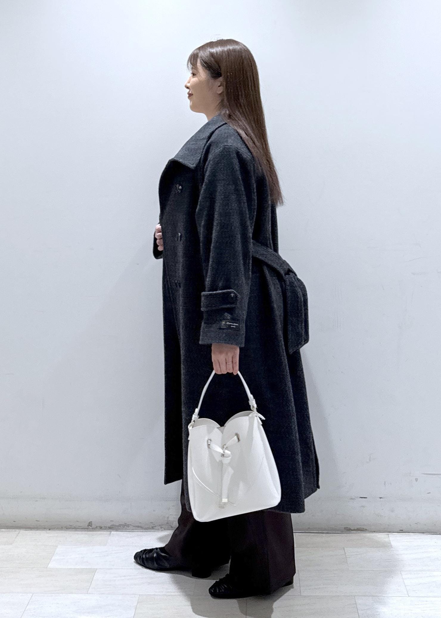 VIS尾州シャギースタンドカラーロングコート/静電気防止・WEB限定PS・TMサイズチャコール / S¥21,890レビュー身長157cm/Sサイズ着用しています。
