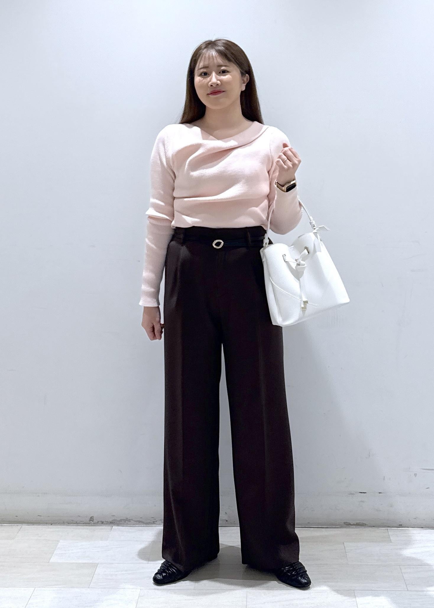 今回はお仕事やオフとの時でも着れるドレープデザインニットのトップスに、ウーリッシュのワイドパンツと合わせて綺麗めなコーディネートにしてみました。