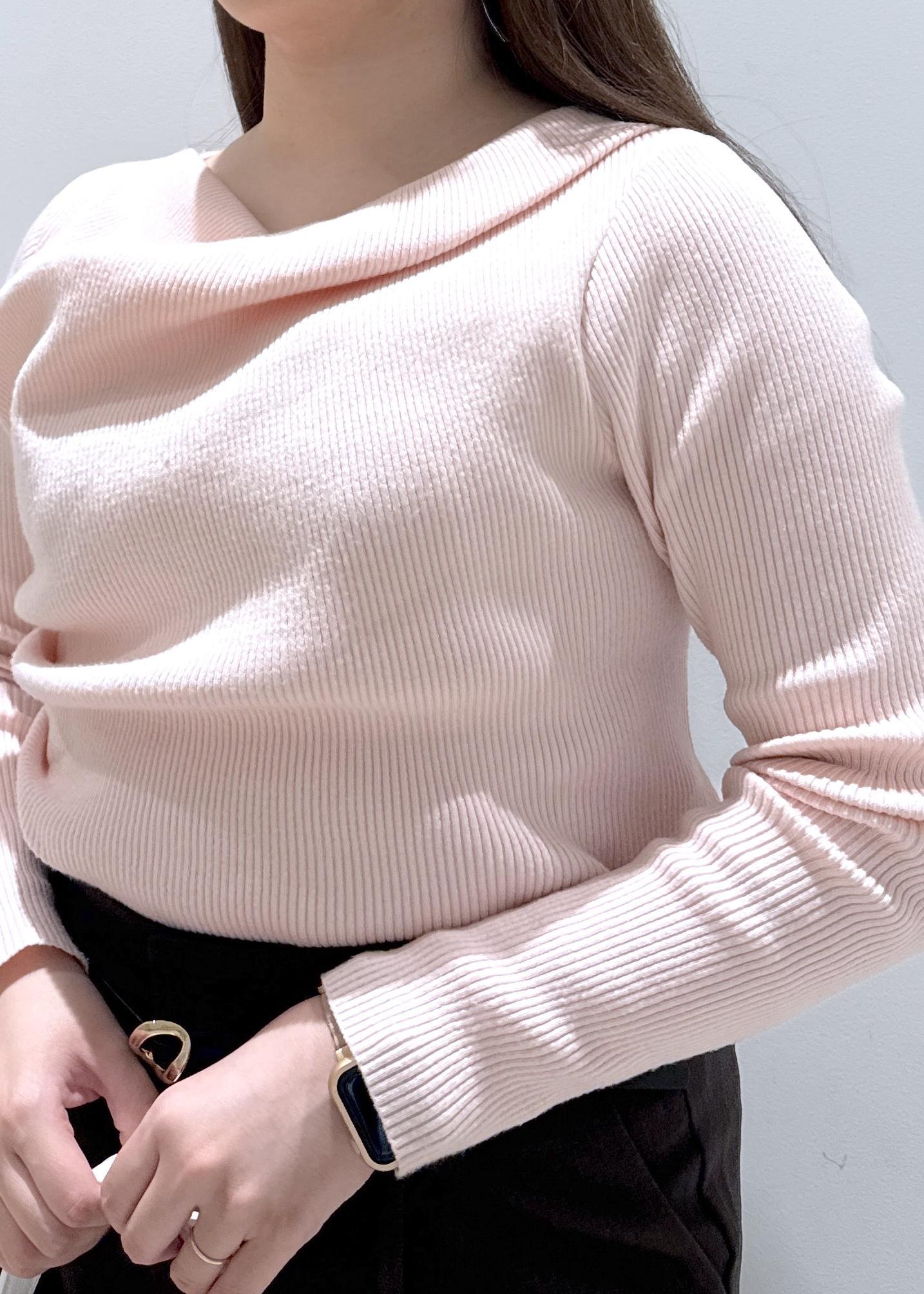 NEW! 予約VIS【美得】もちもちドレープリブニットトップス/イージーケアピンク / F¥4,389レビュードレープデザインのリブニット♪女性らしい首周りがスッキリとして見えるので、骨格ストレートさんにぜひオススメです!お袖の部分もピタっとしすぎず、程よくゆとり感があるのが好きでした。着丈は身長157cmでお腹周りが隠れるぐらいの長さで、インしてもしなくてもどちらでも使えます。ピンクとオフホワイトが可愛すぎて思わずリアルバイしてしました♡