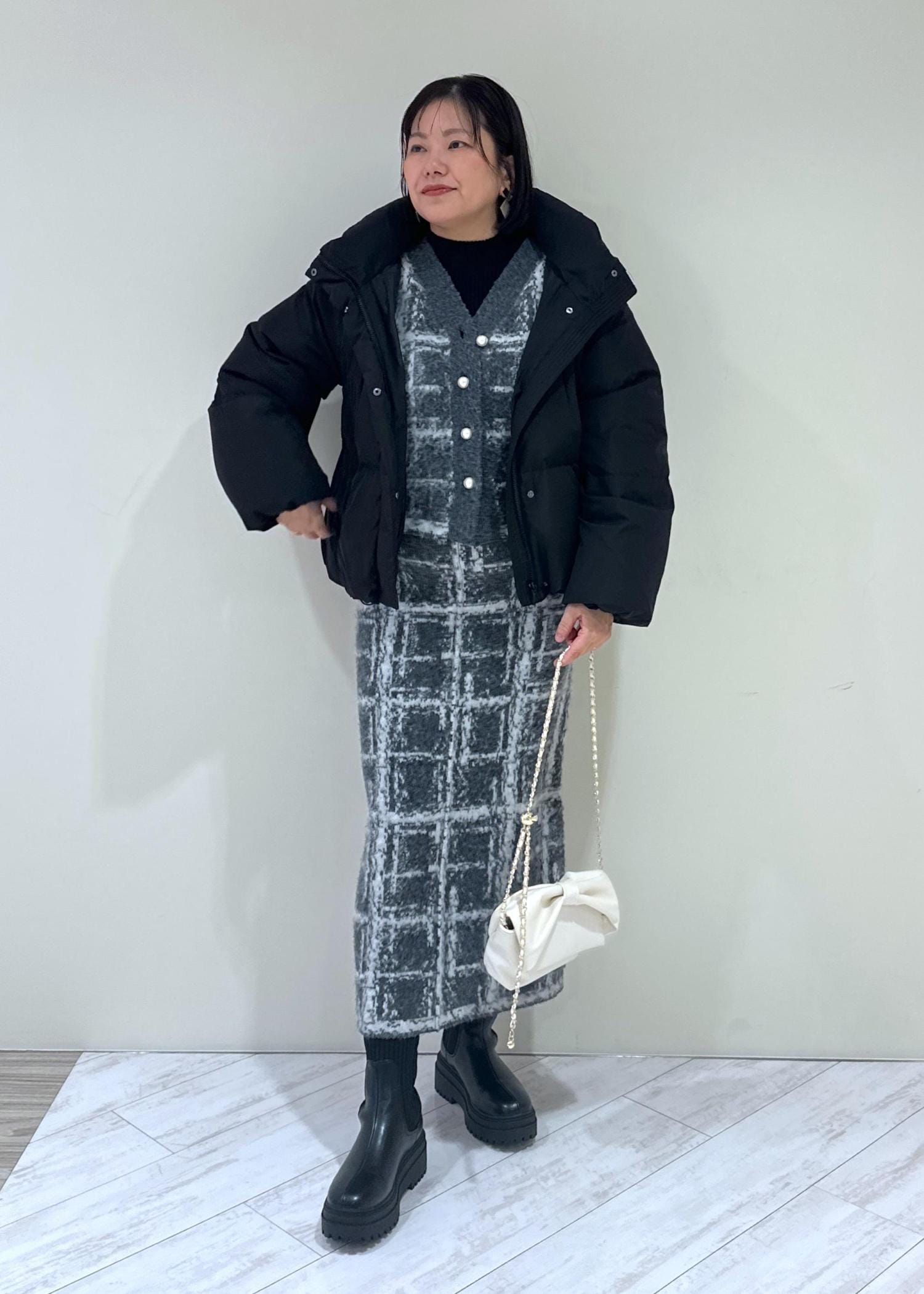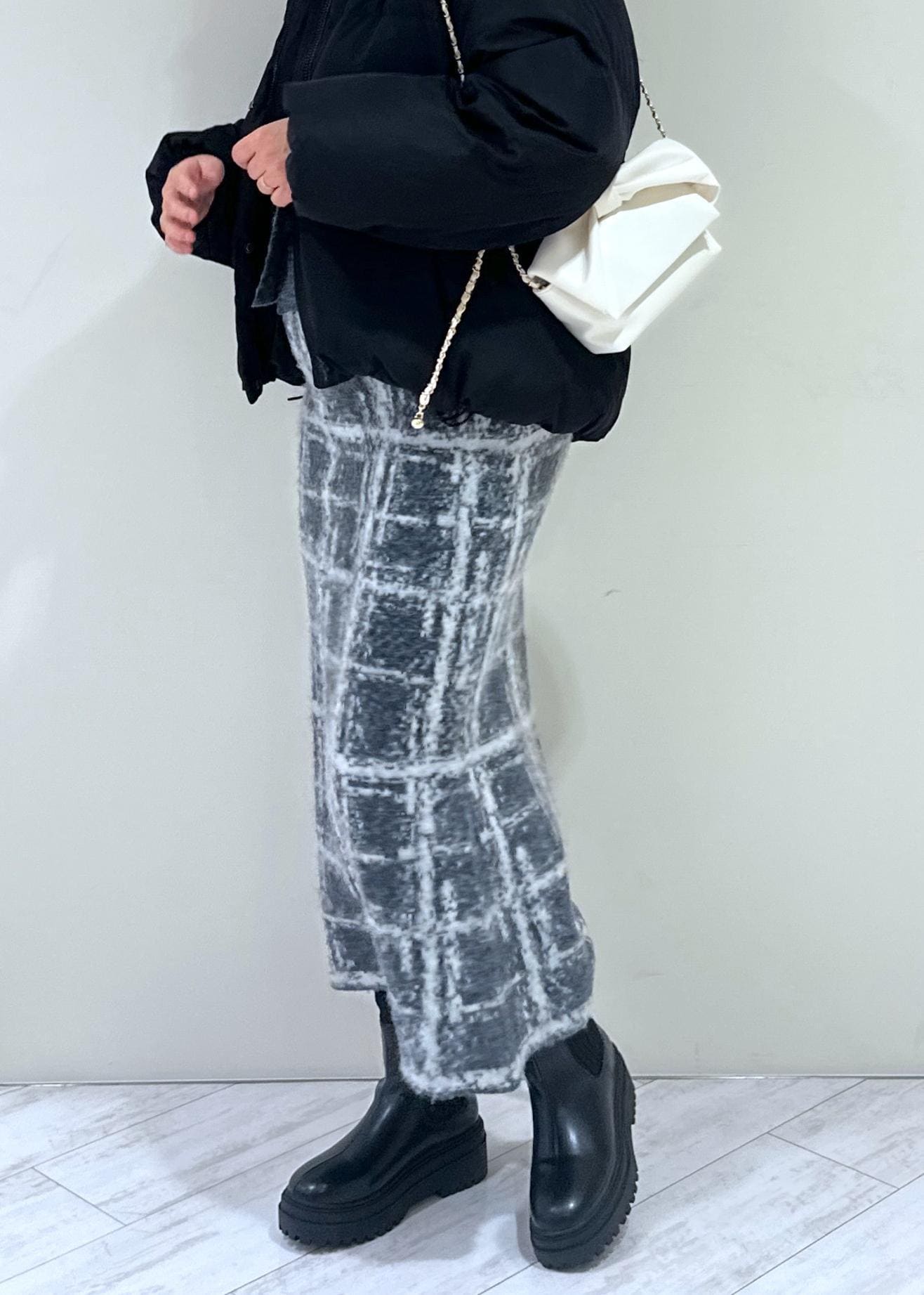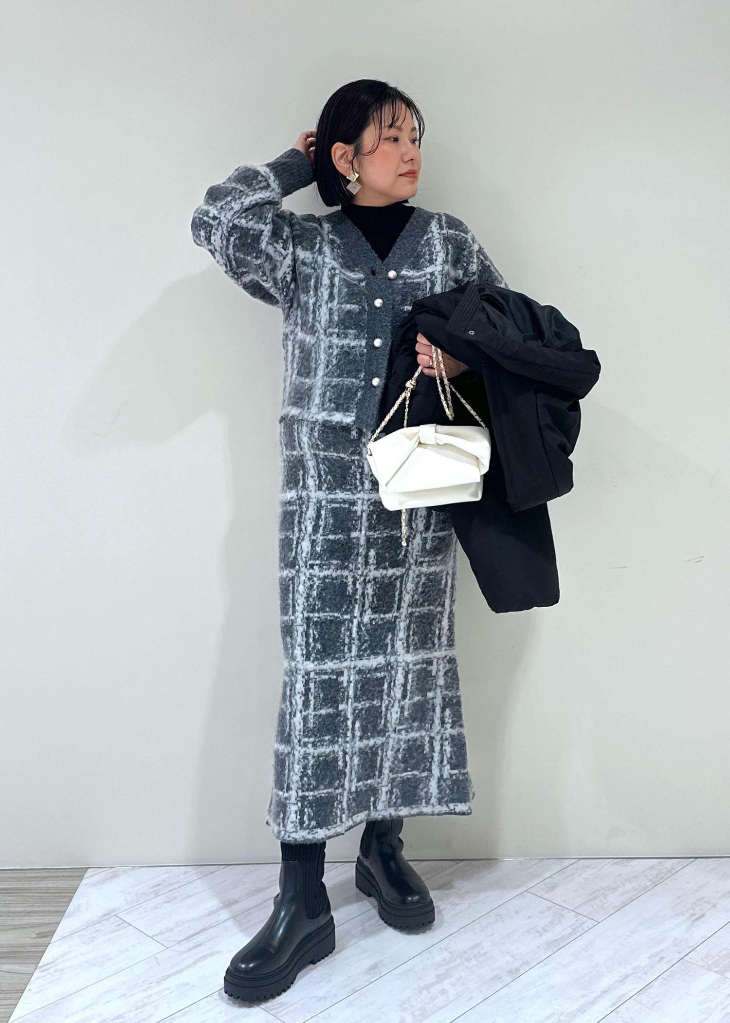 VISチェックアソートシャギーニットスカート/セットアップ対応グレー / F¥6,589レビュー軽くて暖かいのでアウターは軽いものでも大丈夫です!