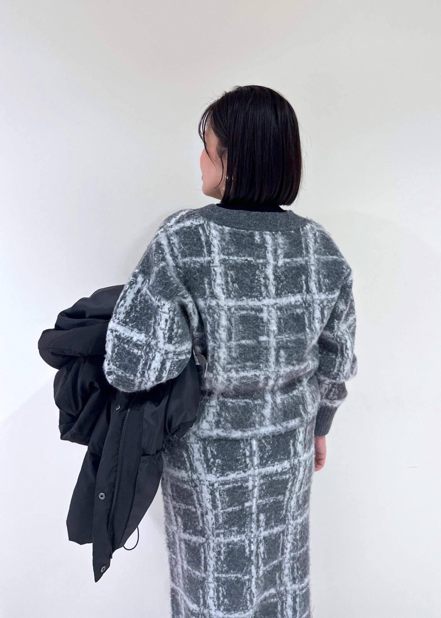 VISチェックアソートシャギーニットカーディガン/セットアップ対応グレー / F¥6,589レビュー軽くて暖かいのでアウターは軽いものでも大丈夫です!