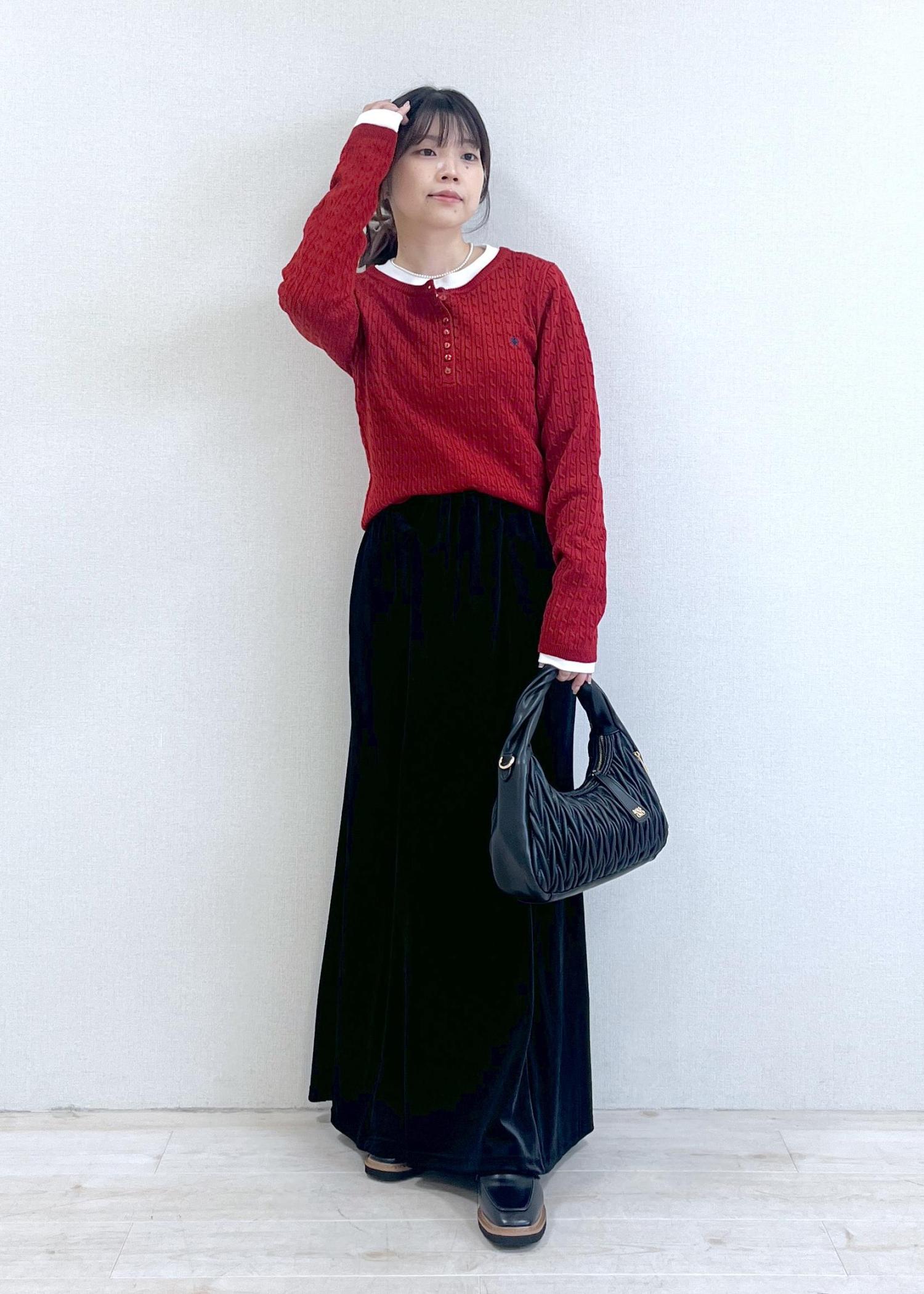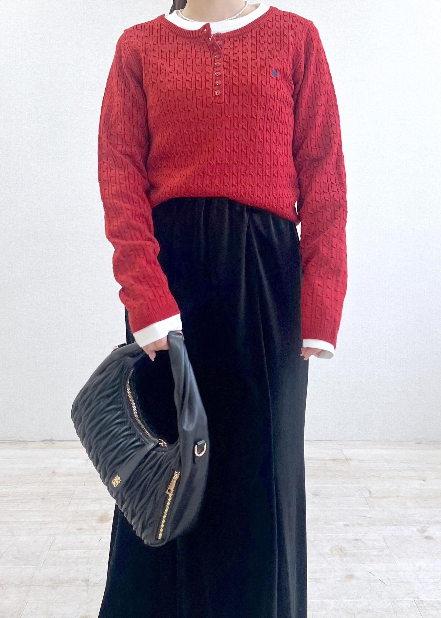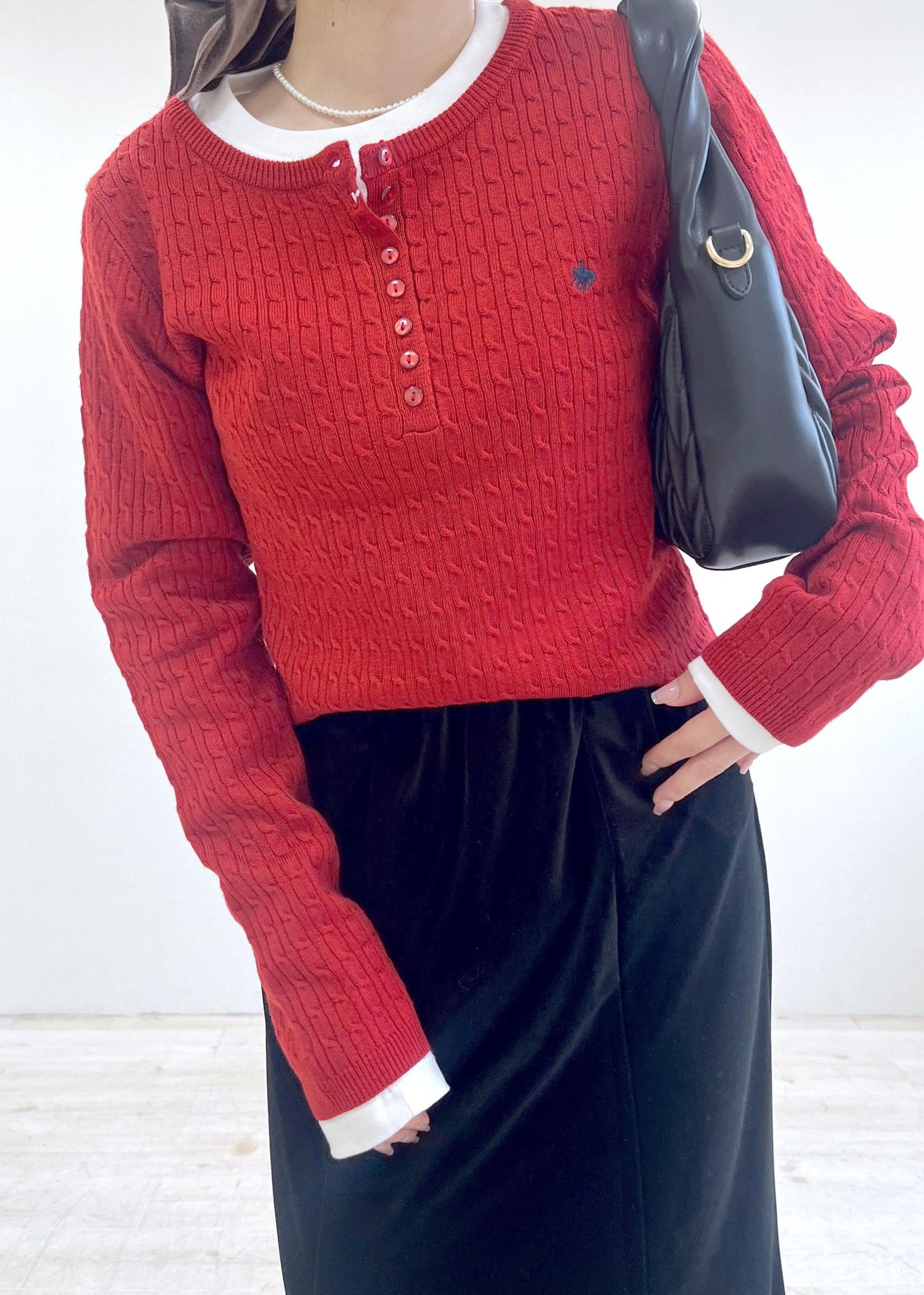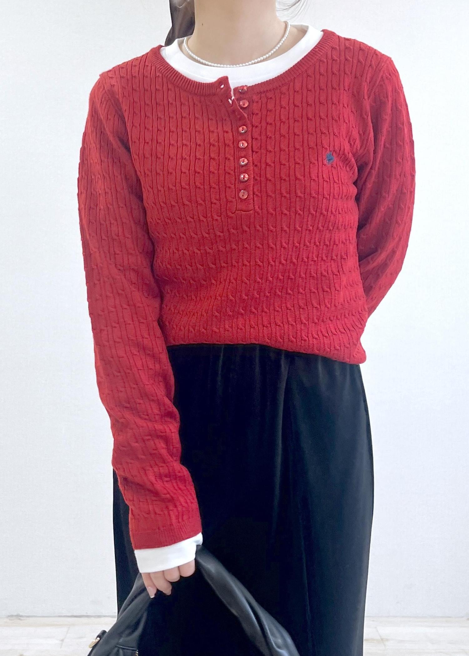 VIS【POLO BCS】VIS別注ヘンリーネックミニケーブルニットトップスレッド系 / F¥6,600レビュー体のラインはひろいすぎないので安心です。