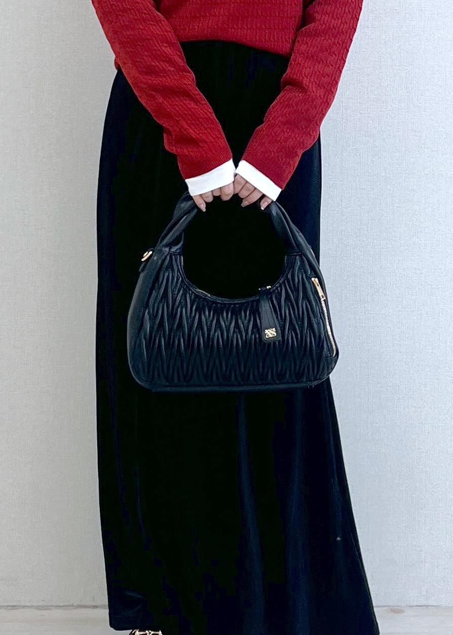 VIS【2WAY】ねじりハンドルキルティングバッグブラック / F¥6,327レビュー中身には三つ折り財布、スマホ、350mlペットボトルが入るくらいのサイズです。