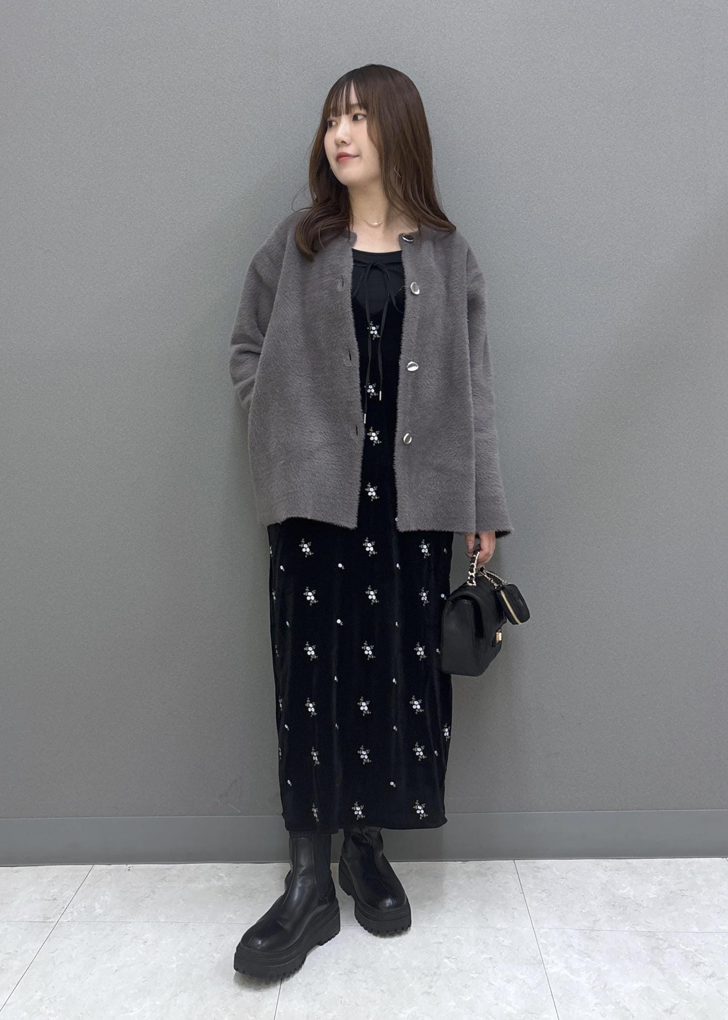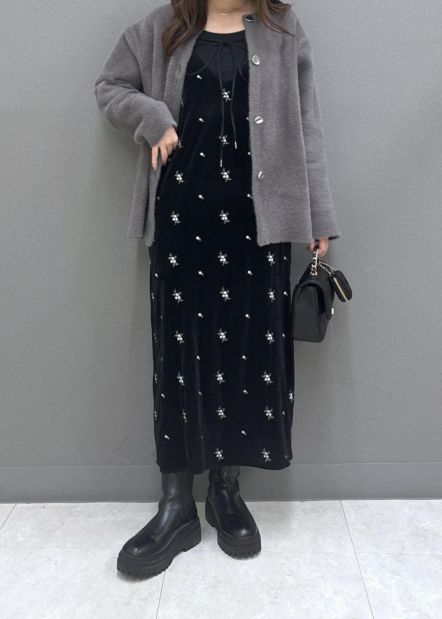 VIS刺繍アソートベロアキャミワンピース/2WAYブラック系 / F¥8,899レビュー前後2WAYで使えるベロアキャミワンピース♩肩紐部分は長さ調整可能なので、低身長さんにもおすすめ!やや光沢感のあるベロア素材で、高見えすること間違いなし◎伸縮性もあるので、動きやすかったです!