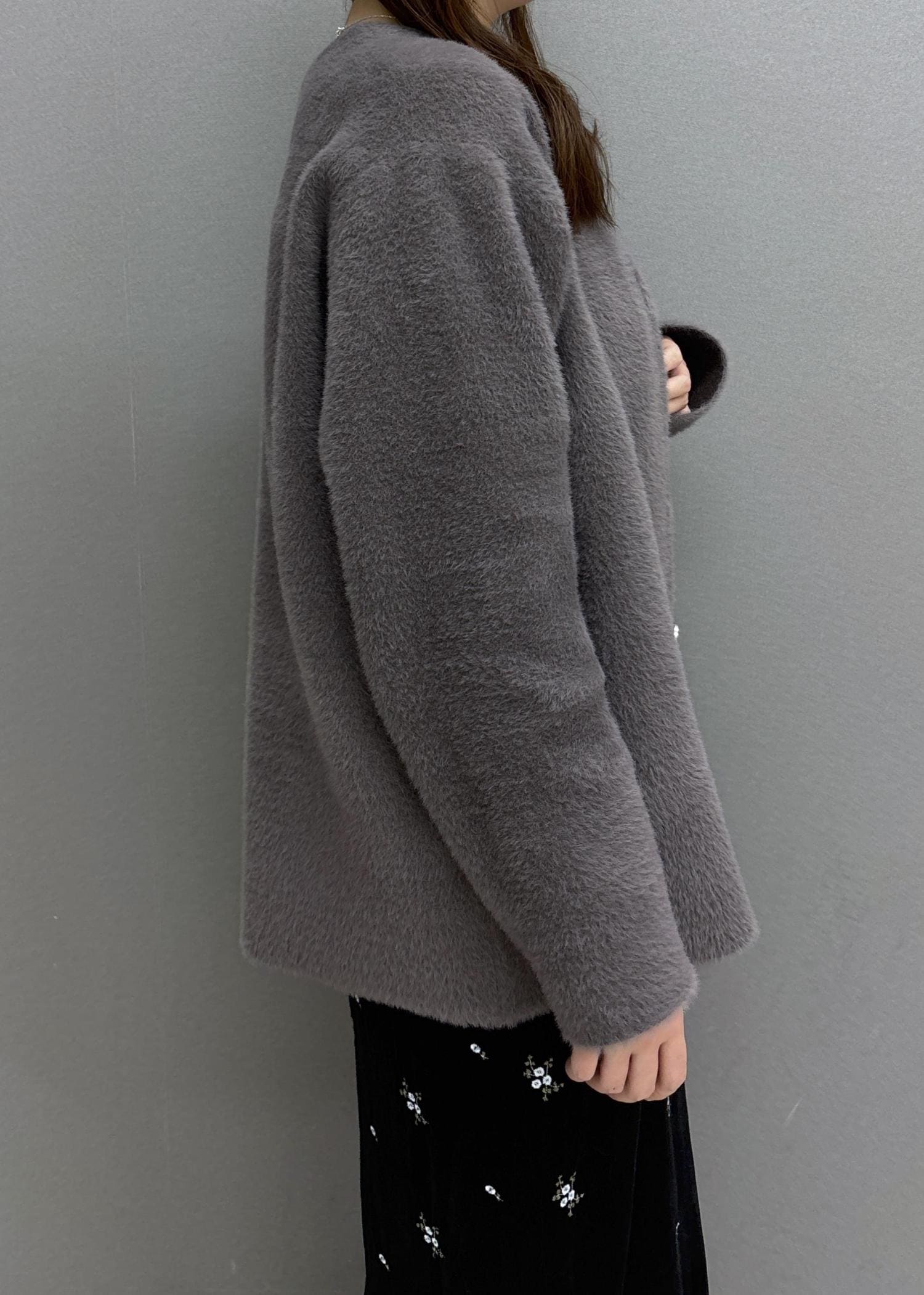VIS接結メタルボタンミニフェザーニットコートブラウン / F¥7,999レビュー160㎝だとヒップまでしっかり隠れる長さで安心感◎厚みがある生地でコート感覚でも使えるカーディガンです!チクチク感は全くなく、着心地も良いのでリアルバイしました♩ノーカラーでシンプルなデザインなので、ハイネックのトップスやマフラーなども合わせやすいです!